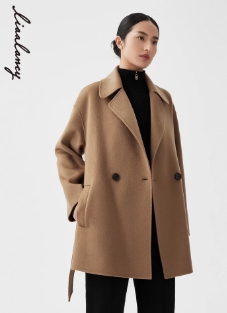 朗姿短款羊毛羊绒毛呢大衣双面呢外套LASH02HHC422A41