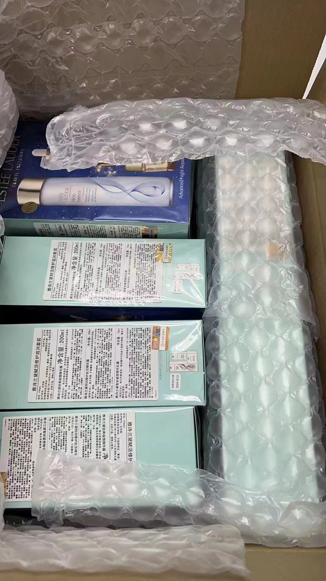 套装内包括一瓶原生液的150ml,一瓶小棕瓶精华50ml,一瓶智妍精华面霜soft版本75ml,属于多效抗老套装
