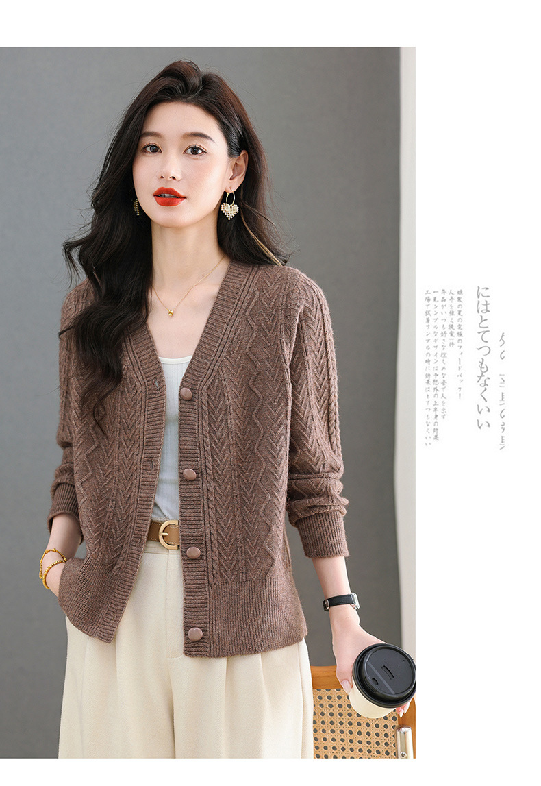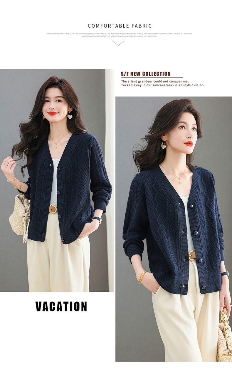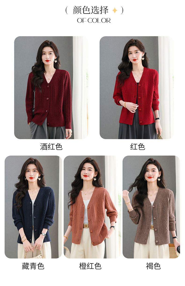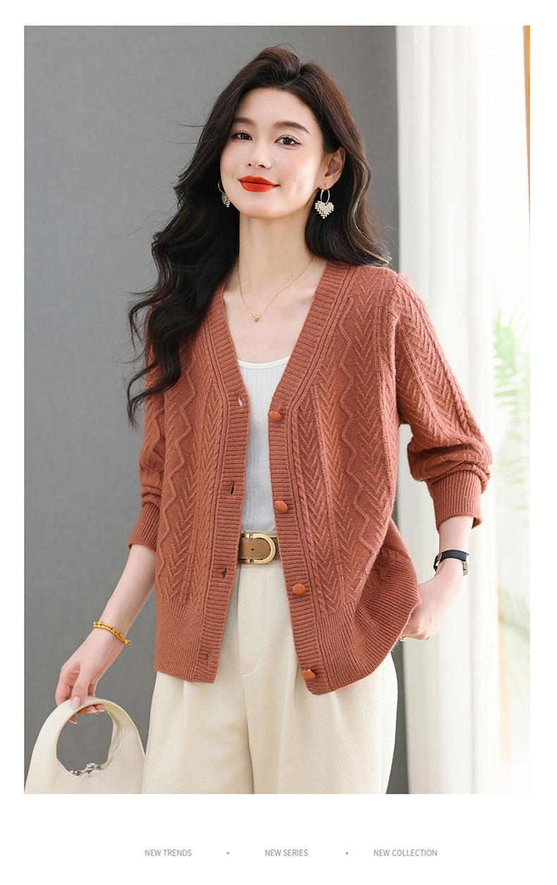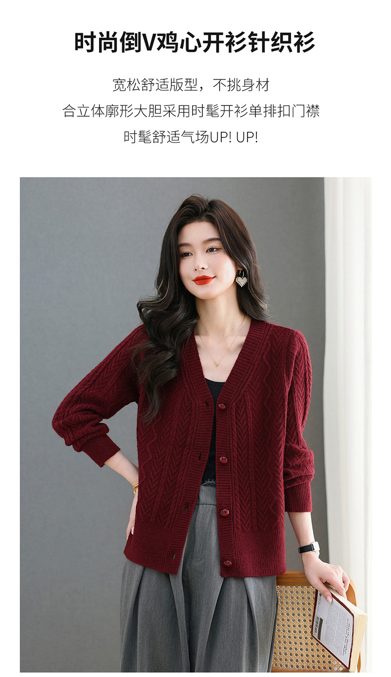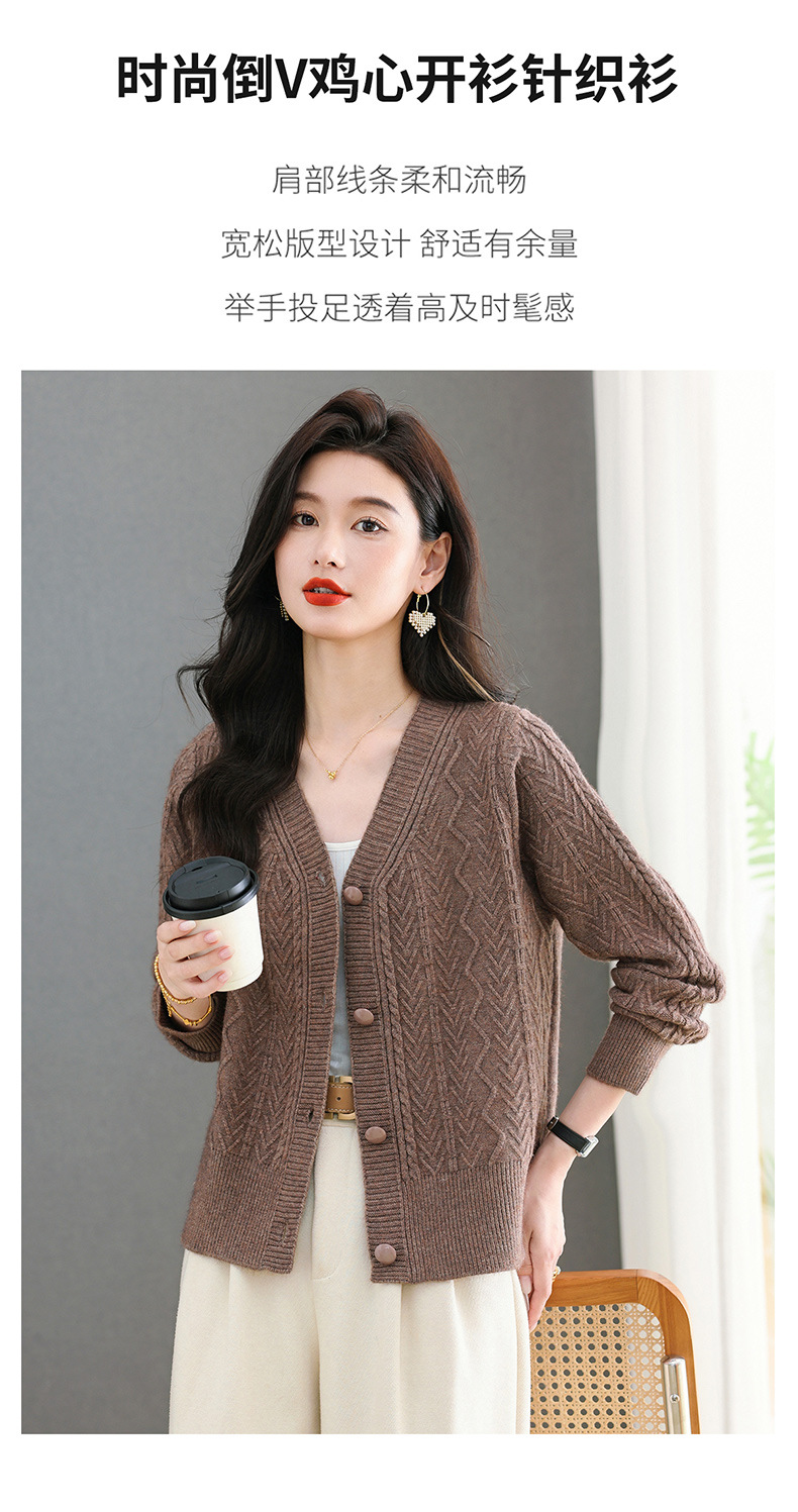 春秋季外套女士2025新款V领小个子宽松显瘦提花针织开衫短款上衣