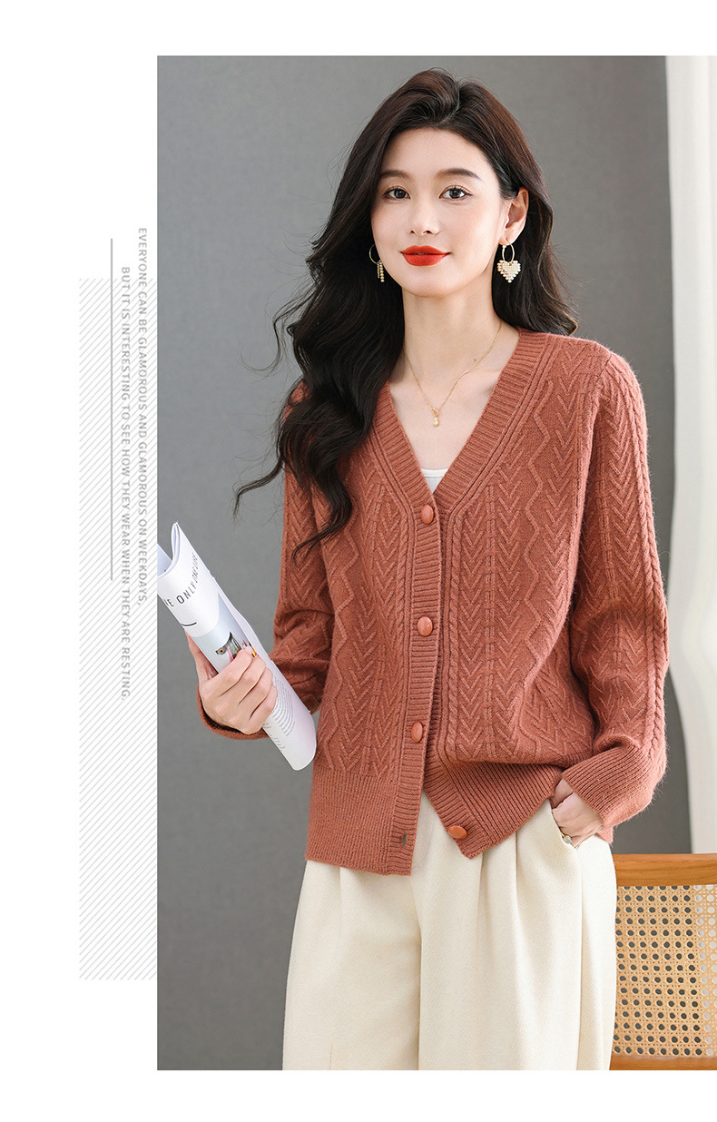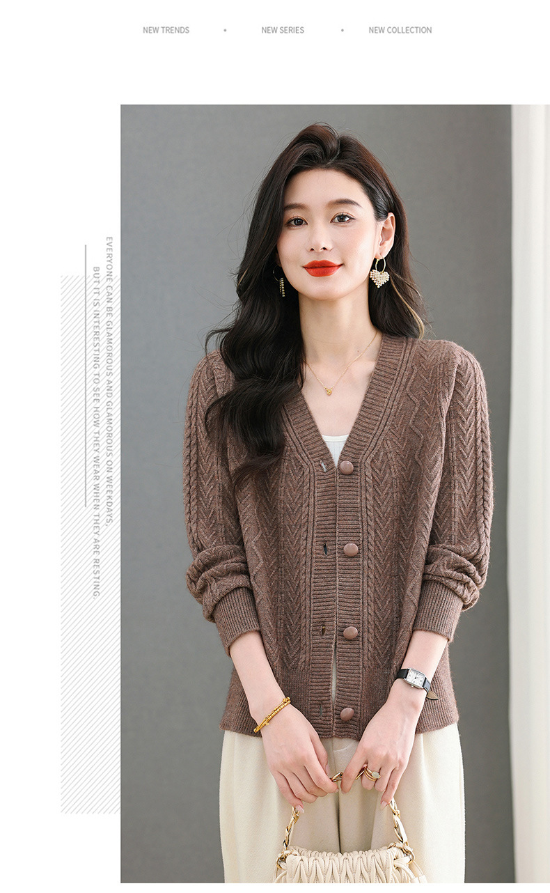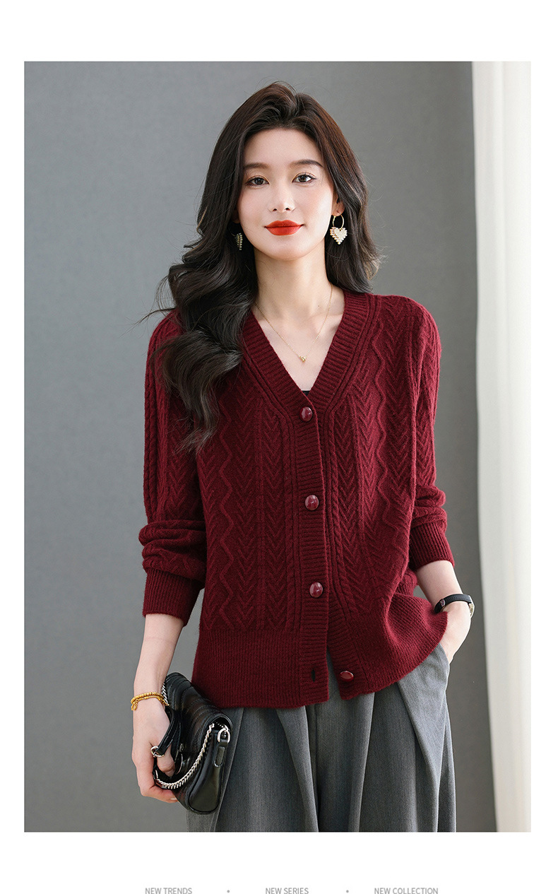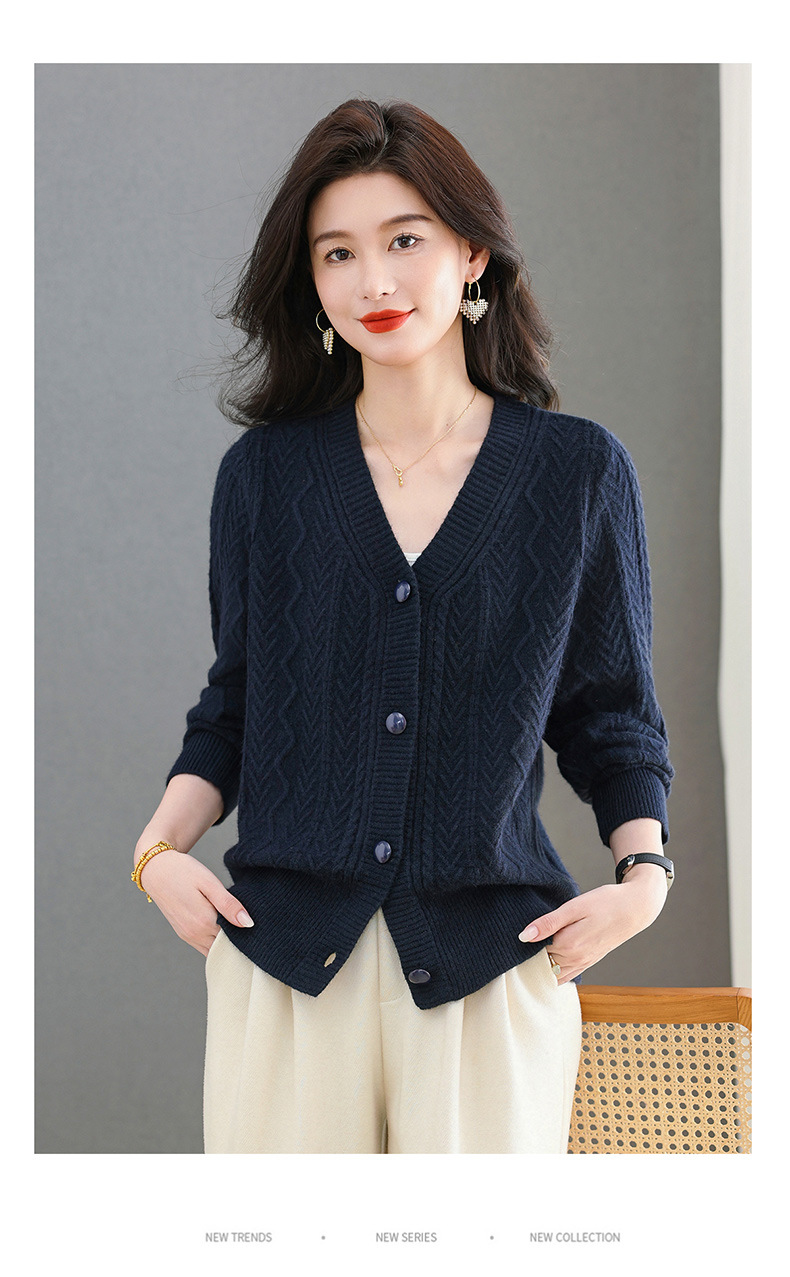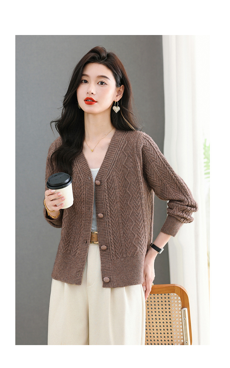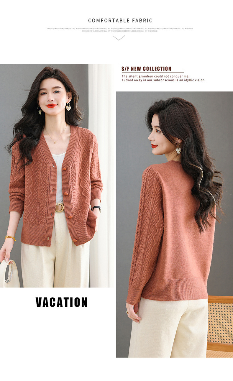 春秋季外套女士2025新款V领小个子宽松显瘦提花针织开衫短款上衣