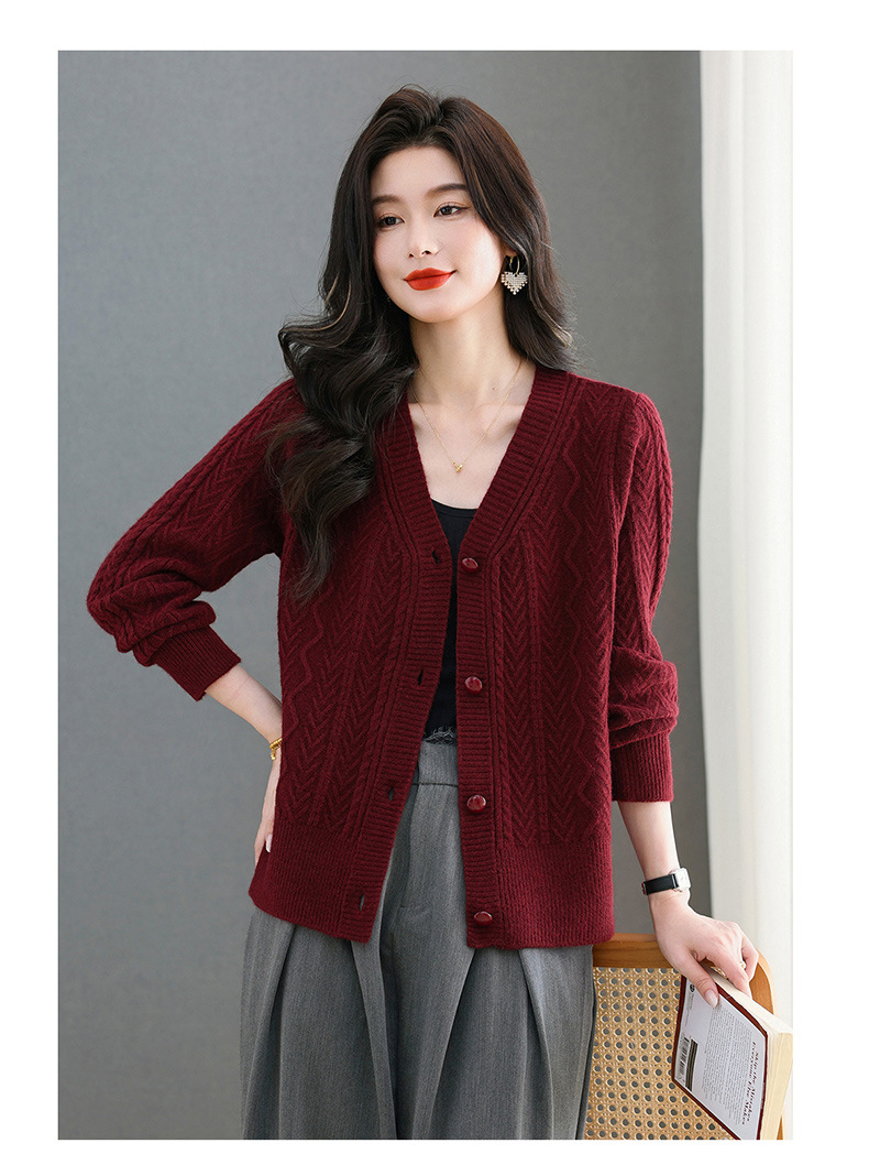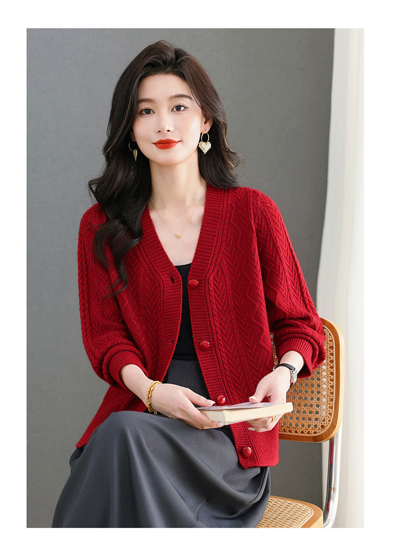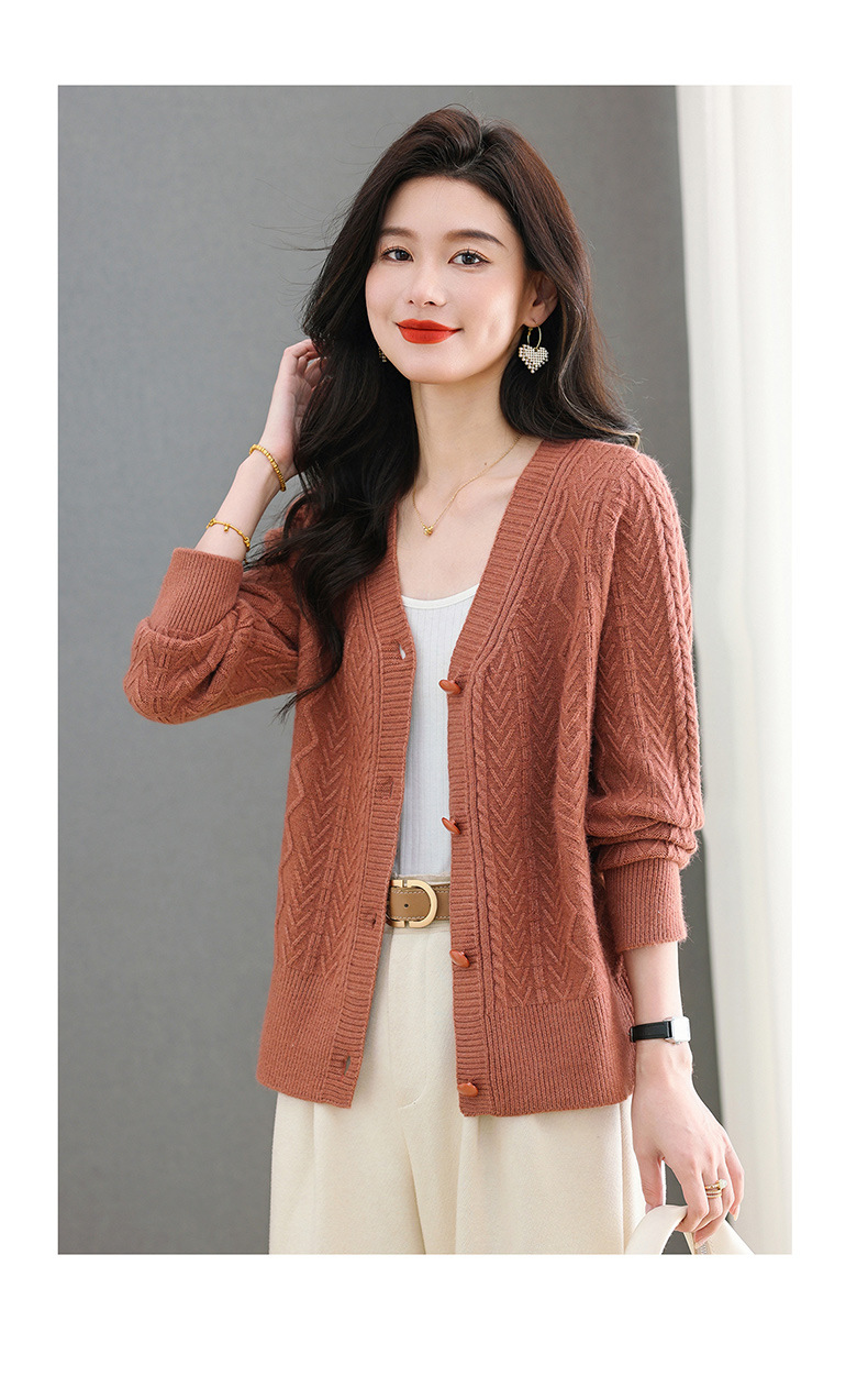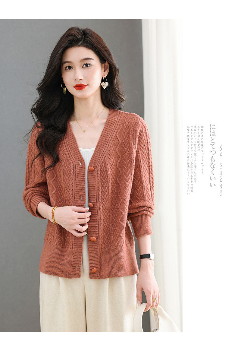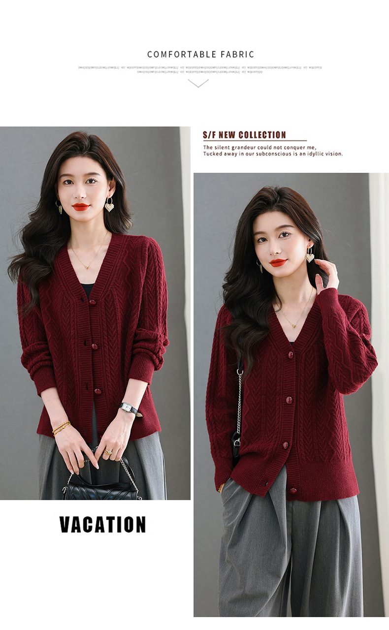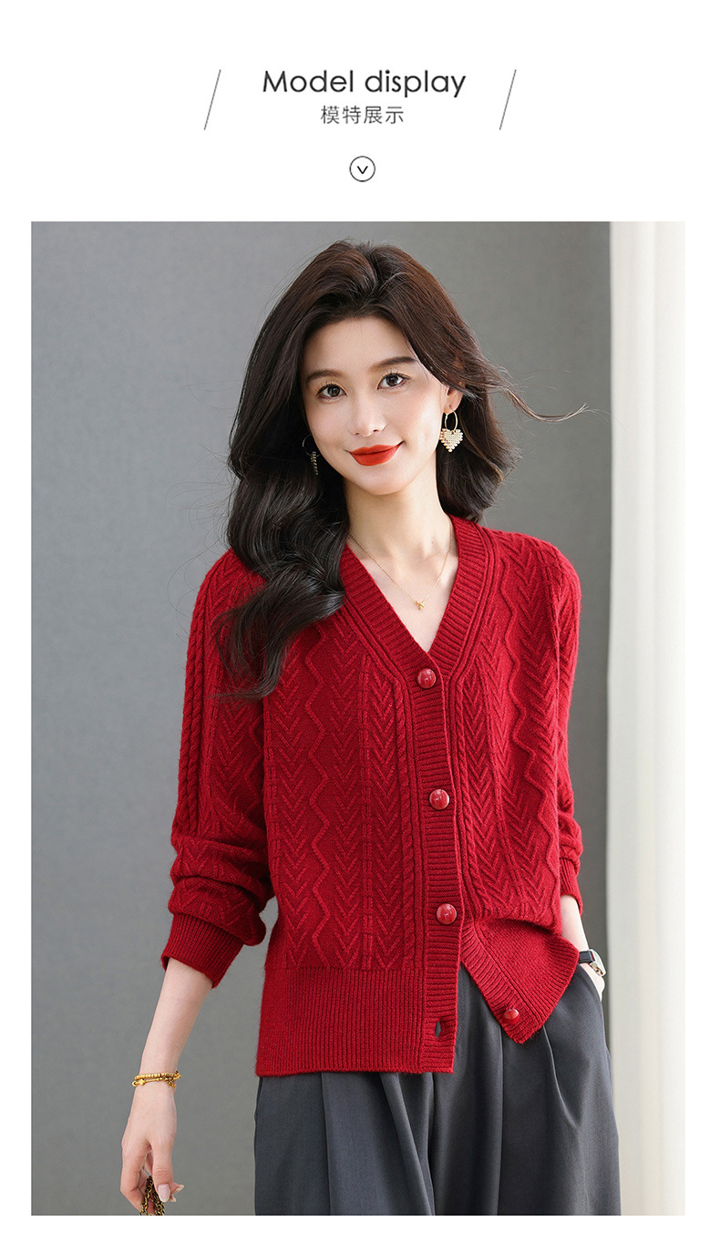 春秋季外套女士2025新款V领小个子宽松显瘦提花针织开衫短款上衣