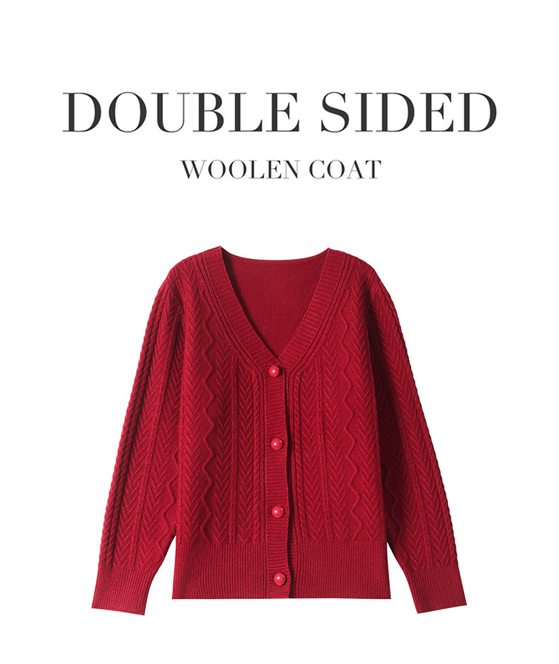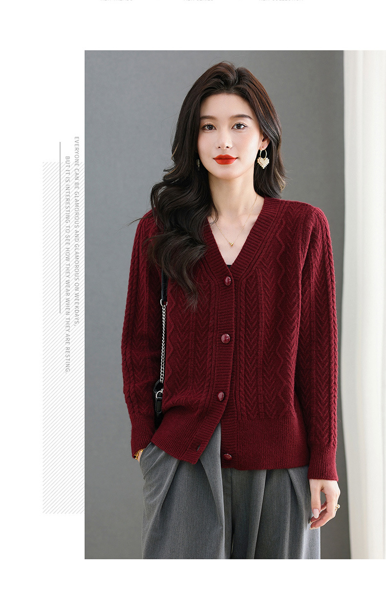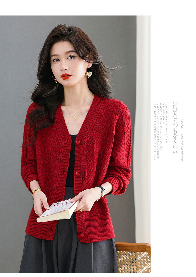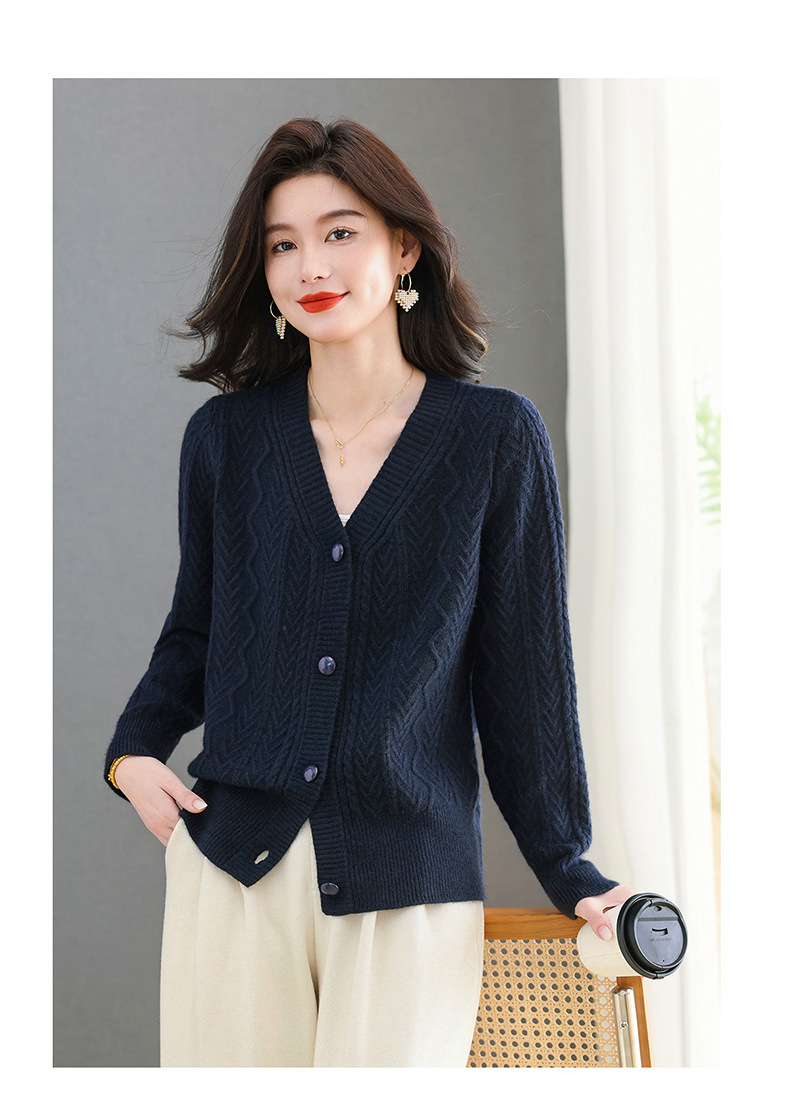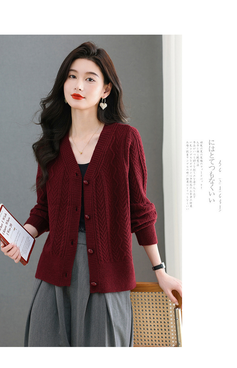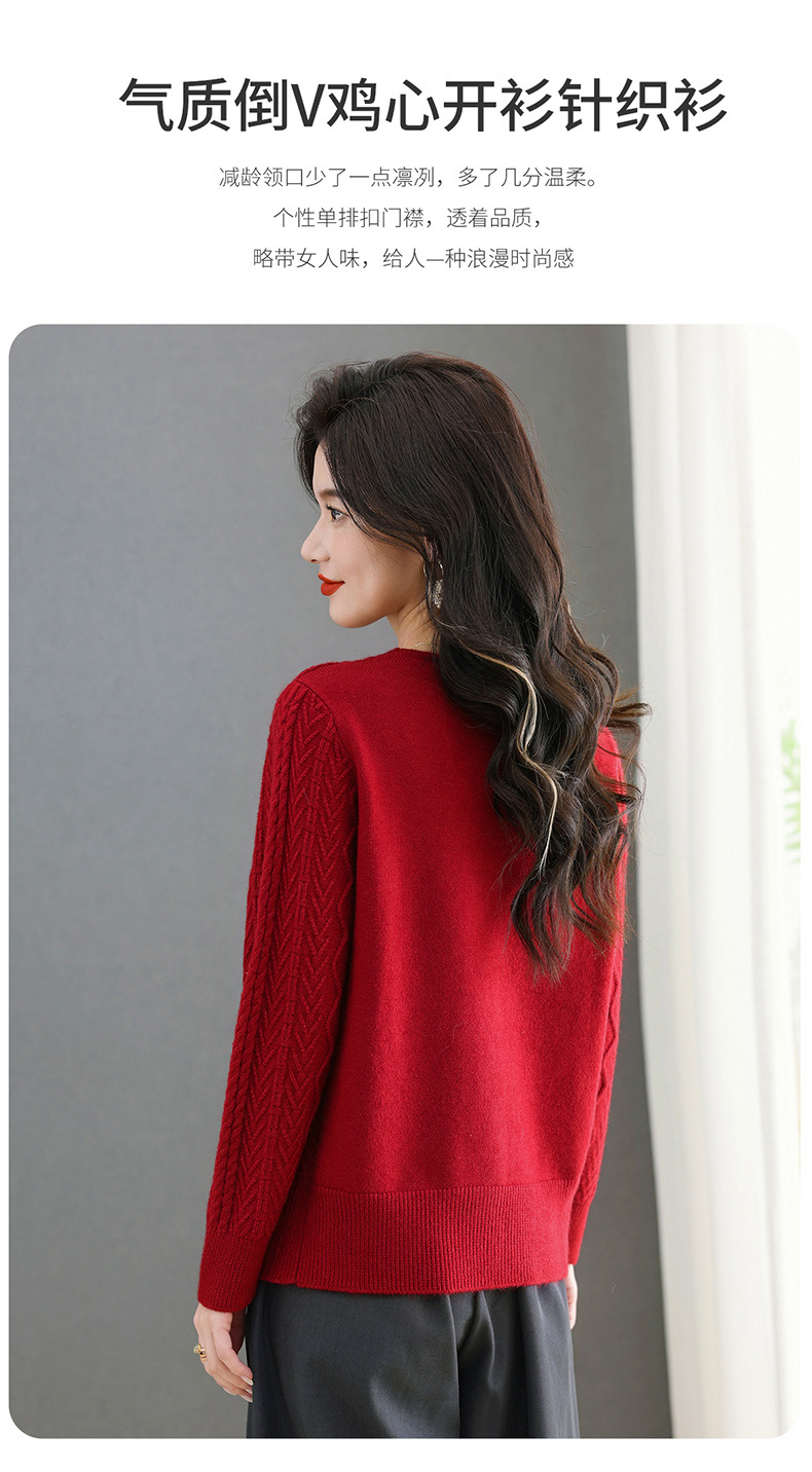 春秋季外套女士2025新款V领小个子宽松显瘦提花针织开衫短款上衣