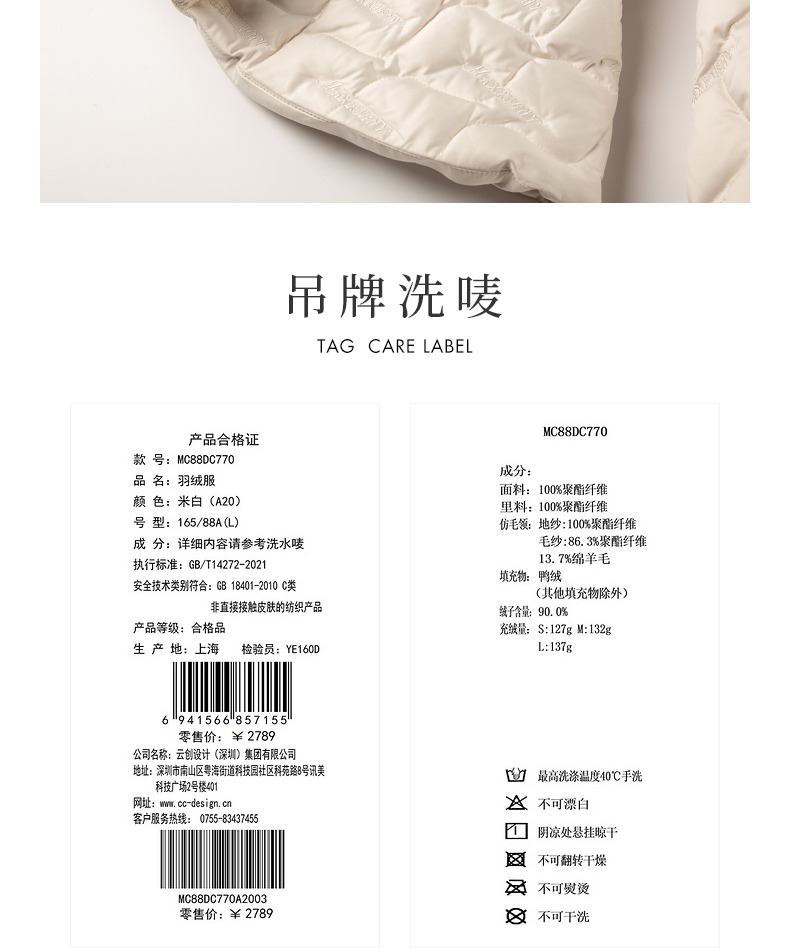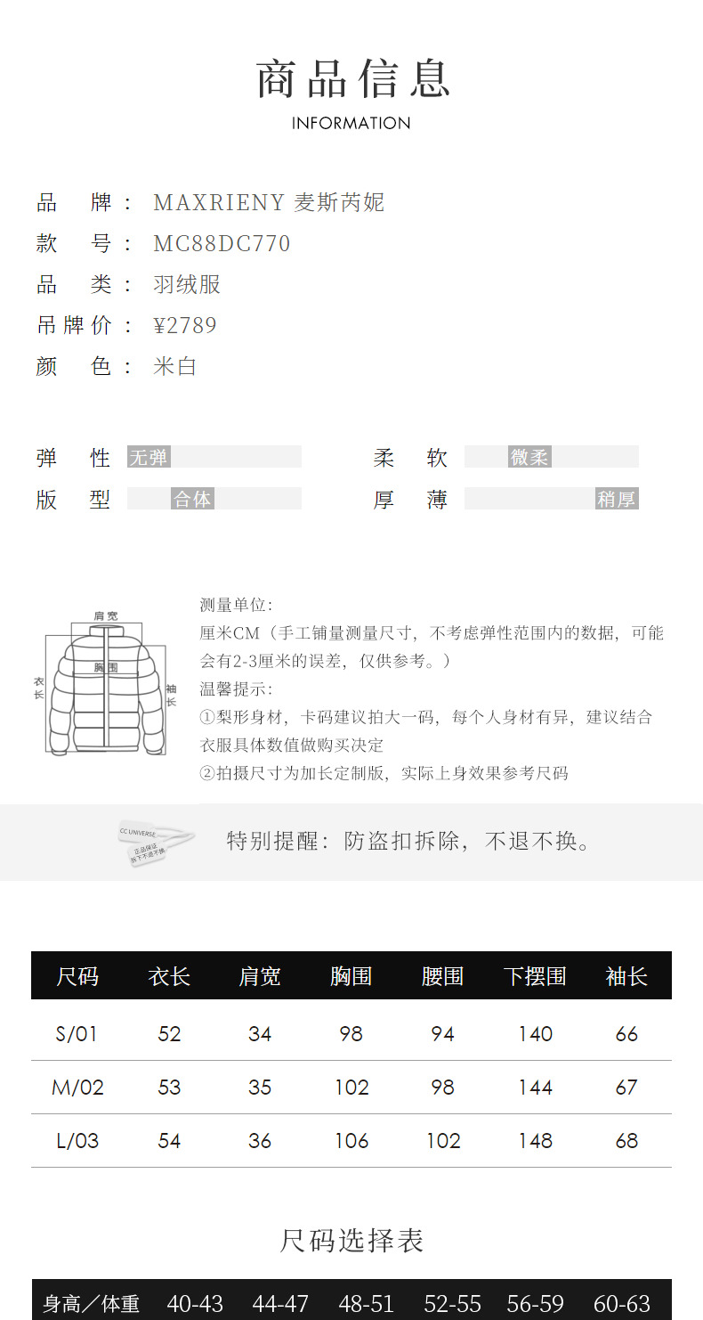 MAXRIENY立体菱格短款羽绒服2023冬季新款(货号:MC88DC770)