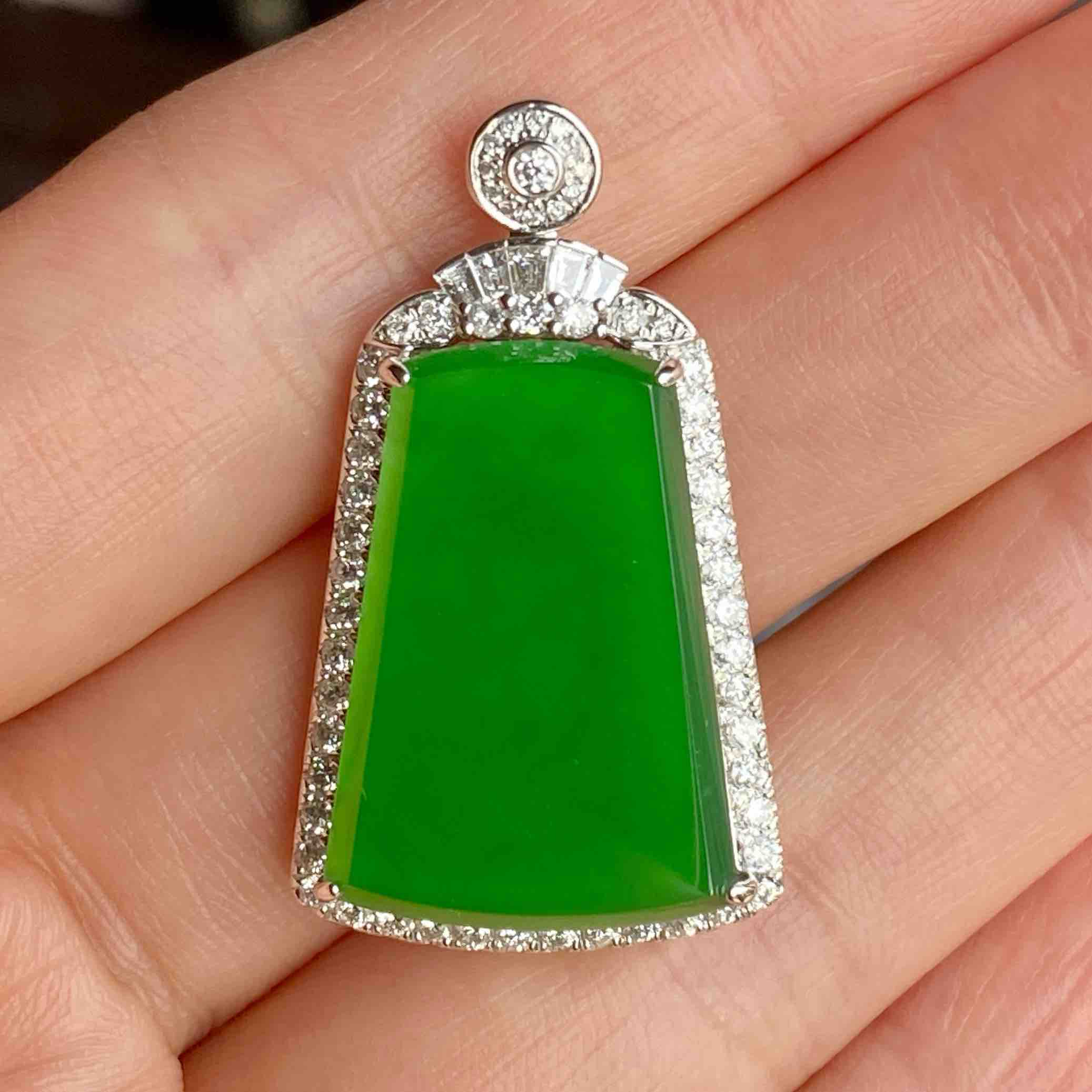 18k白金翡翠满钻吊坠