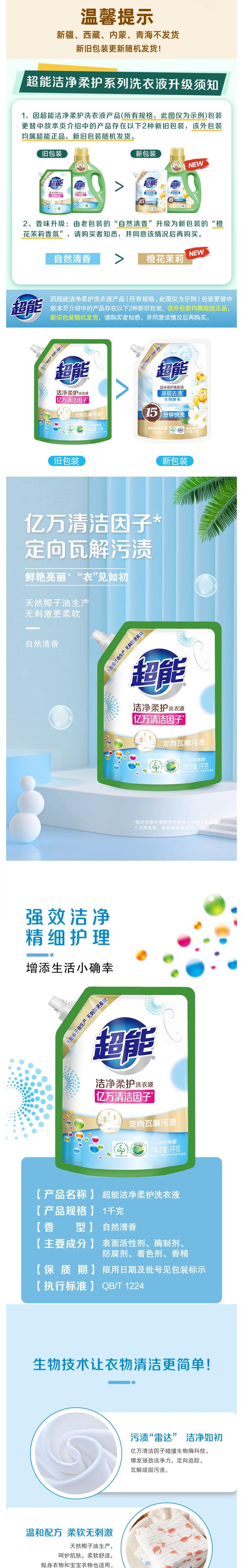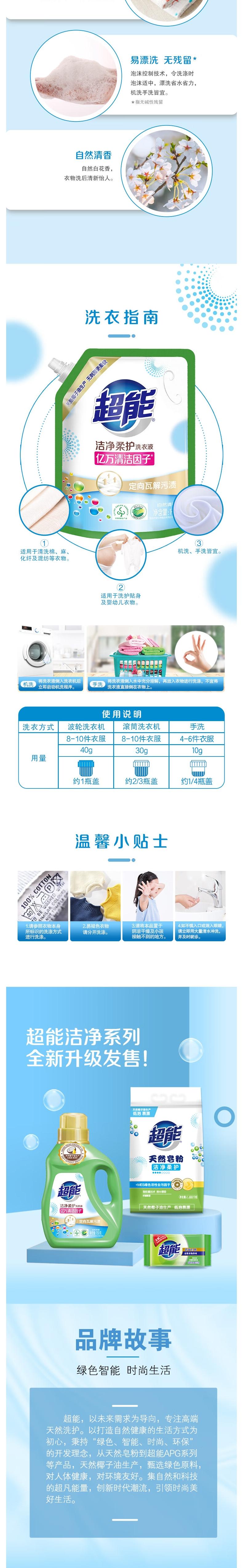 超能 新升级洁净柔护洗衣液1kg*2袋 cn-s2drhy