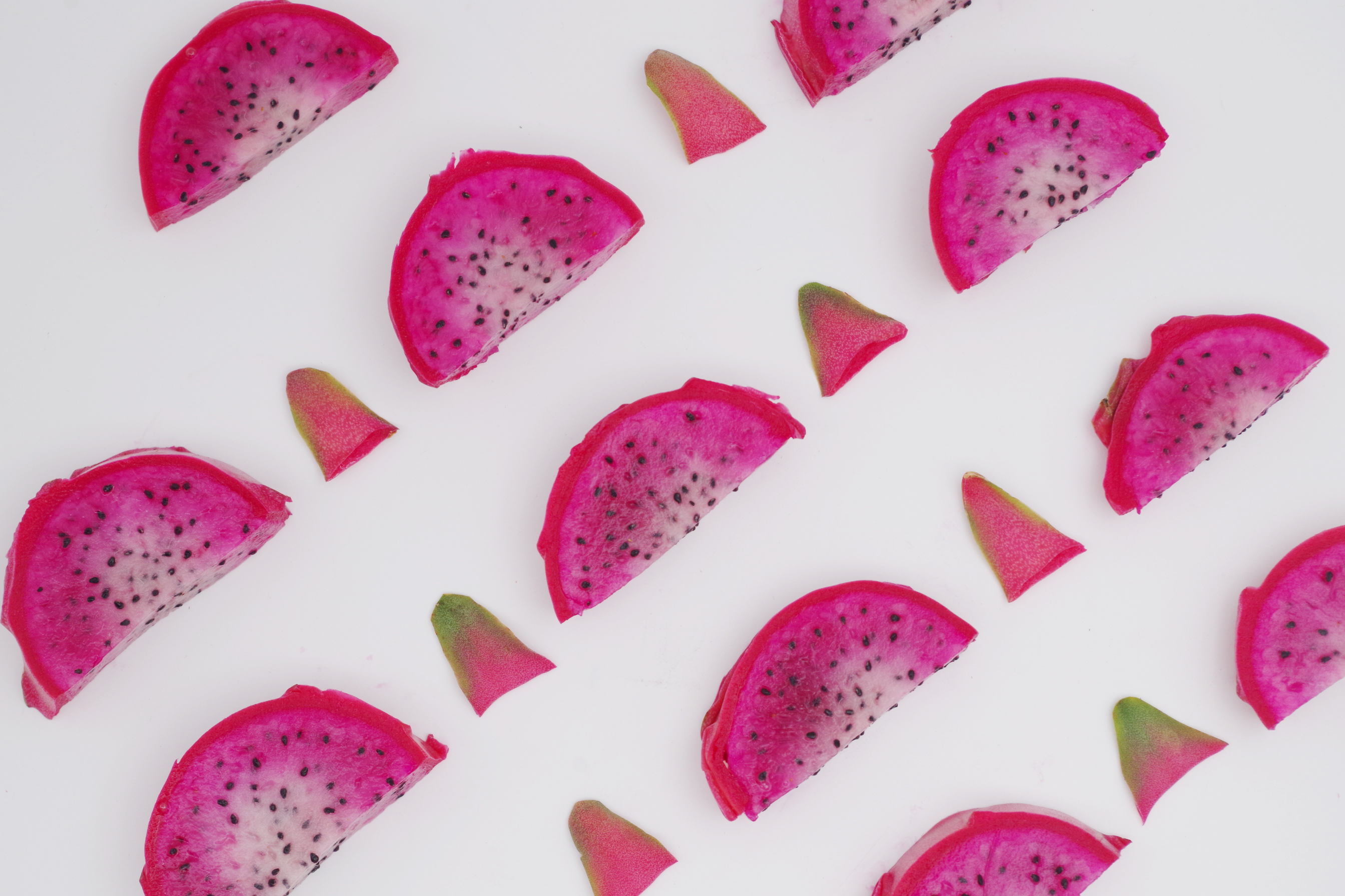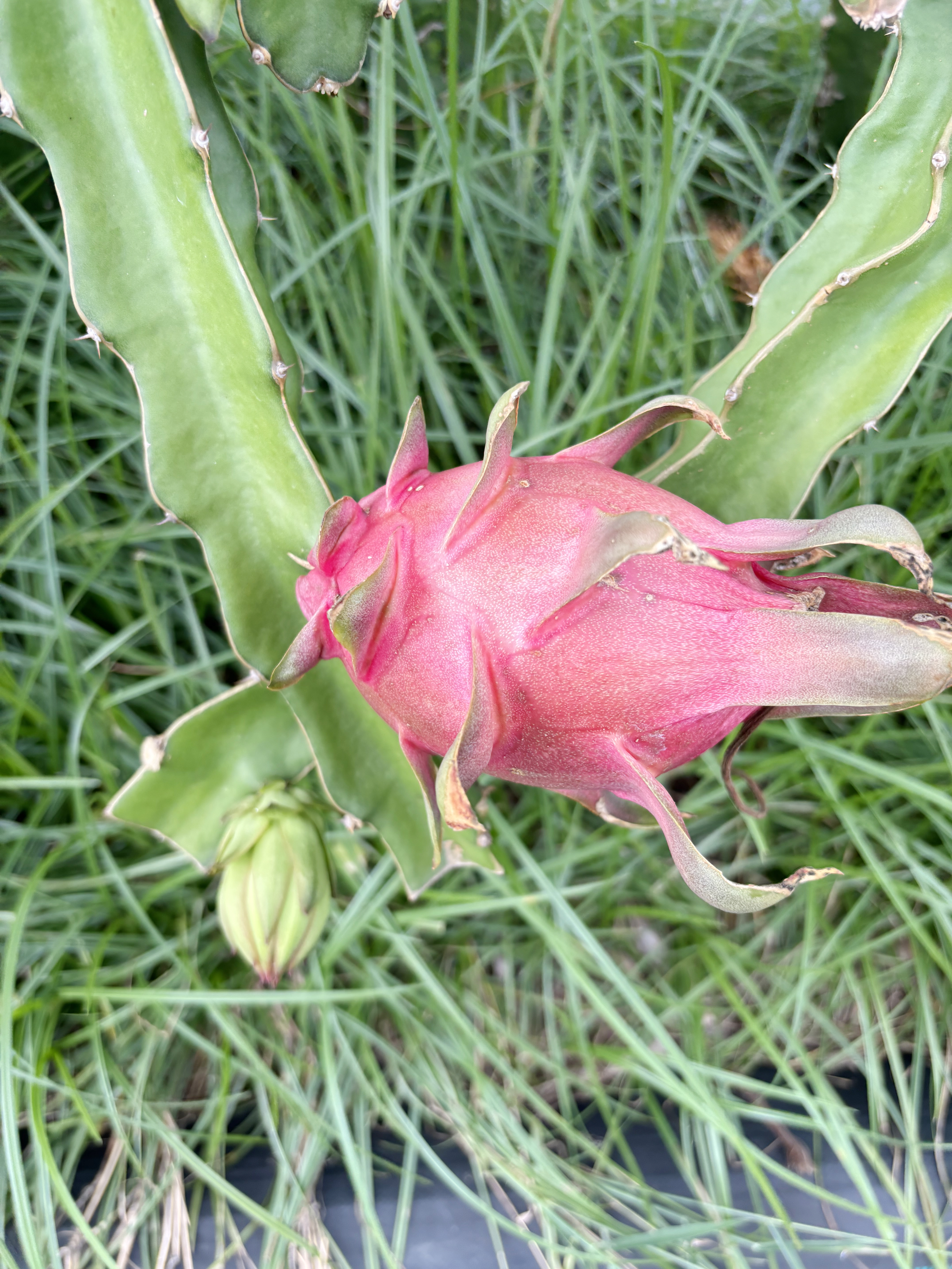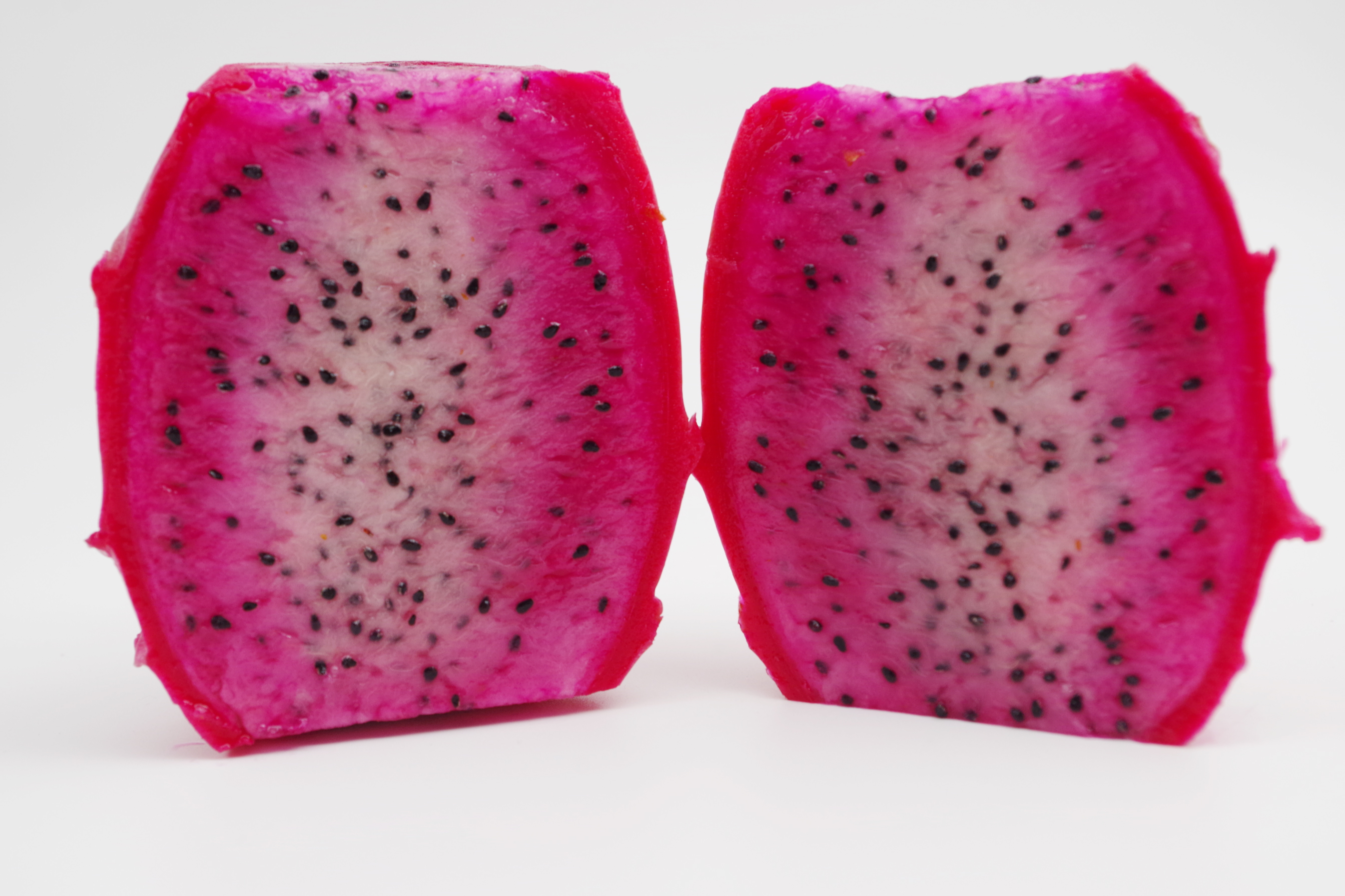 咱们海南乐东基地最新培育的新品种——冰淇淋双色火龙果。种植面积为70亩,目前能出产商品果的面积约为20亩,5月中旬已出第一批商品果。