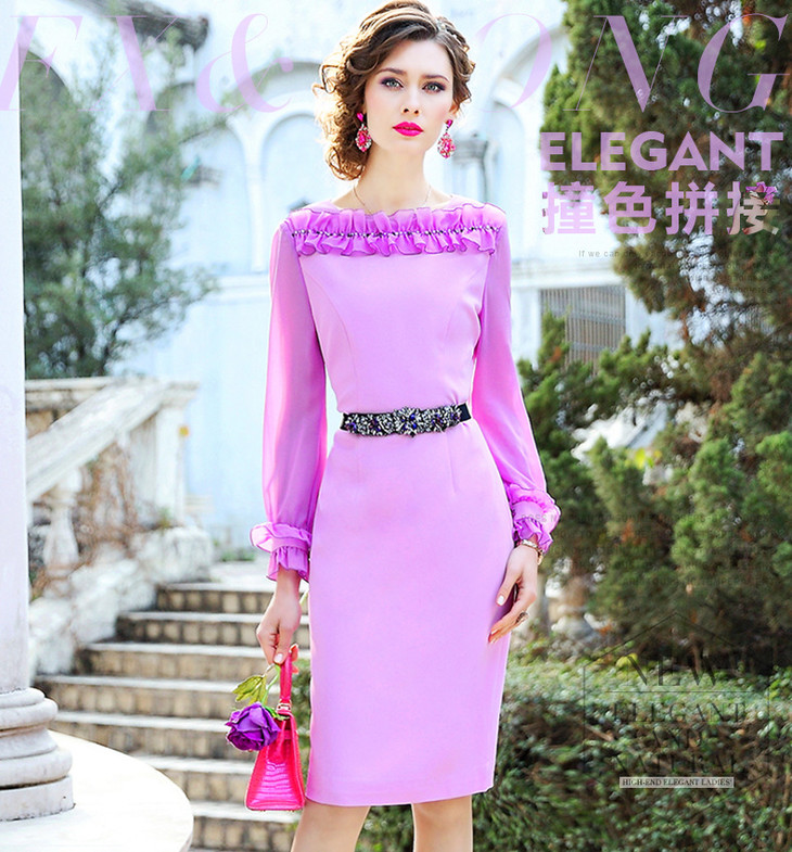 F-PB9052初春新款假两件改良旗袍连衣裙