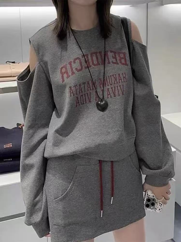 【清仓价】不参与退换 -3008单件漏肩卫衣-喜出