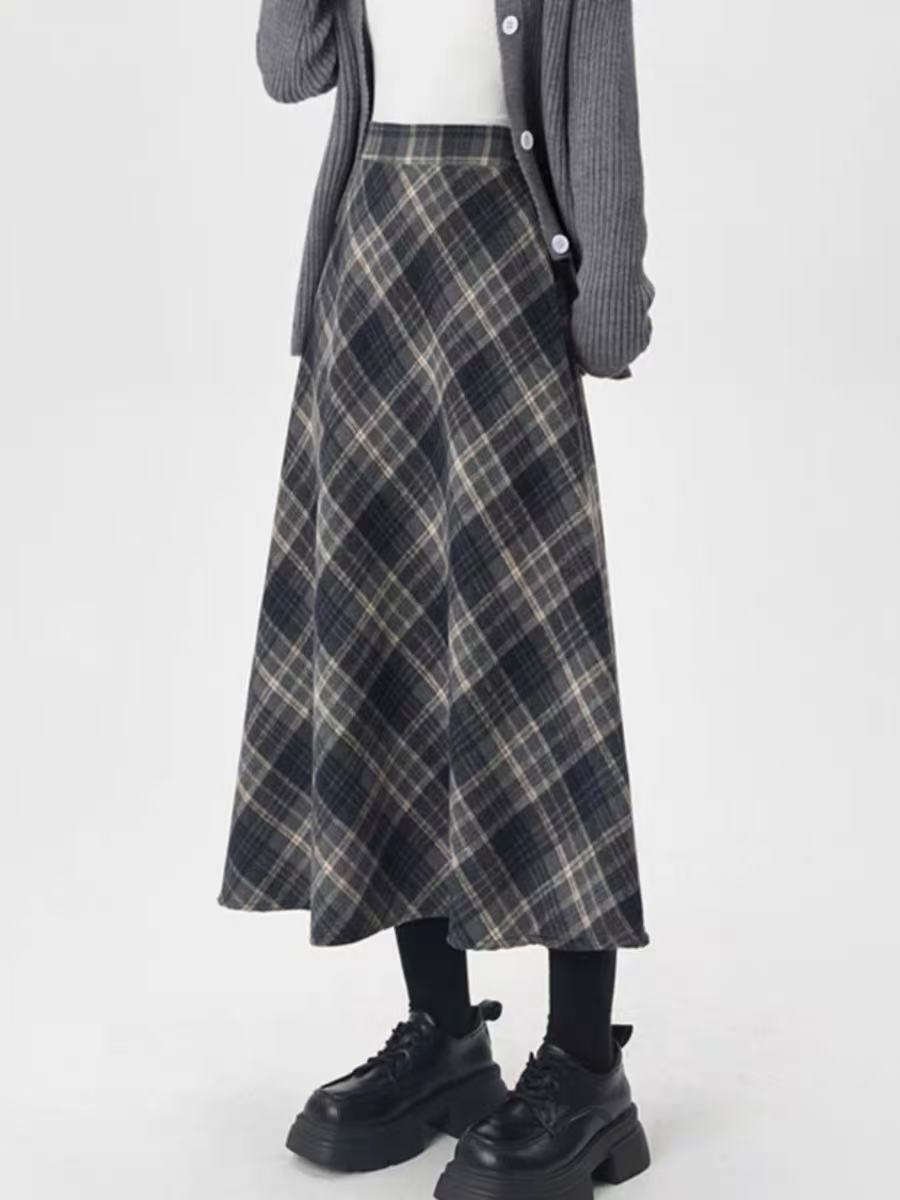 【孤品捡漏】G113灰色格子伞裙半身裙-喜出