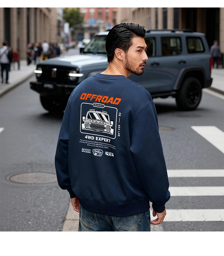 自由基地春季新品长城坦克越野车趣味设计印花图案衫队服打底卫衣 NMJ-2251