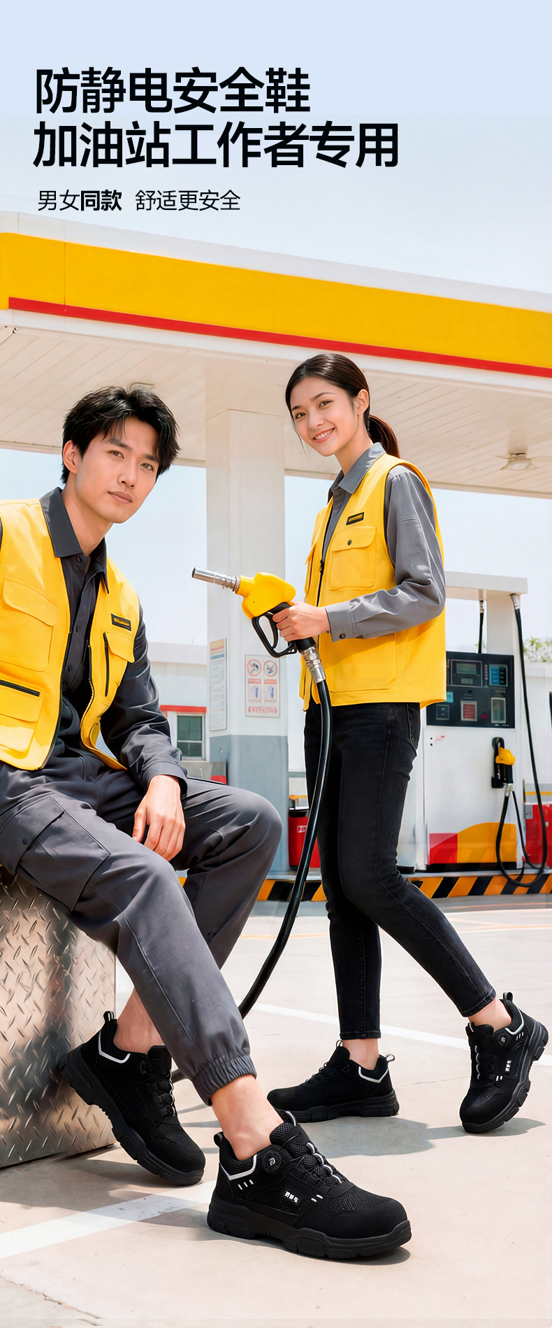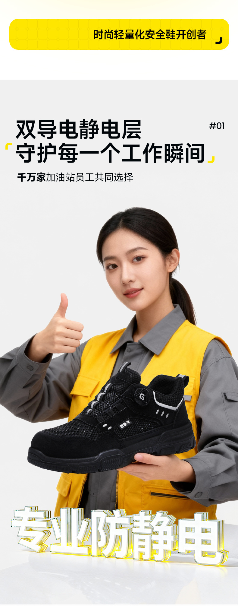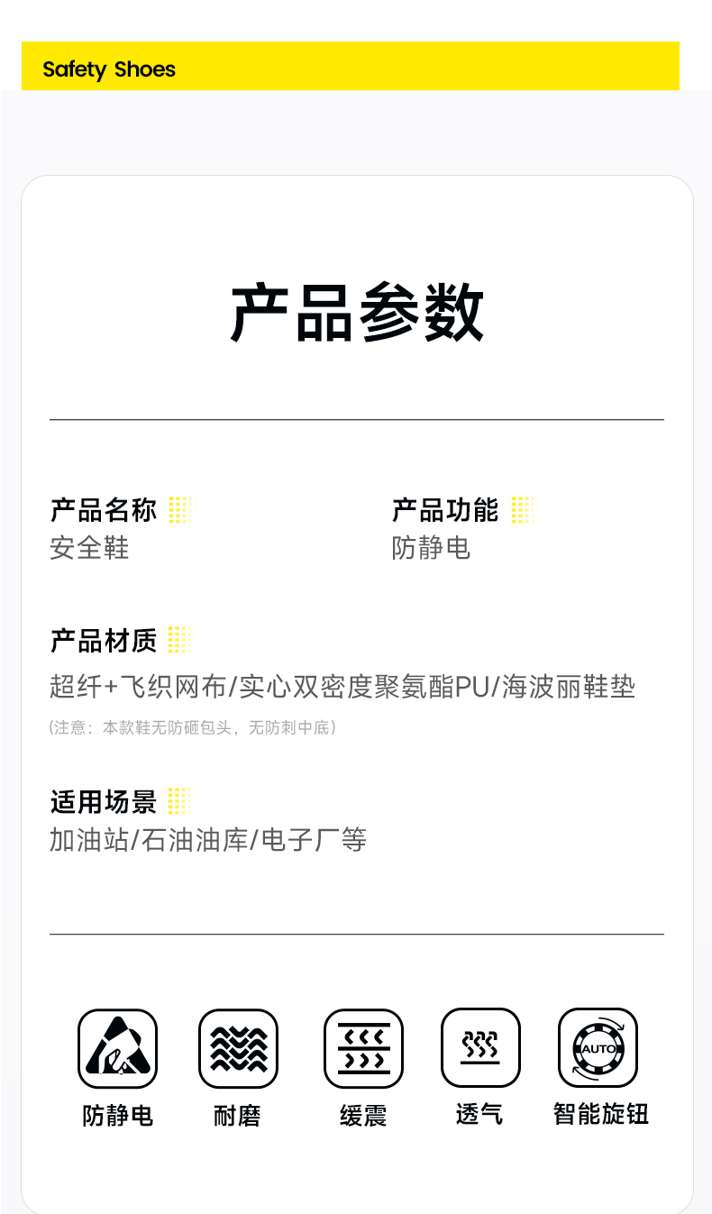 新款防静电无包头无中底实心双密度聚氨酯PU防静电款