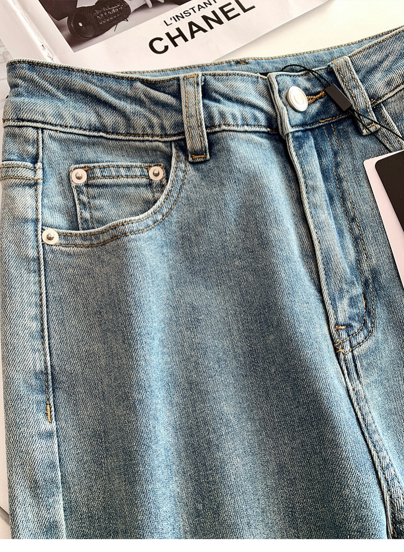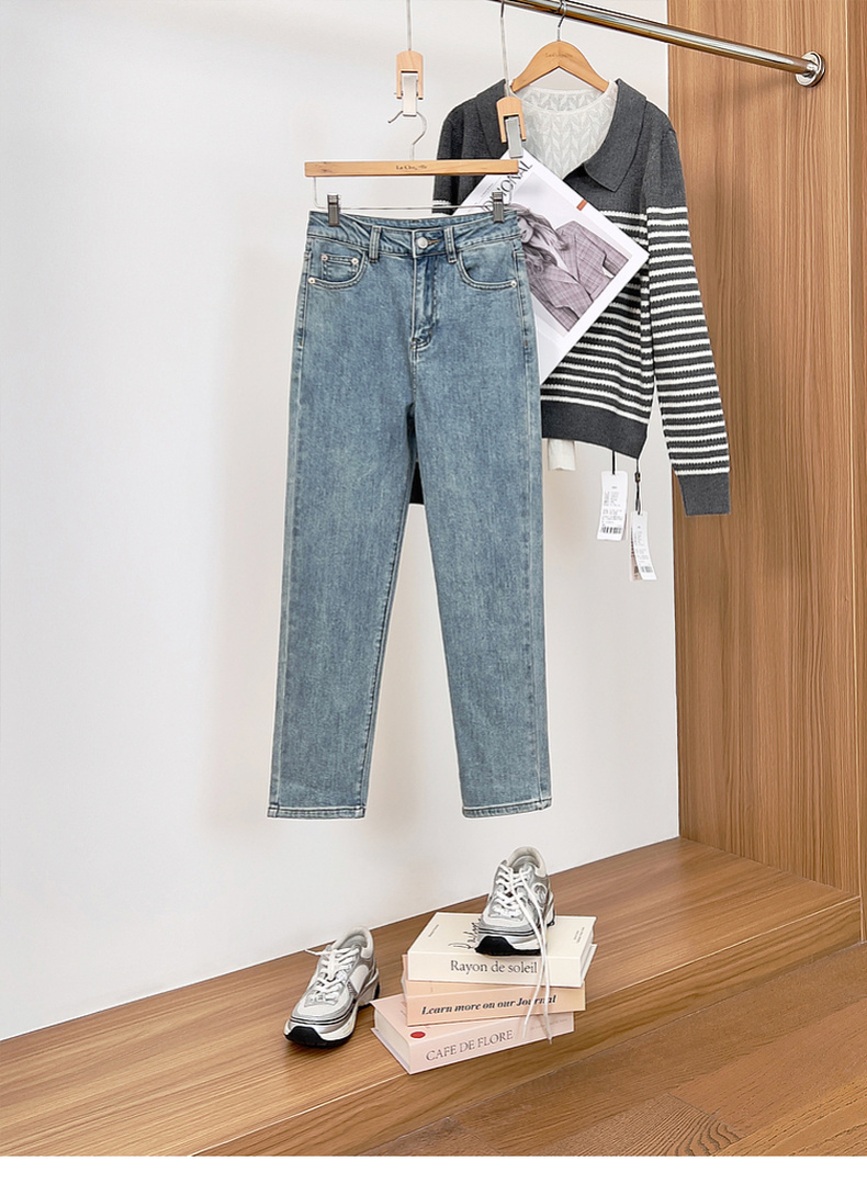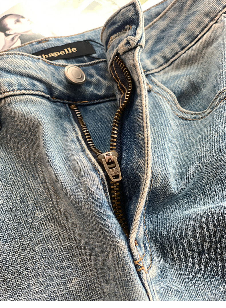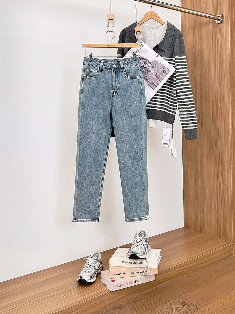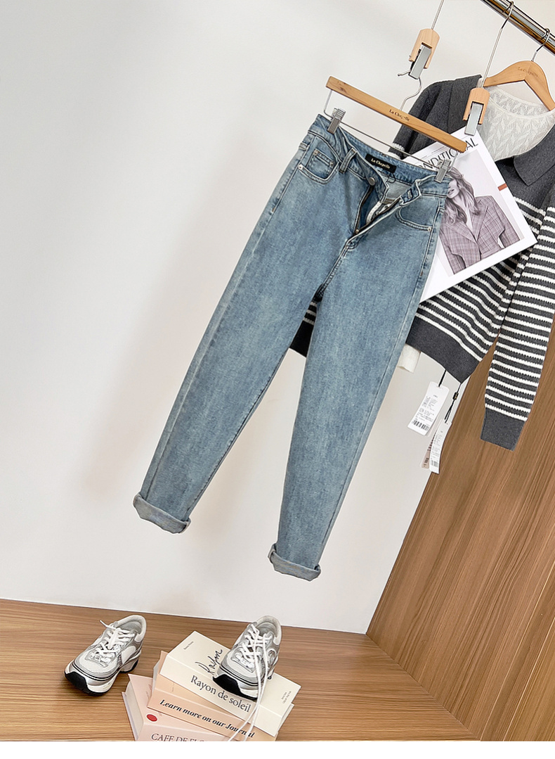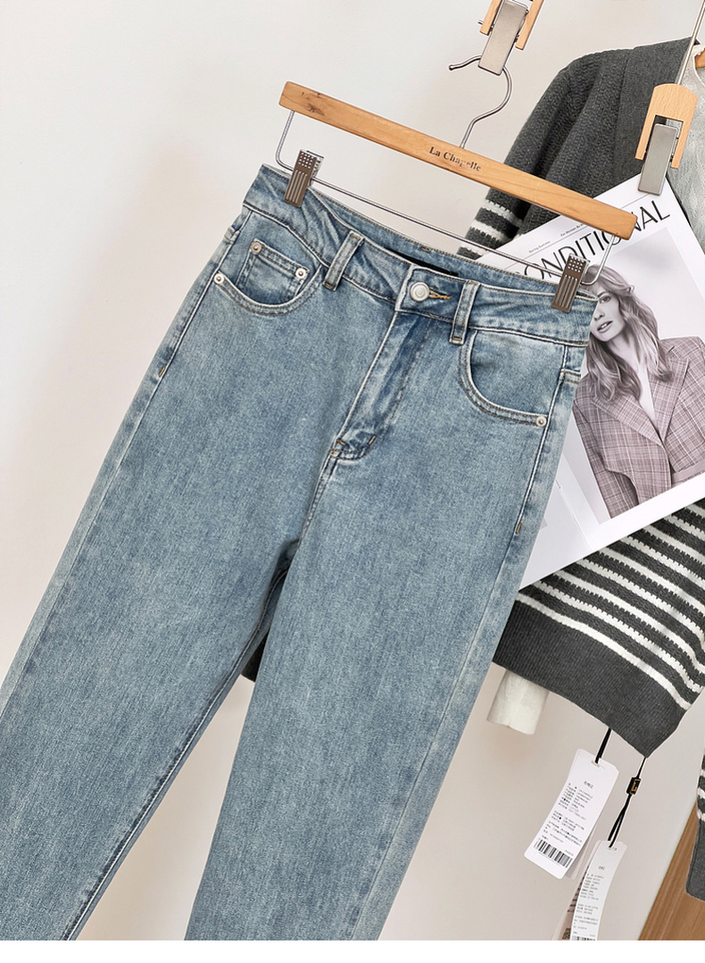 专柜实拍【人生小脚裤】拉夏贝尔/La Chapelle单扣弧形口袋小脚牛仔裤女修身小个子时尚休闲长裤
