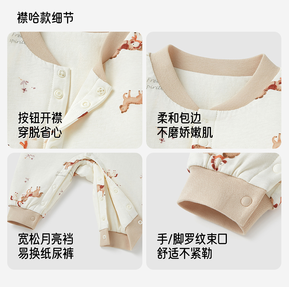 【商场同款】英氏新生儿爬服秋冬纯棉哈衣长袖连体衣新款