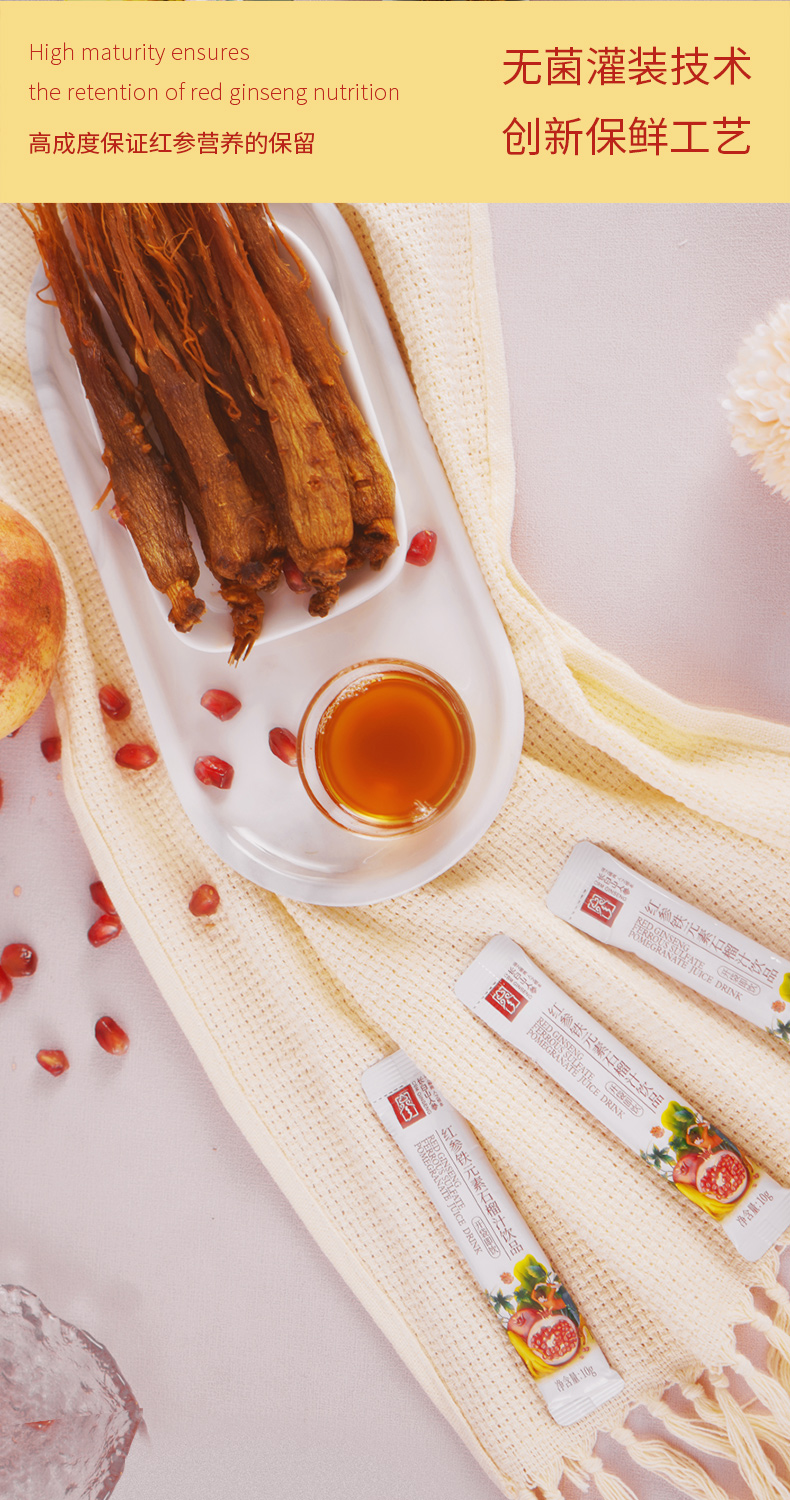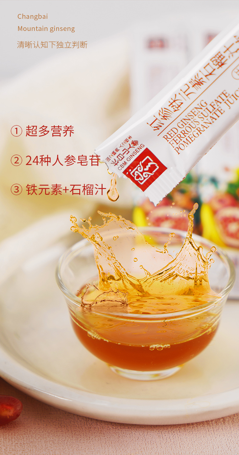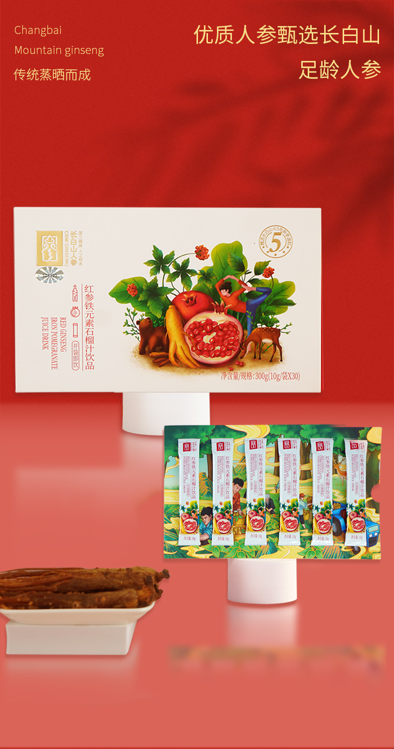 【官方直发】长白山人参 红参铁元素石榴饮浓缩口服液饮品小袋装(生产日期24年8-10月)