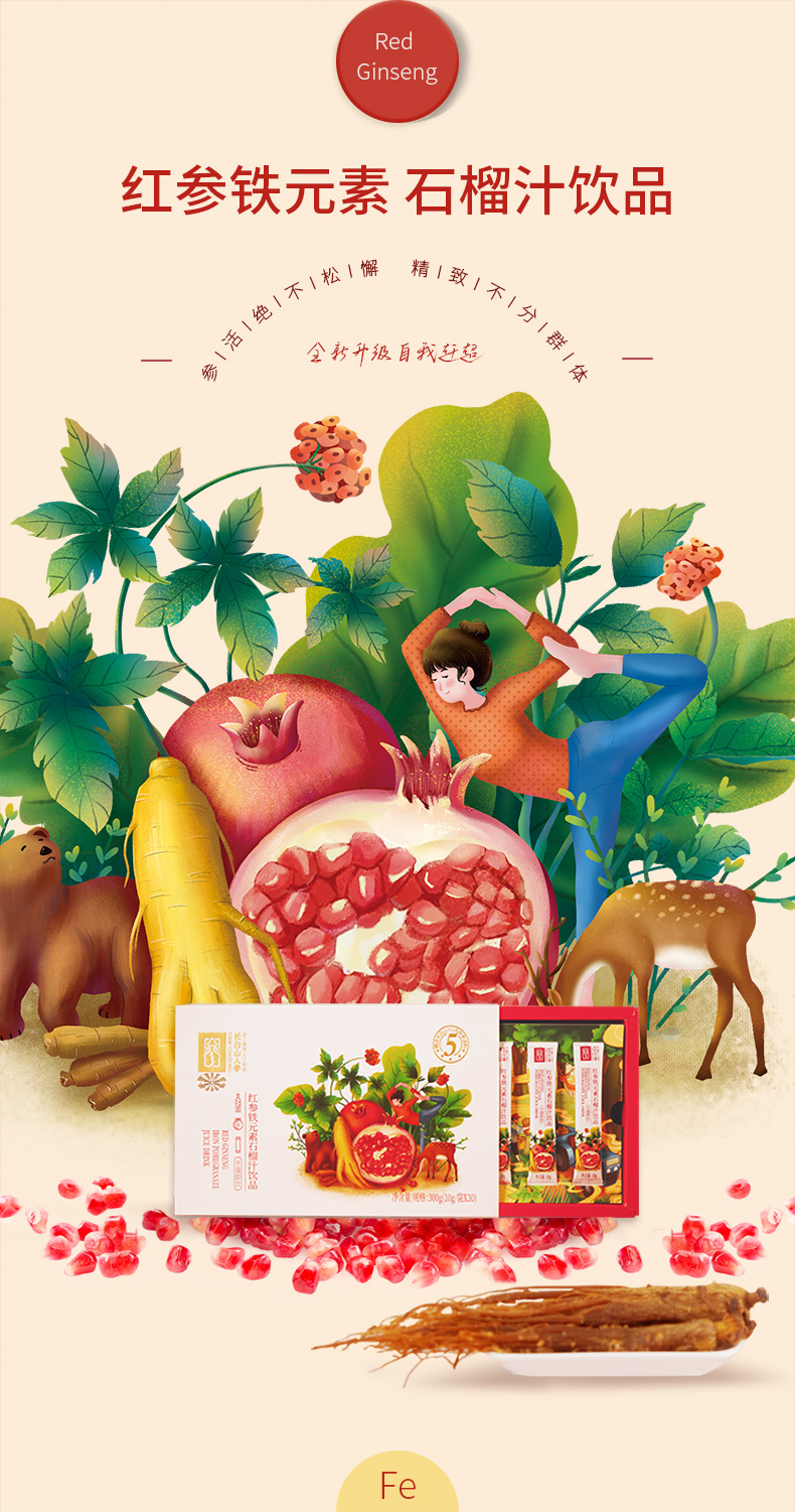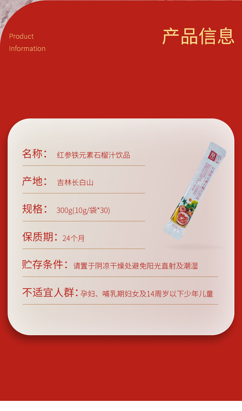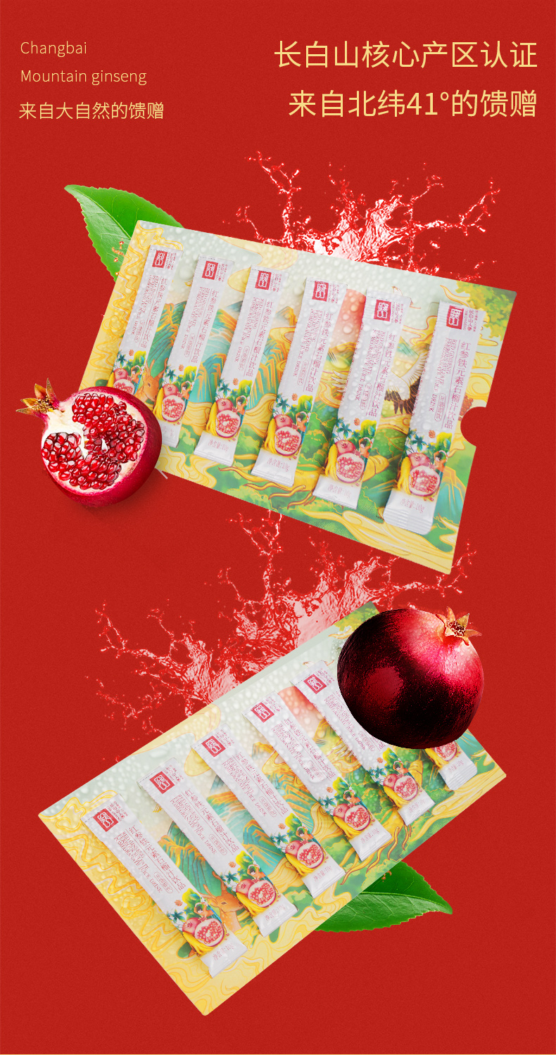 【官方直发】长白山人参 红参铁元素石榴饮浓缩口服液饮品小袋装(生产日期24年8-10月)