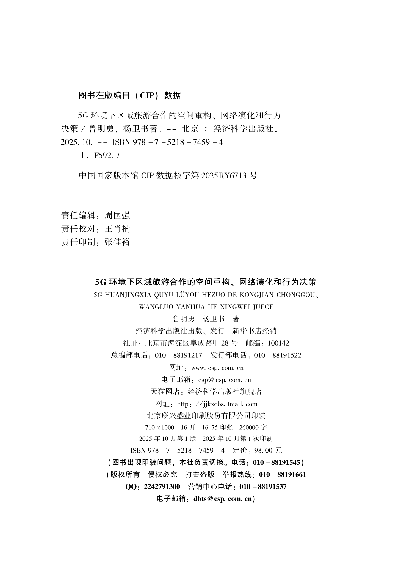 5G环境下区域旅游合作的空间重构、网络演化和行为决策