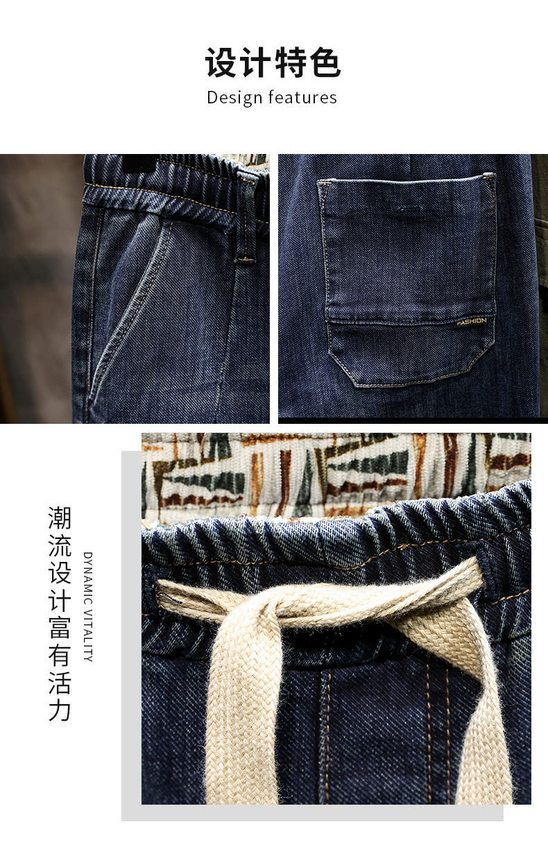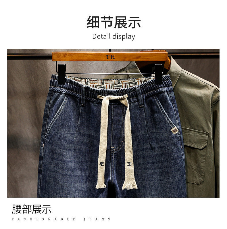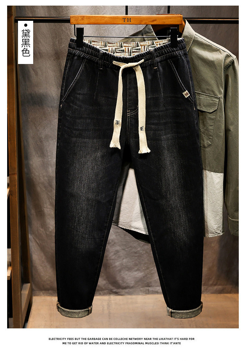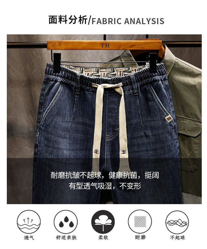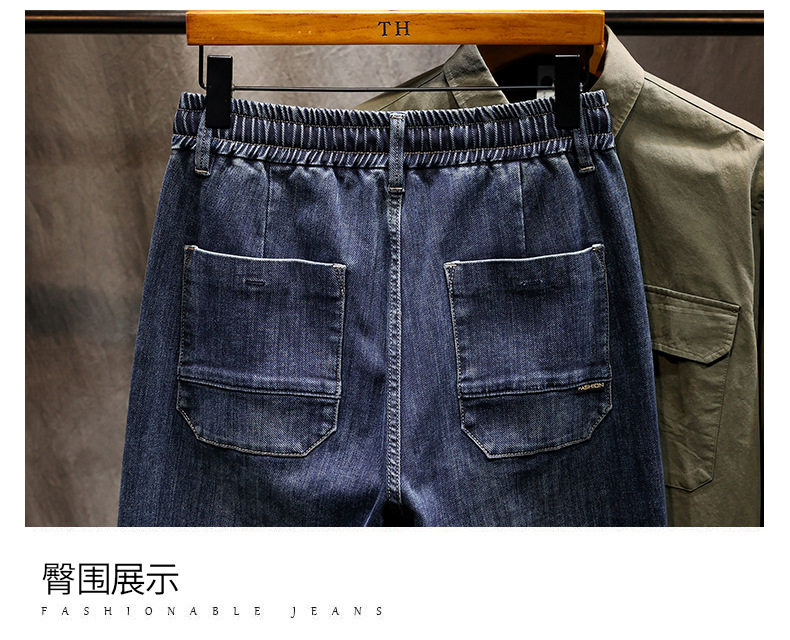 【DYG】大依优型大码男装春秋松紧腰运动哈伦裤牛仔长裤棉质束口小脚裤