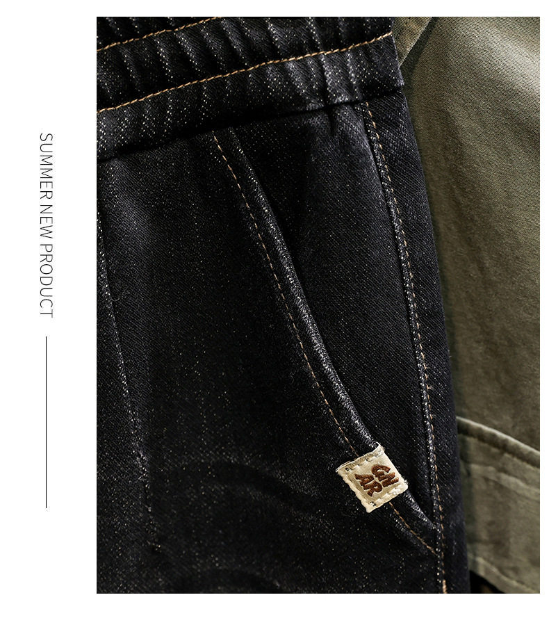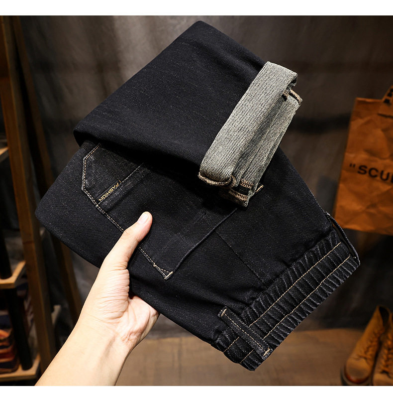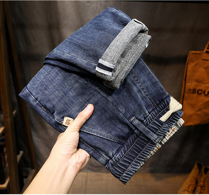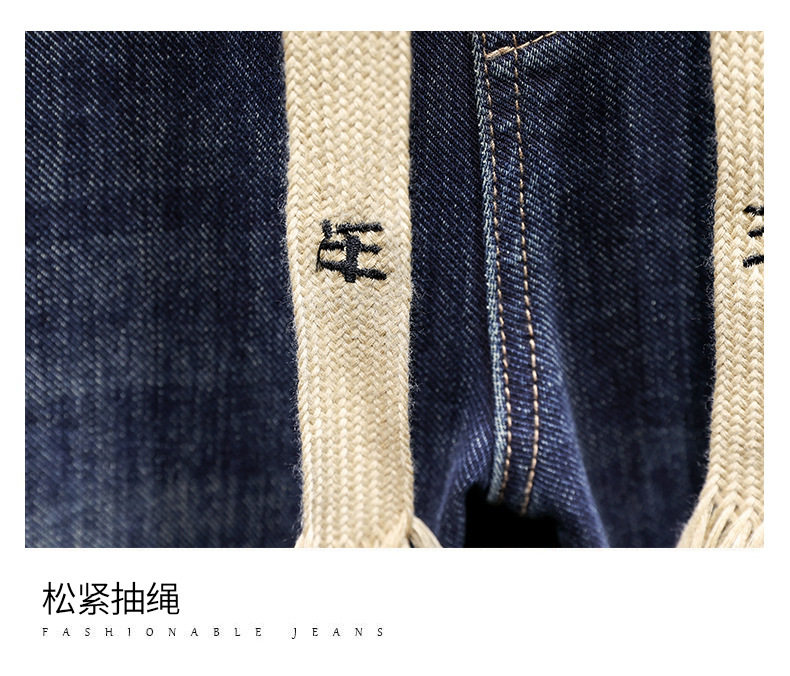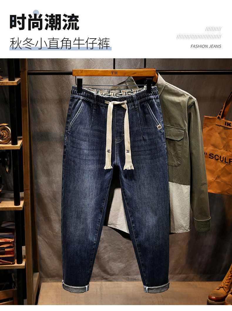 【DYG】大依优型大码男装春秋松紧腰运动哈伦裤牛仔长裤棉质束口小脚裤