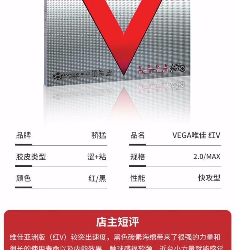 骄猛红V适合直拍横打、近台快攻和中台相持等打法,