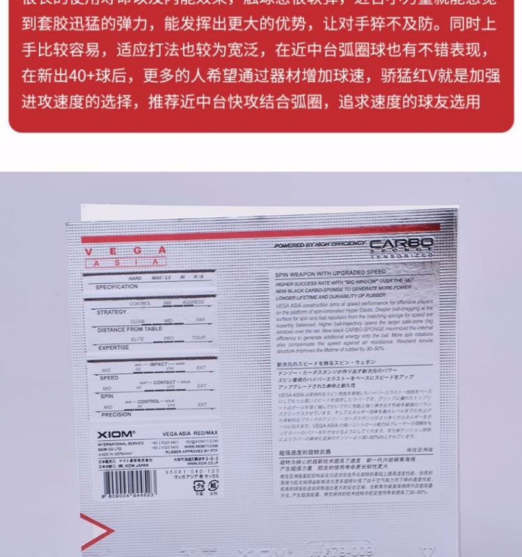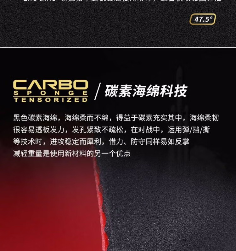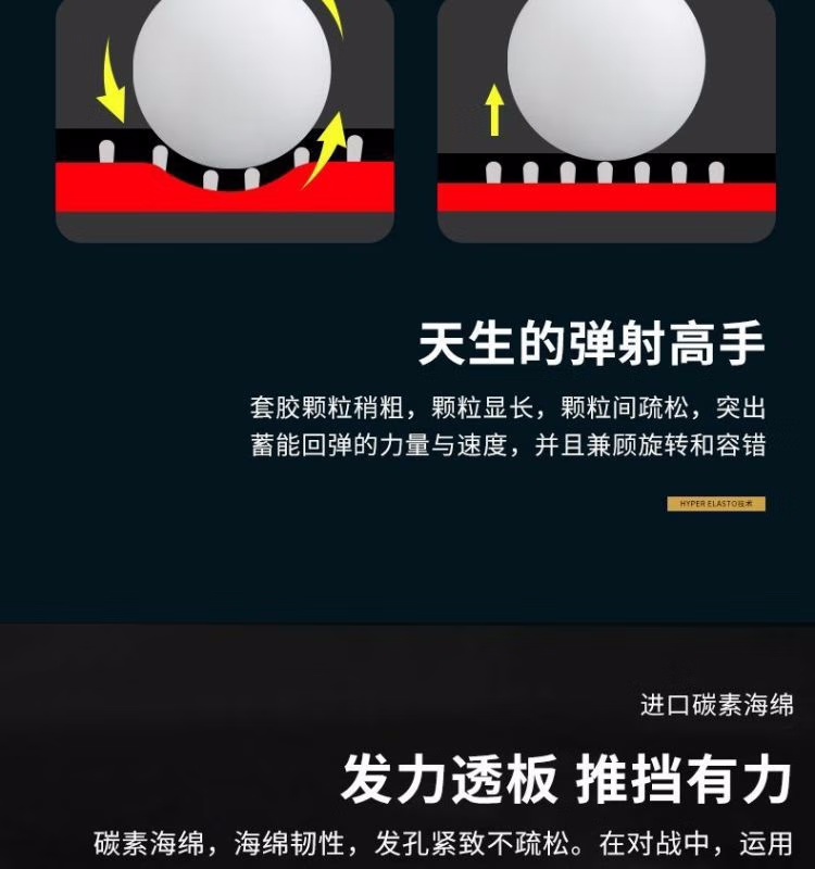 骄猛红V胶皮采用黑色碳素海绵,具有柔软且富有