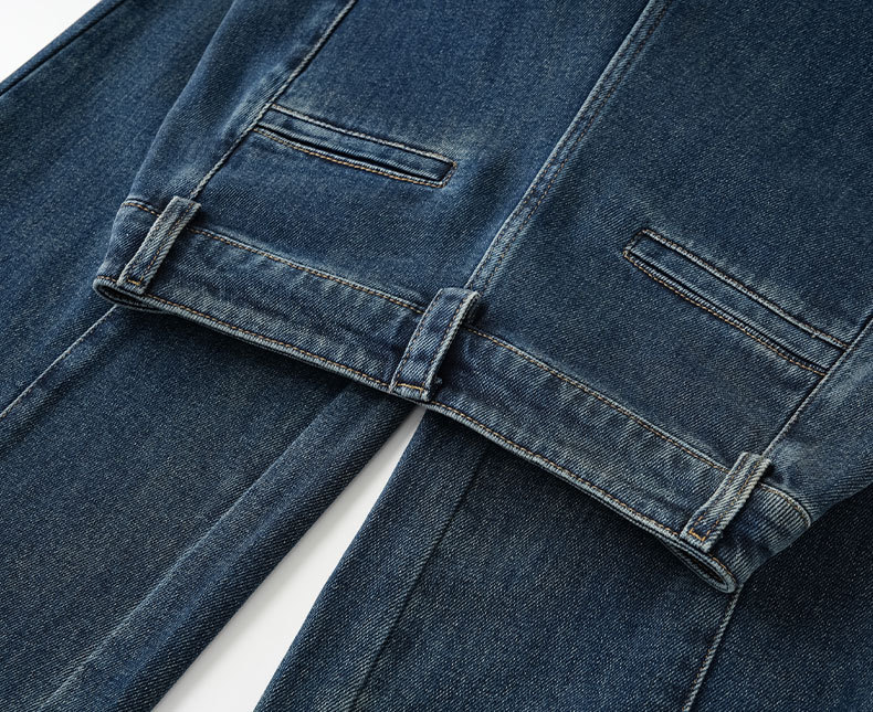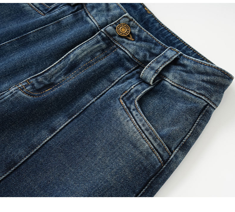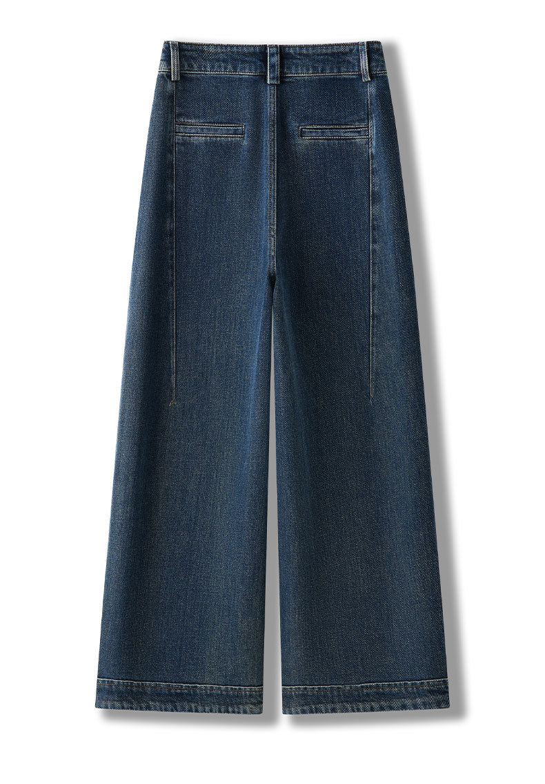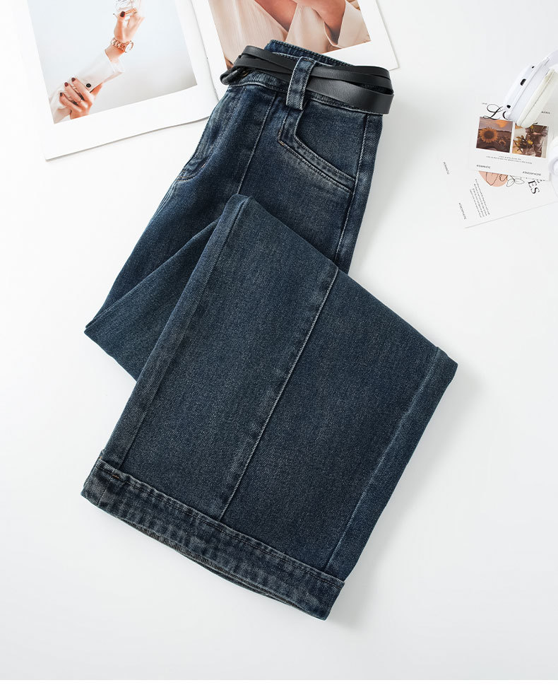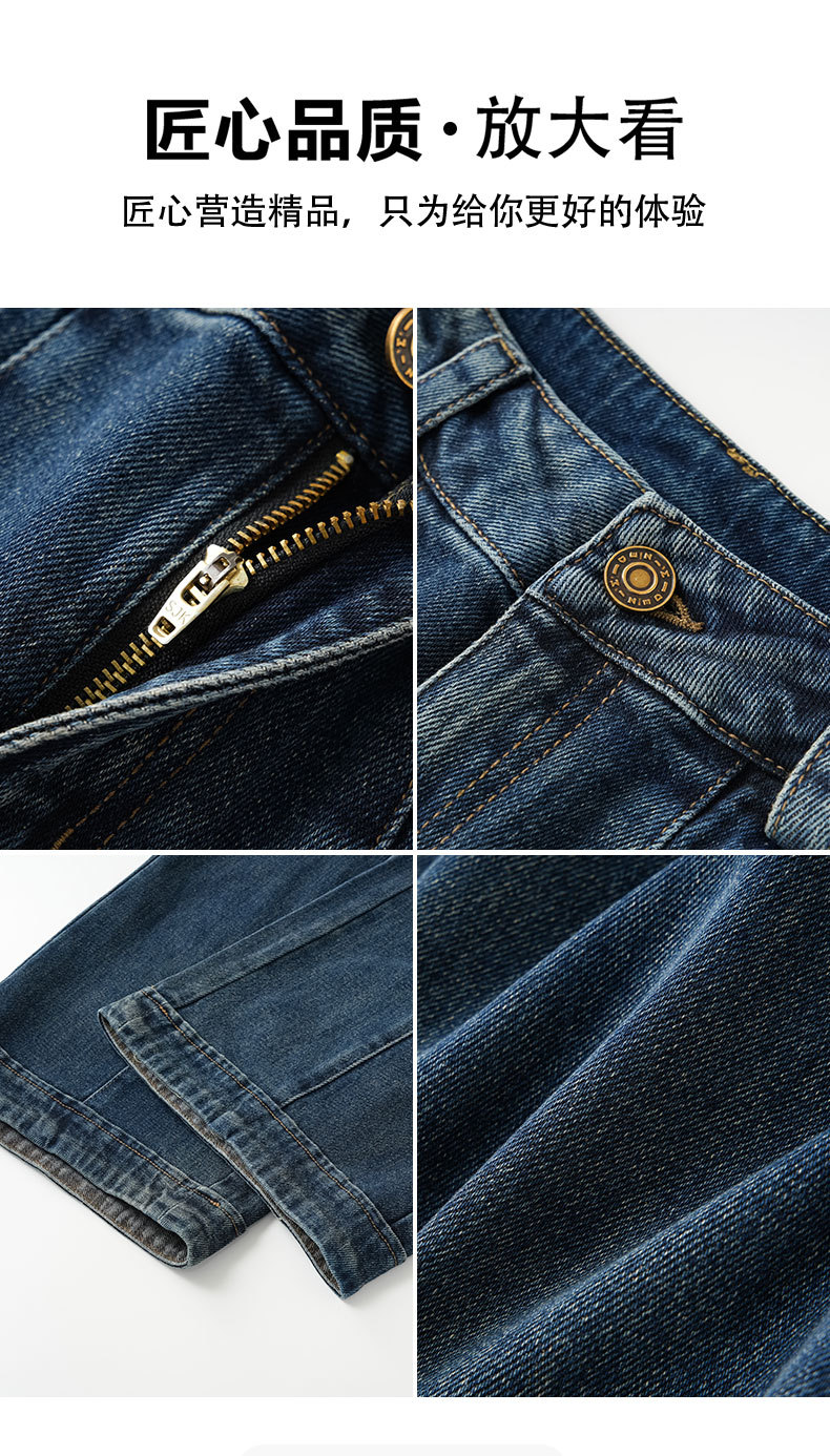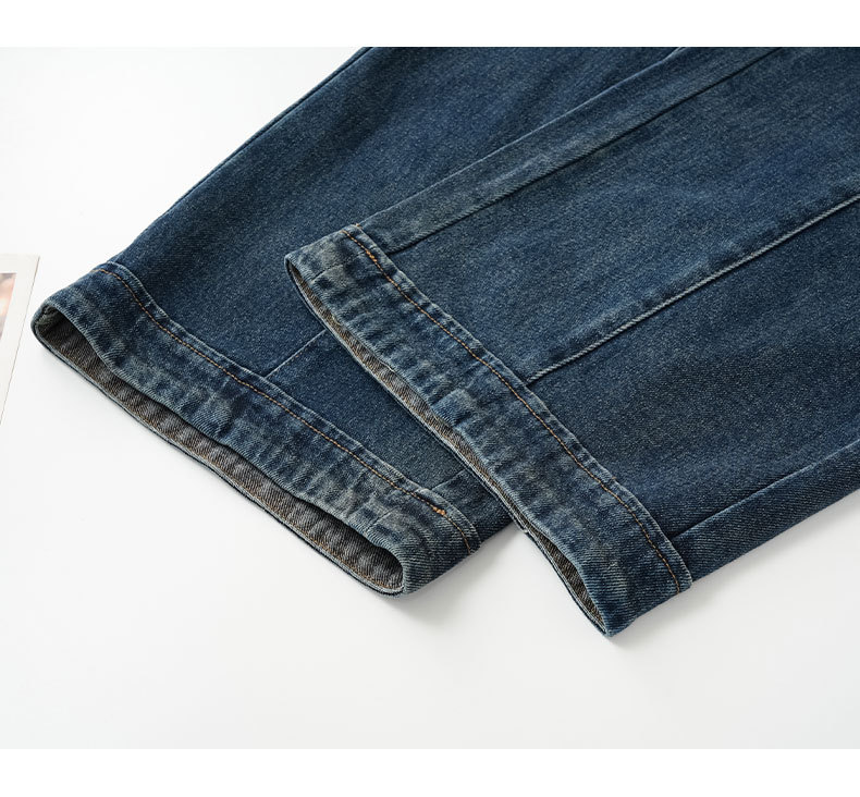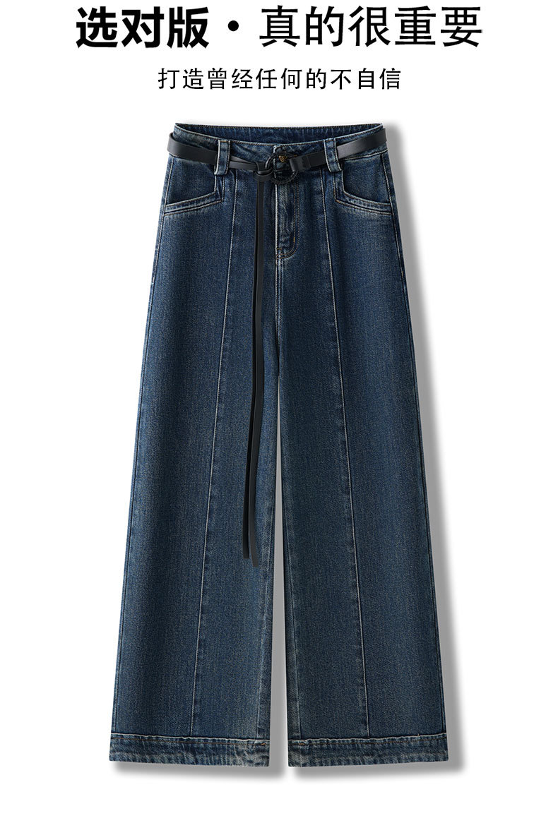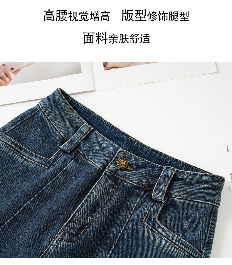 QYM F2126-Y阔腿裤休闲牛仔裤宽松高腰直筒裤九分裤