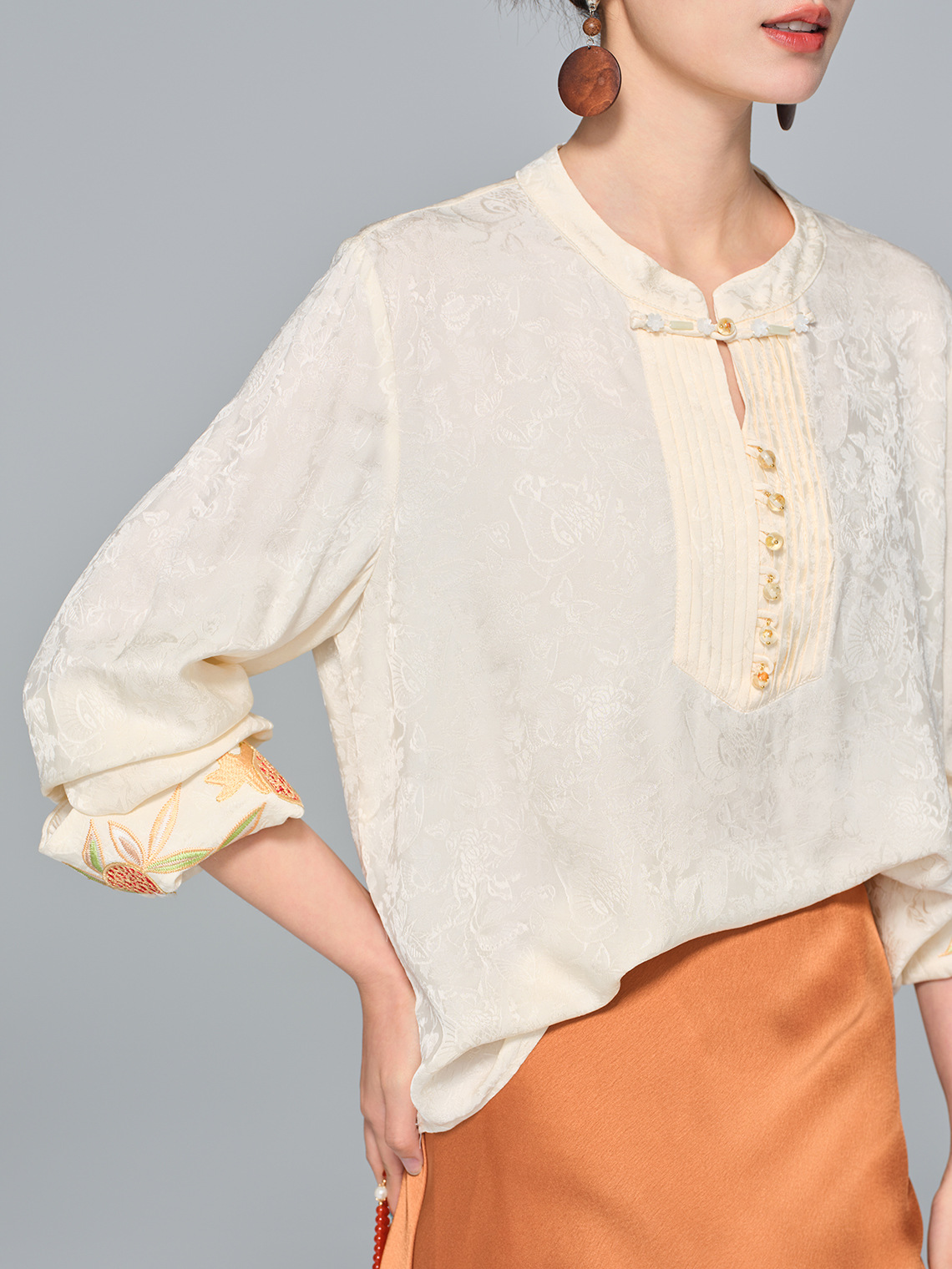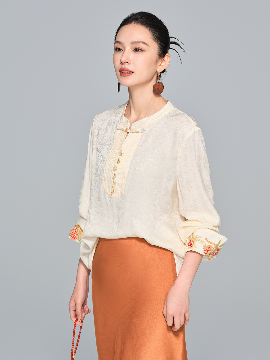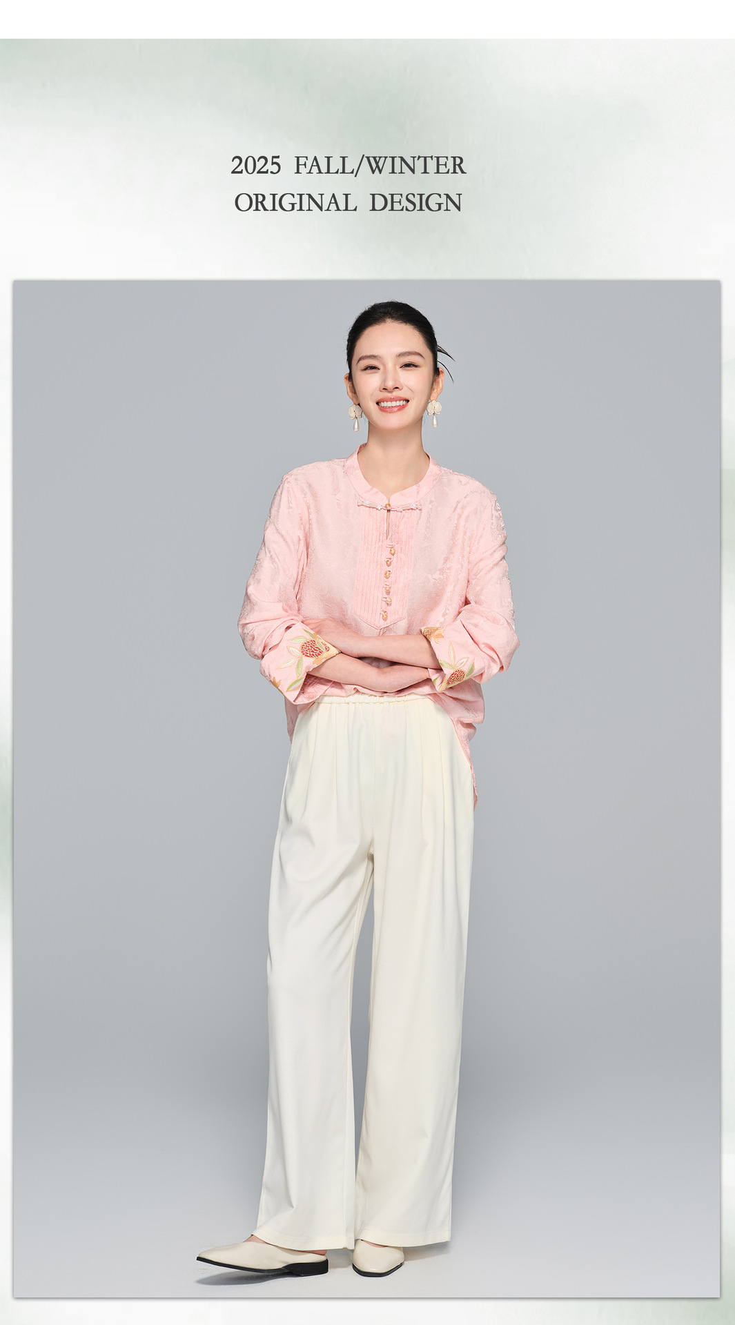 「自」全新升级【铂金会员293/天猫389/差价96】(43258)洛诗琳新中式国风立领绣花衬衫2025秋季新款高级感上衣女