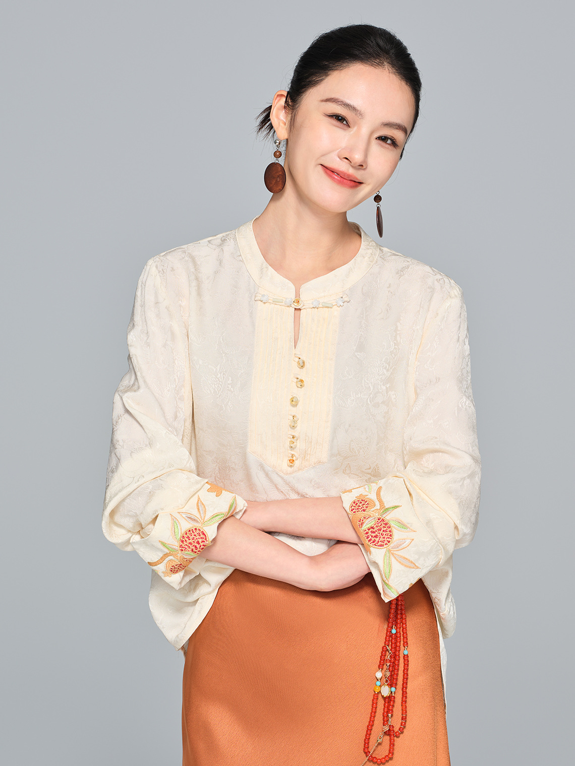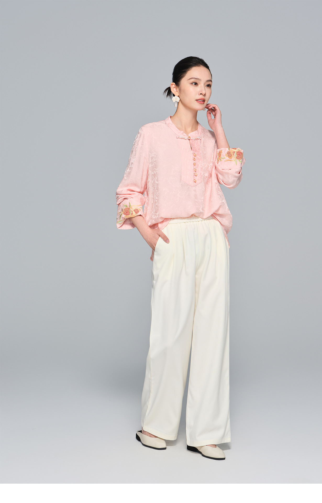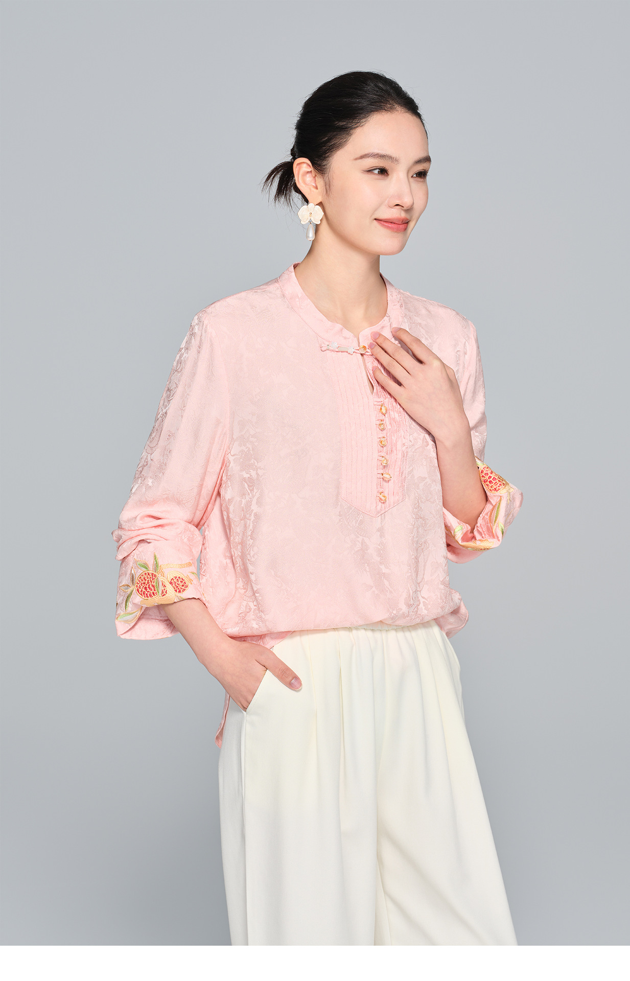 「自」全新升级【铂金会员293/天猫389/差价96】(43258)洛诗琳新中式国风立领绣花衬衫2025秋季新款高级感上衣女