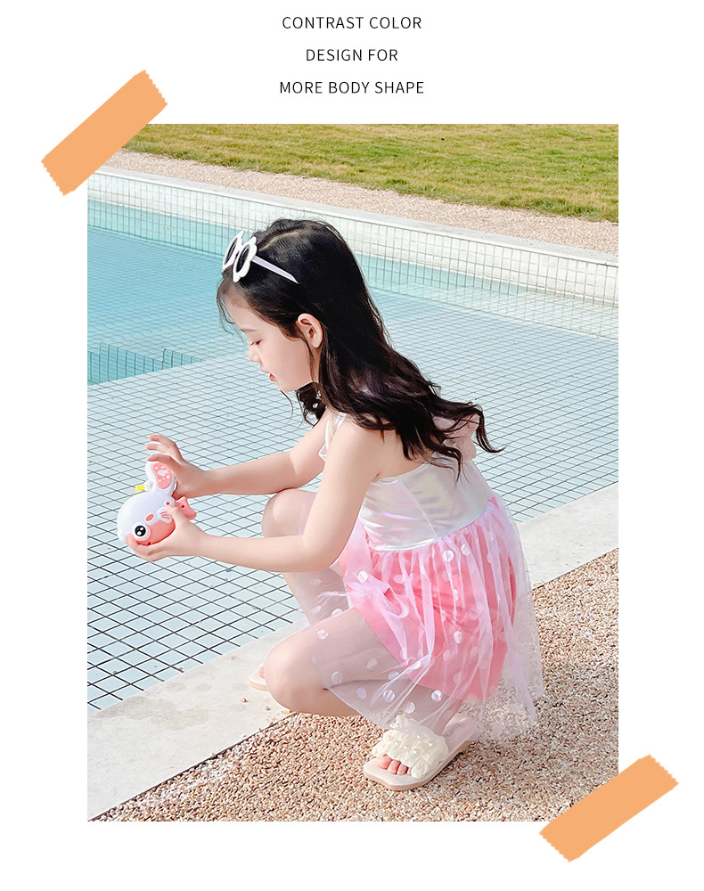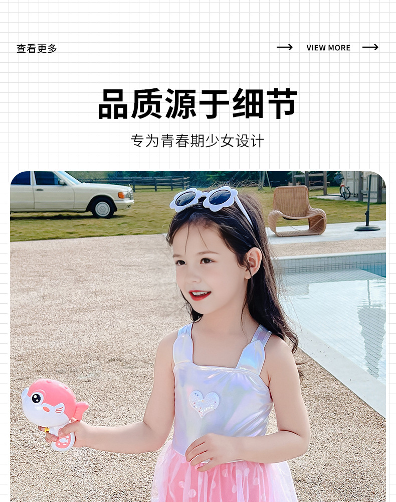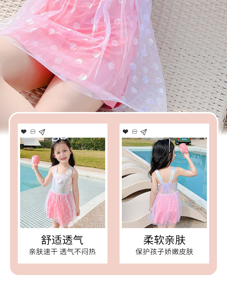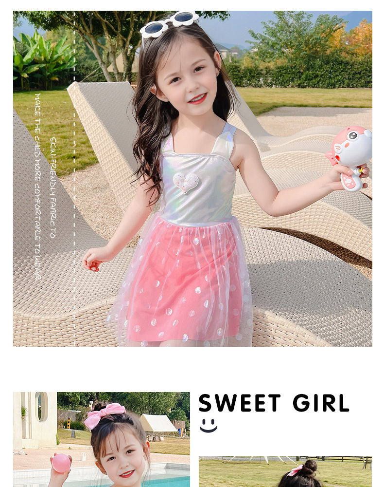 【洋气公主连体裙式,中小童女孩游泳衣!】2025夏季新款 儿童泳衣 女童韩版洋气公主连体裙式 中小童女孩游泳衣-QQ