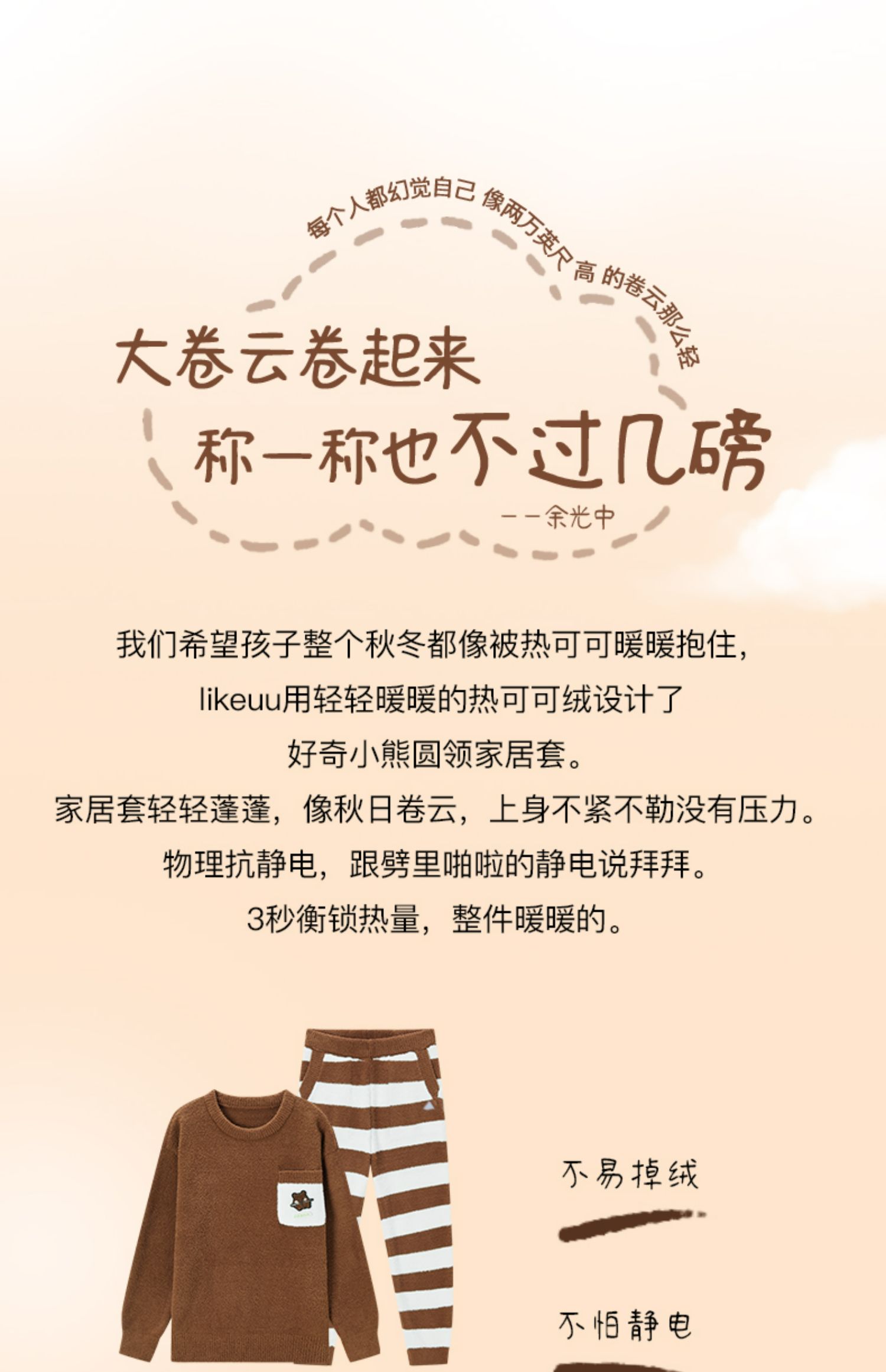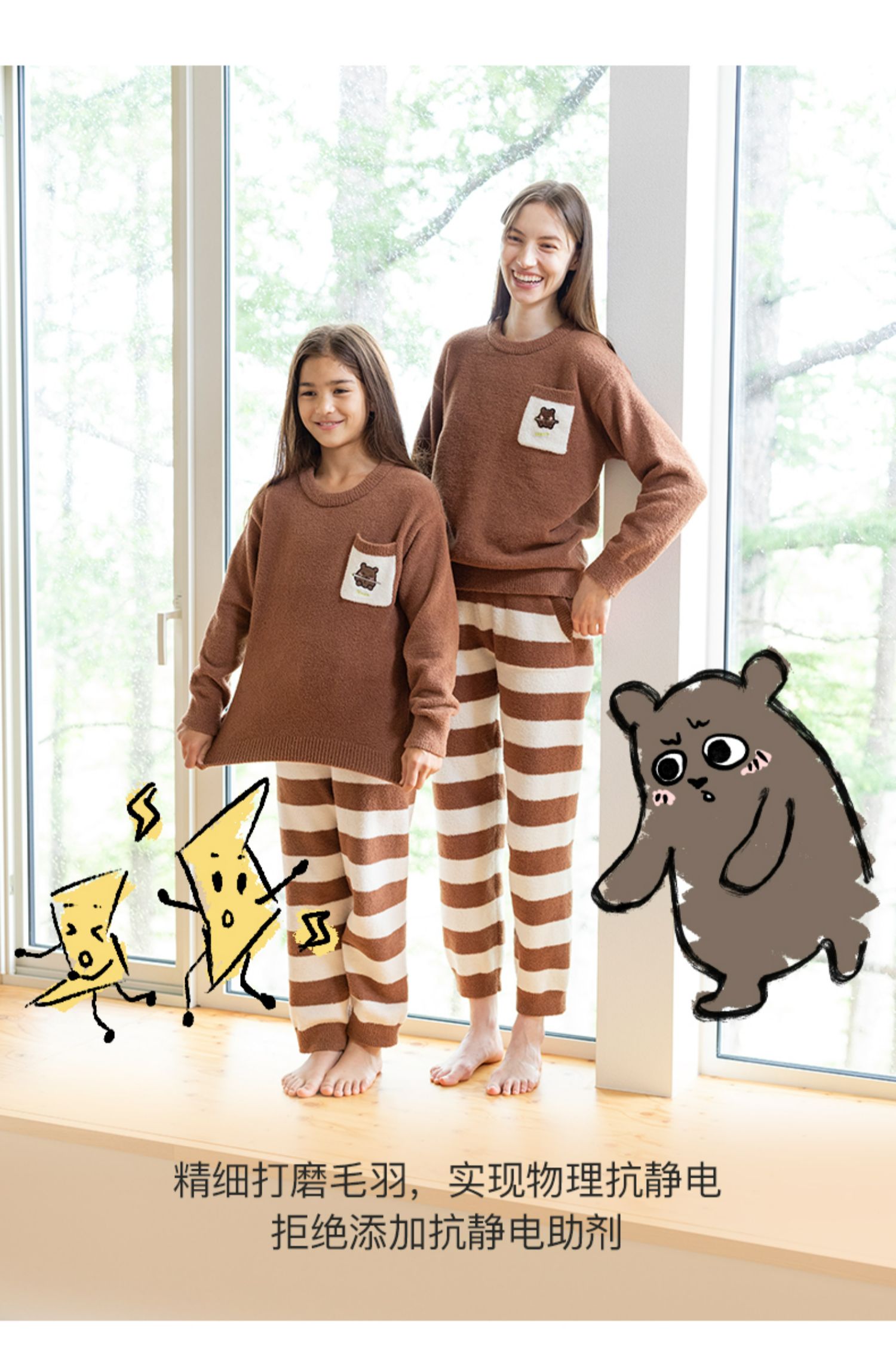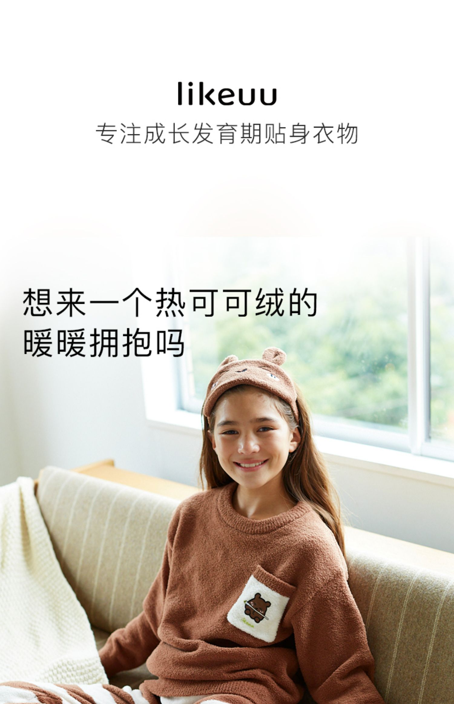 【u粉福利价】likeuu亲子儿童家居服半边绒男女童圆领睡衣珊瑚绒