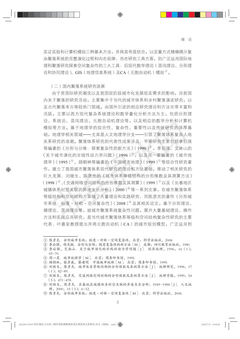明代长城是中国最具代表的世界文化遗产,其宏伟的气势和律动的美感震撼人心。但长城并非人们传统上所理解的狭义的线性防御墙体,而是隶属于更庞大的复杂系统——明长城军事防御体系的组成部分。本书基于分形理论,精确解析明长城军事防御体系核心要素——军事防御聚落和长城墙体——的宏观系统关系,研究发现两者通过分形自组织结构耦合形成复杂的协同系统,基于此实现了资源的高效配置、军队的快速调动以及系统的协同防御等功能;同时,从系统关系角度,进一步探讨了明长城军事防御体系的运行机制和原真价值。