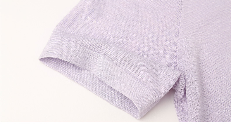轻奢高级感假两件坑条针织衫女 安可拉红撞色 V 领短袖 T 恤 小个子通勤气质上衣