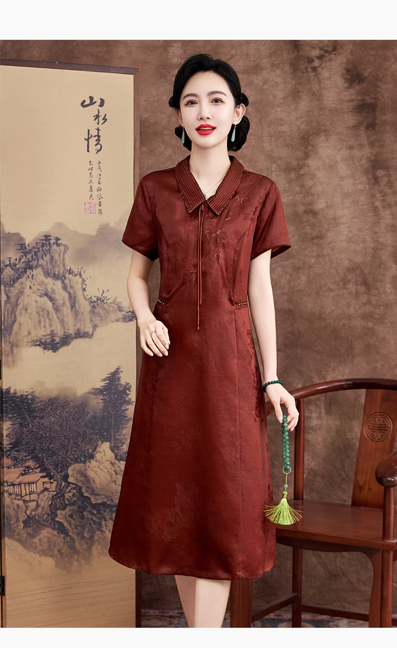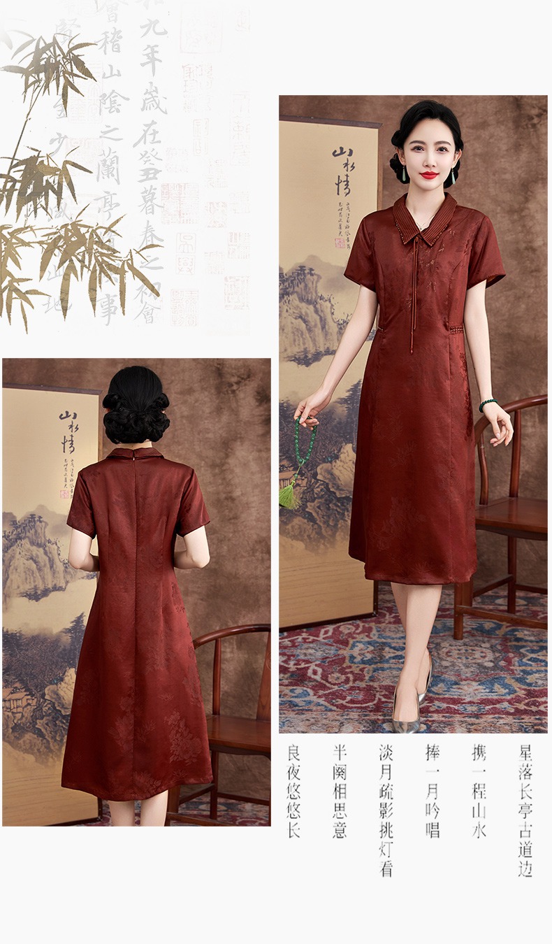 KQ-621627红莨香云纱连衣裙女2025夏季新中式桑蚕丝复古真丝裙子