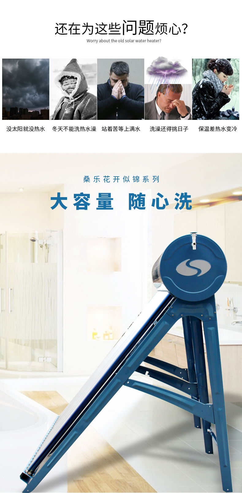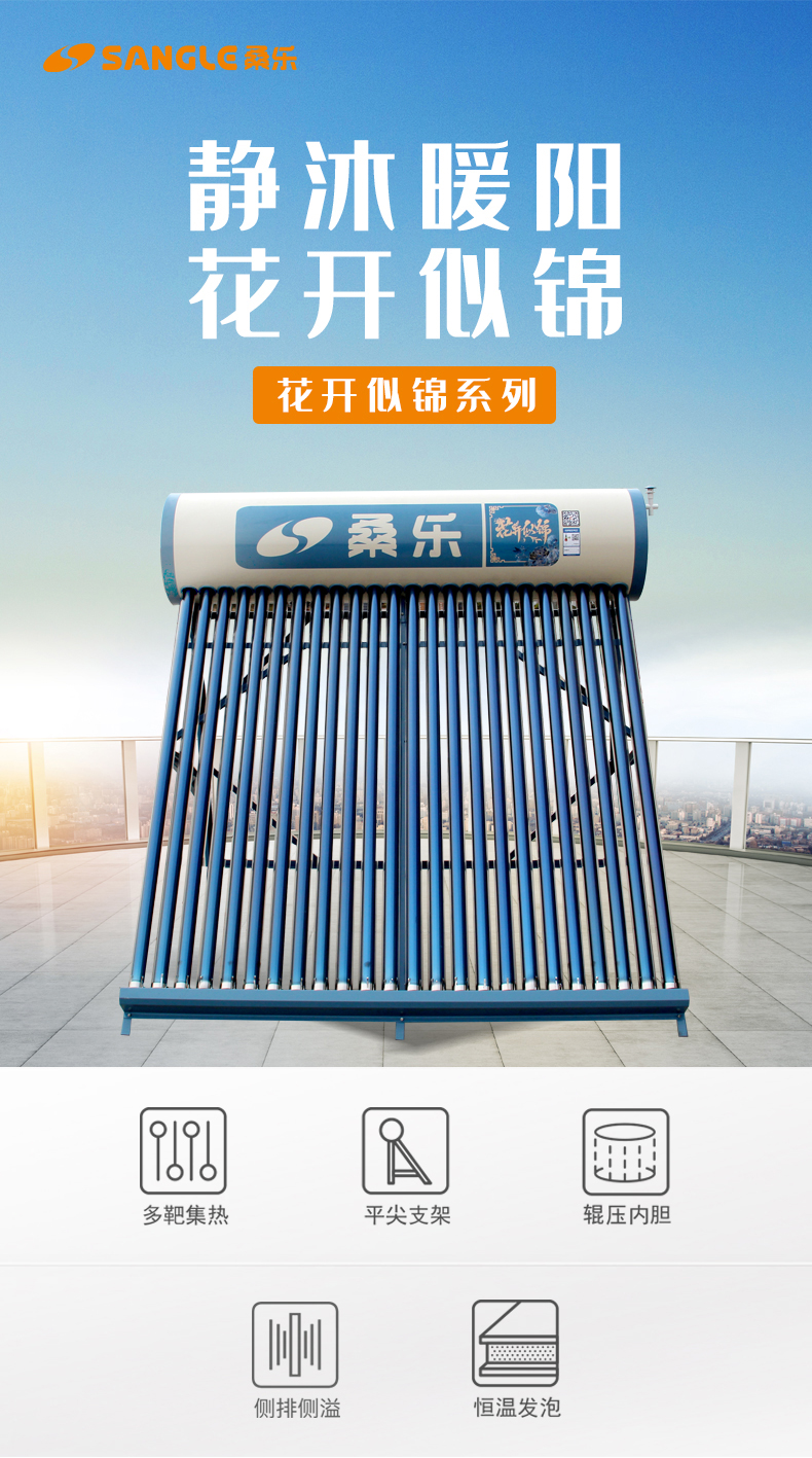 桑乐(SANGLE)太阳能热水器家用 花开似锦 一体辊压成型专利技术 多靶高效集热