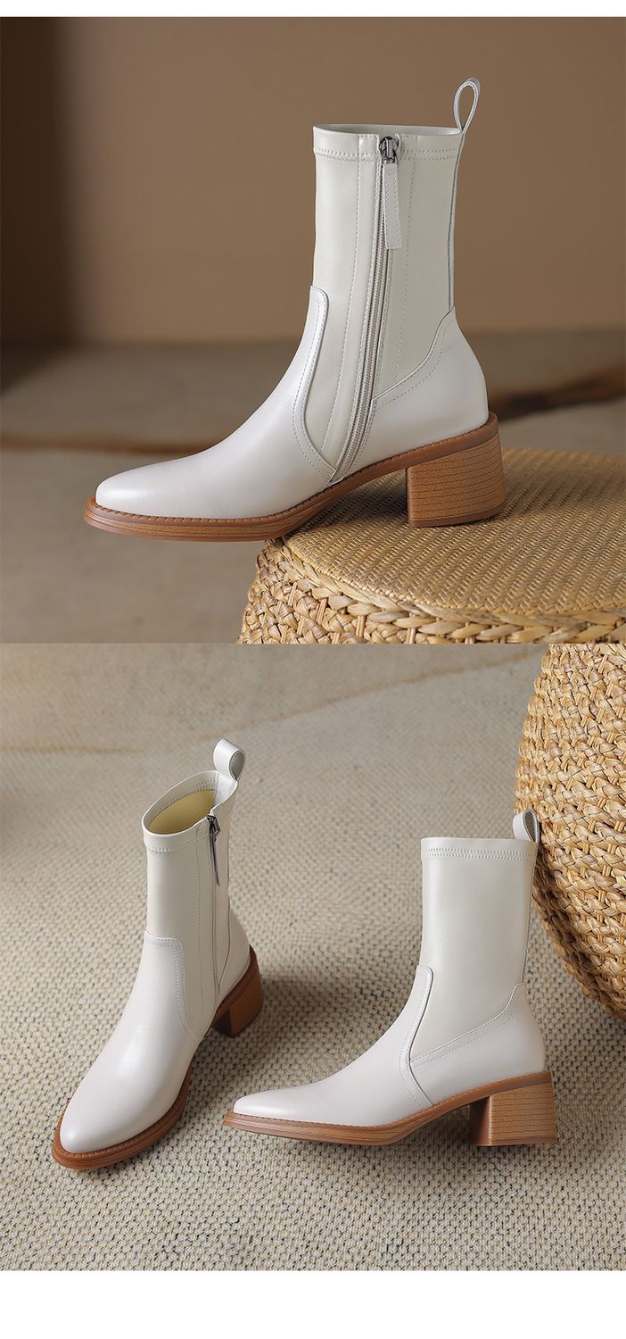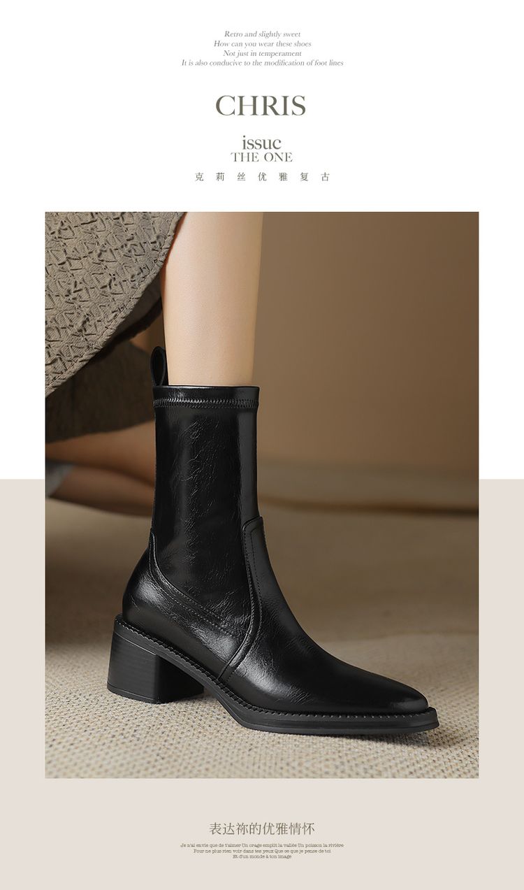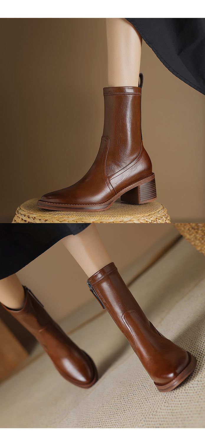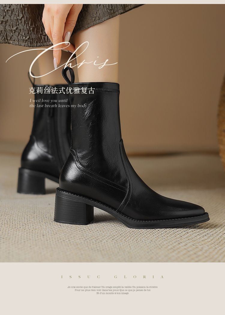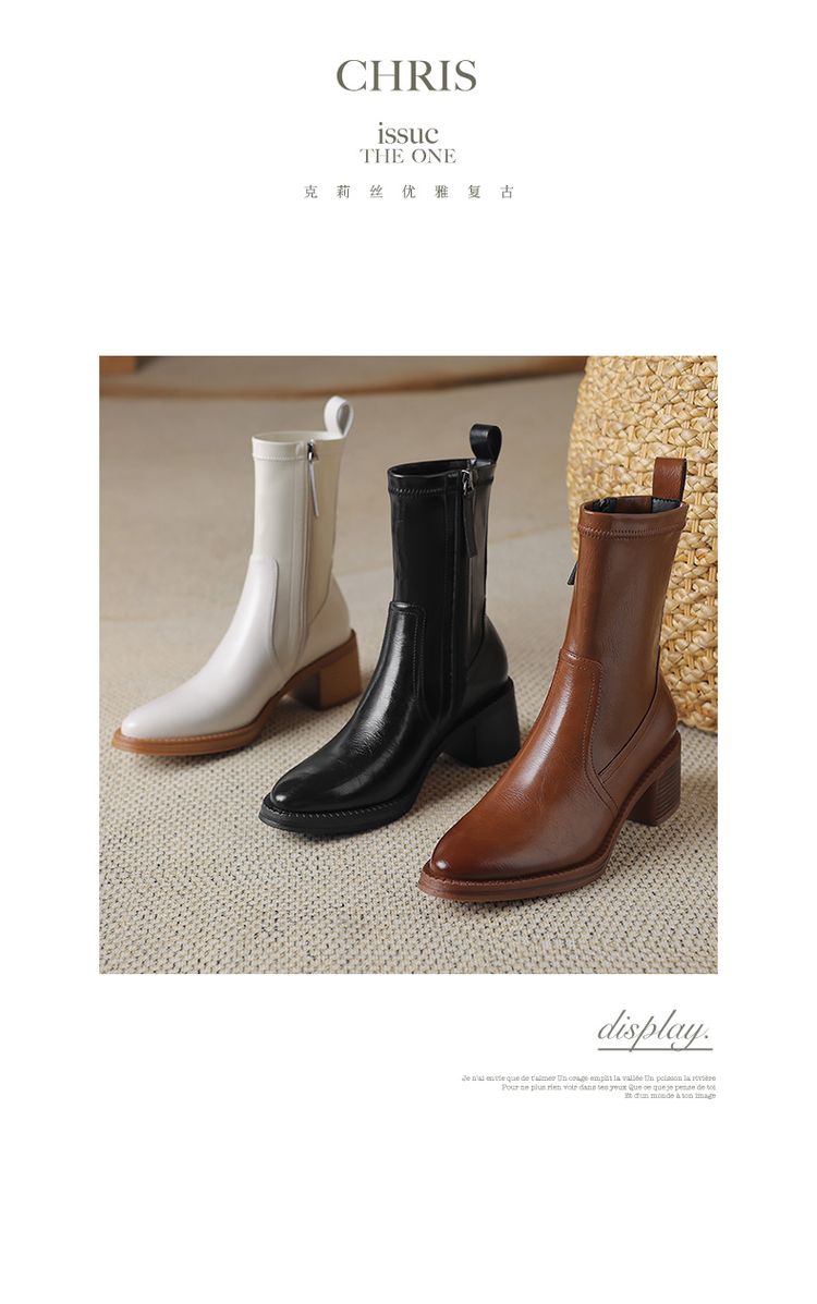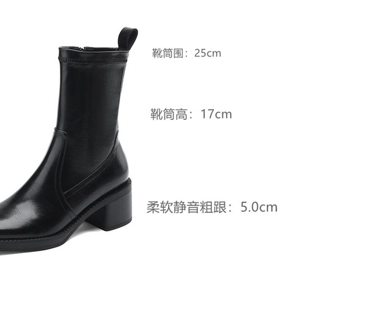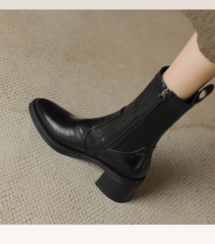 【预售5天】法式复古真皮圆头粗跟短靴女秋冬季新款中跟马丁靴高跟瘦瘦靴DTN&D906-13