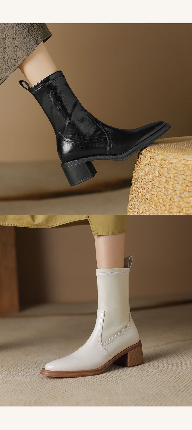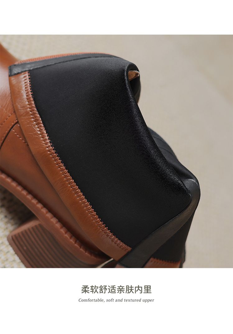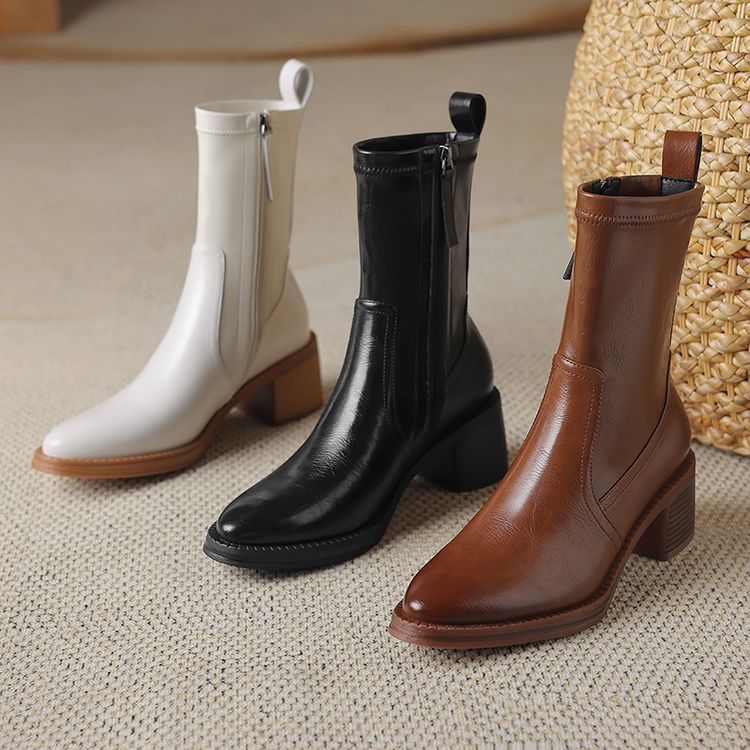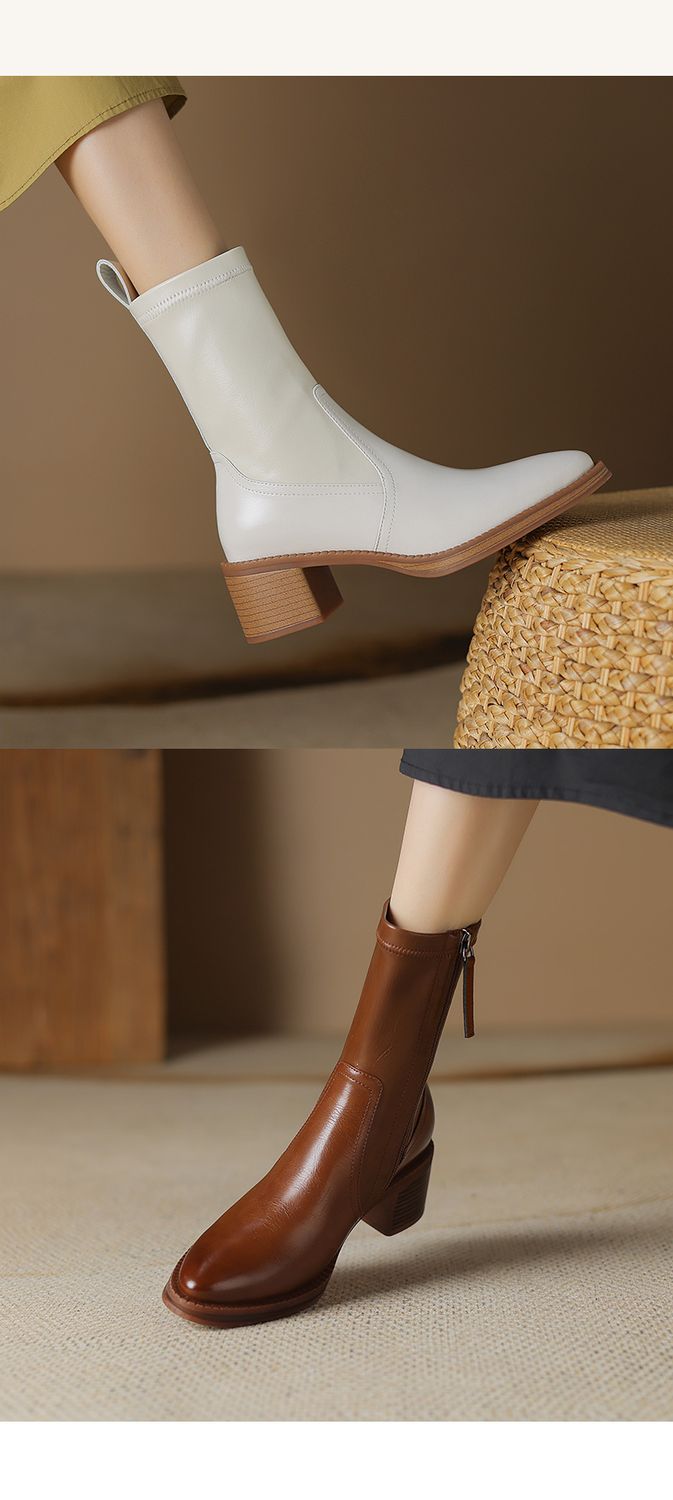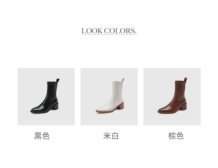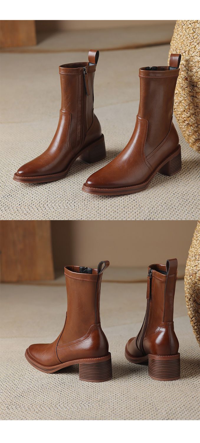 【预售5天】法式复古真皮圆头粗跟短靴女秋冬季新款中跟马丁靴高跟瘦瘦靴DTN&D906-13