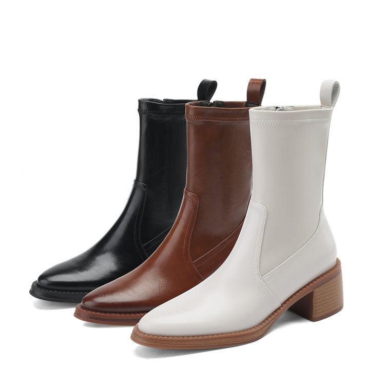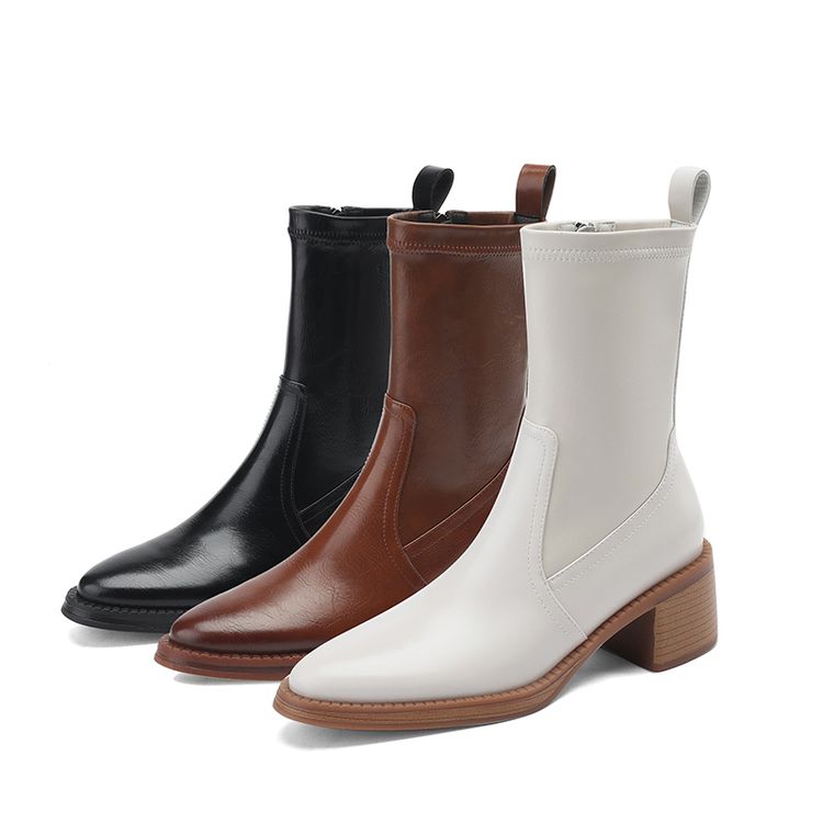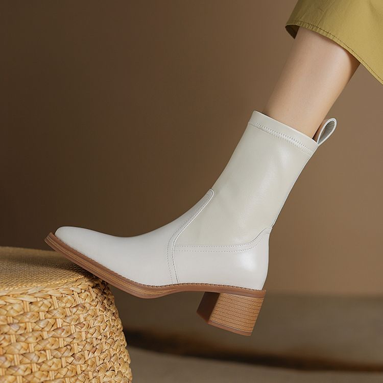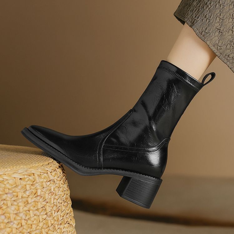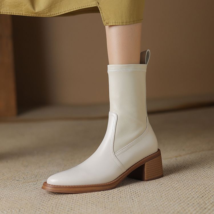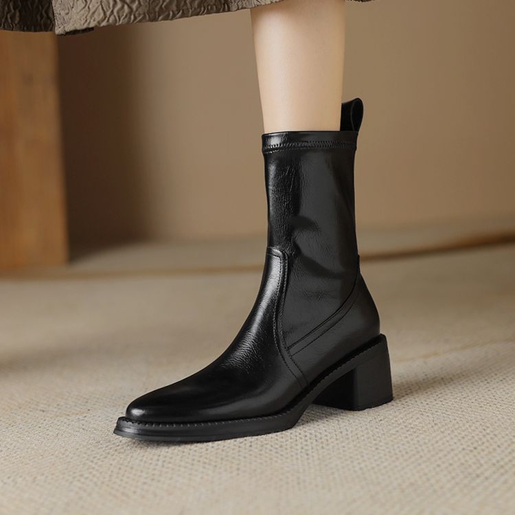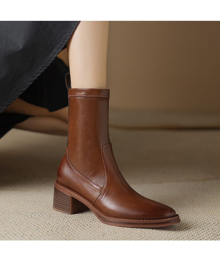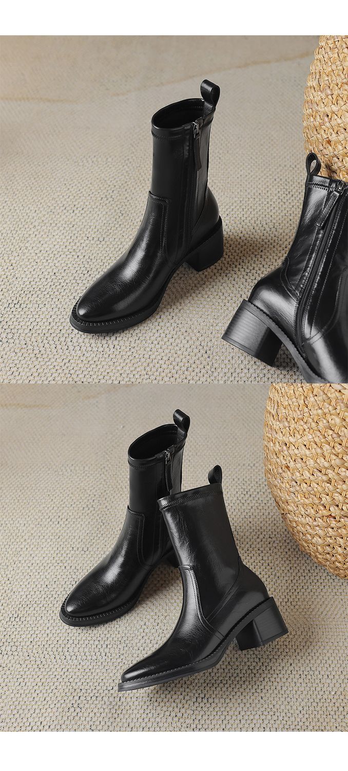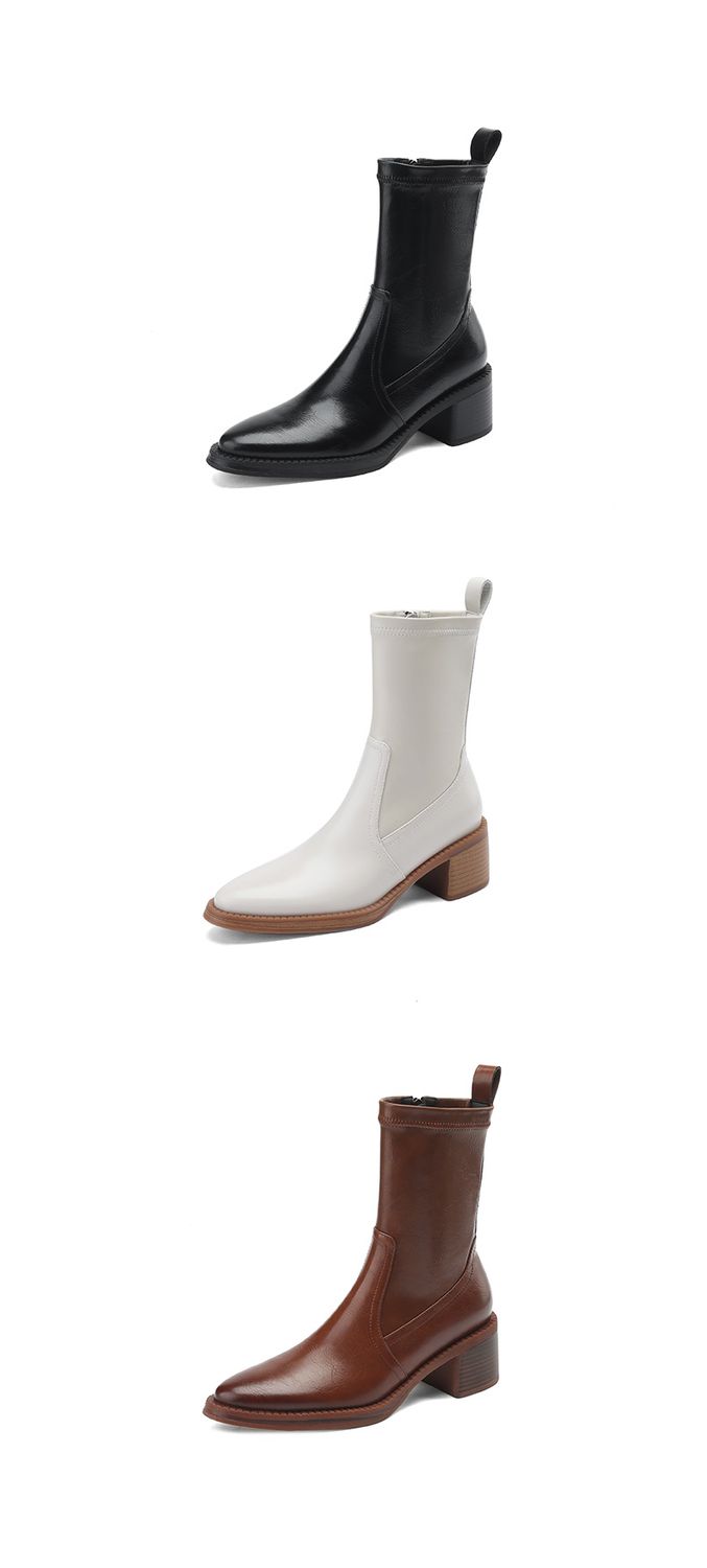 【预售5天】法式复古真皮圆头粗跟短靴女秋冬季新款中跟马丁靴高跟瘦瘦靴DTN&D906-13