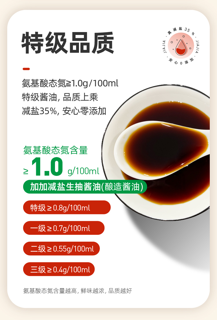【开团】测评优品-加加减盐特级生抽 酿造酱油 原料简单 无碘盐 没有添加防腐剂、甜味剂、味精 自然发酵 氨基酸态氮优于国标