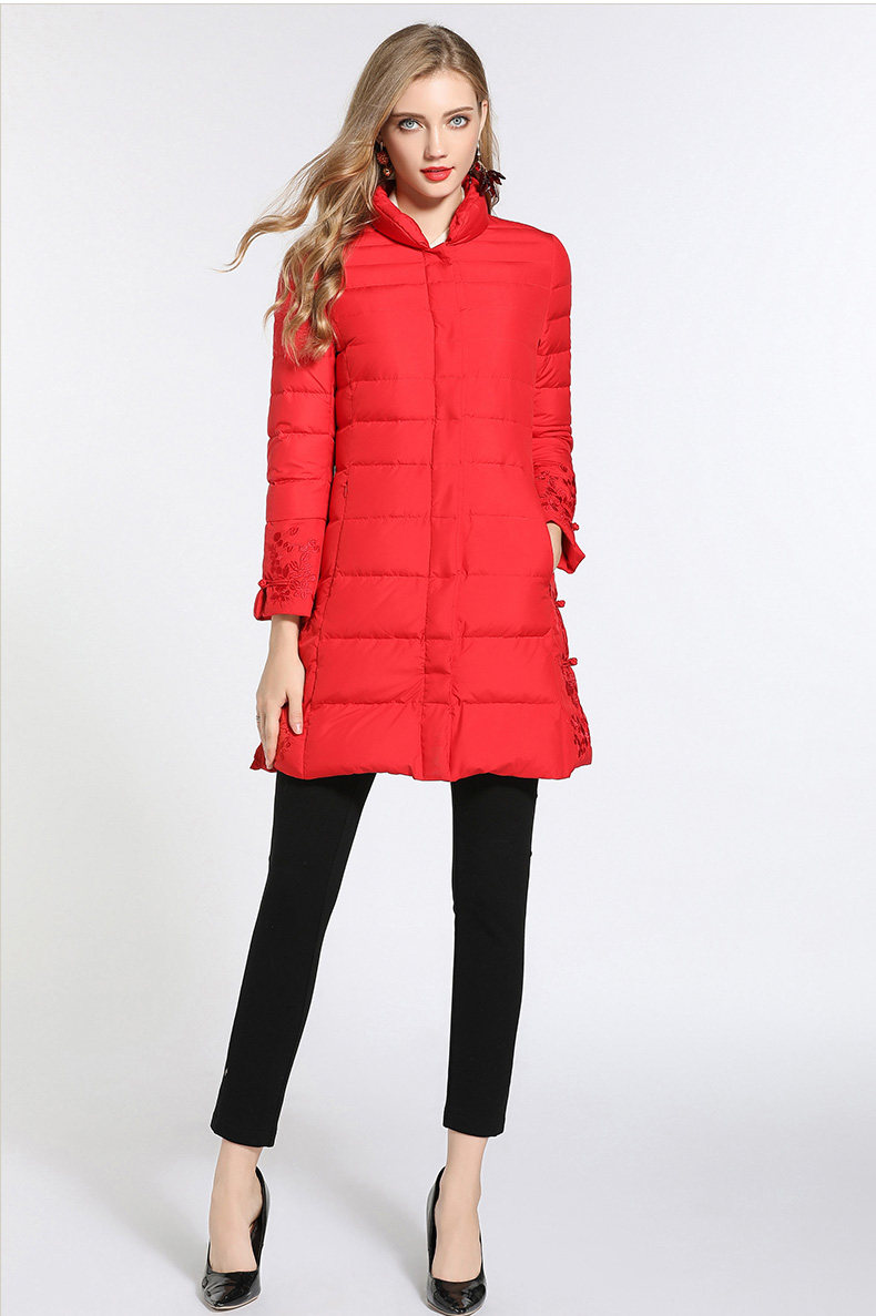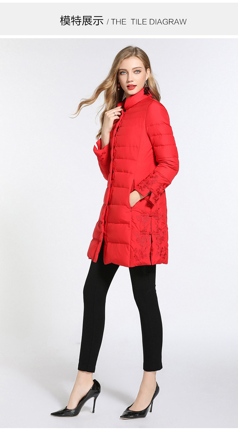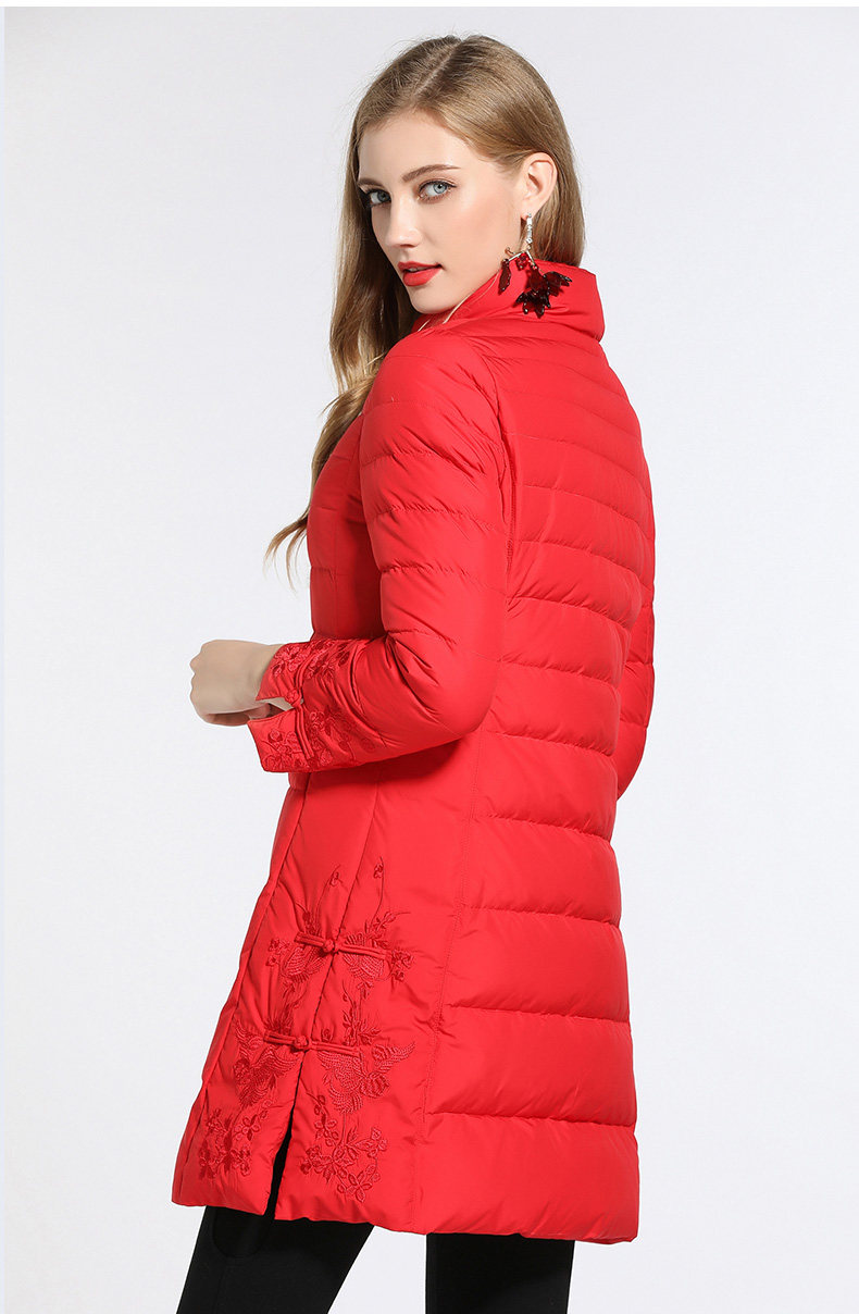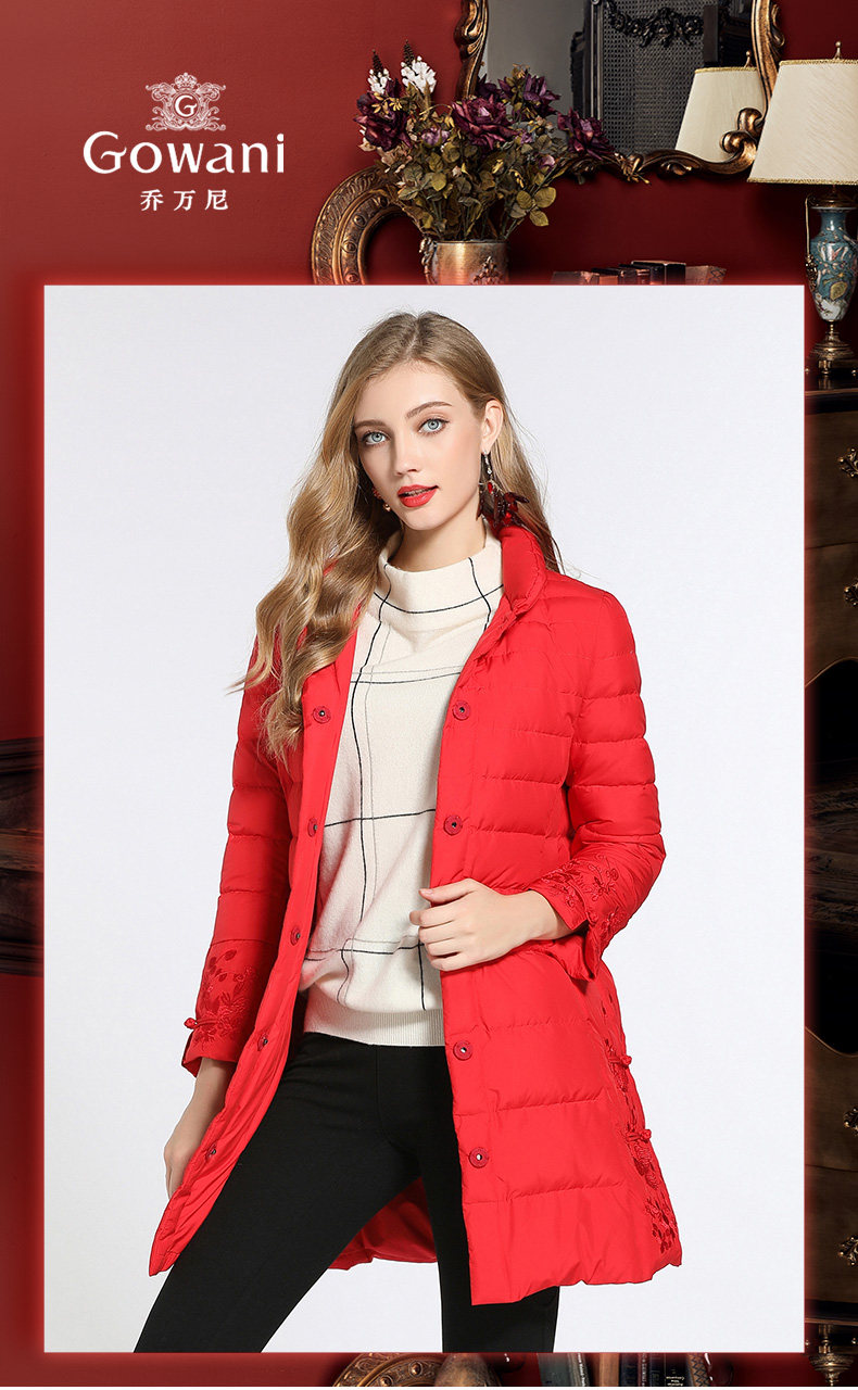 乔万尼羽绒服女新款红色修身中式复古绣花保暖小个子中长款EB4T075