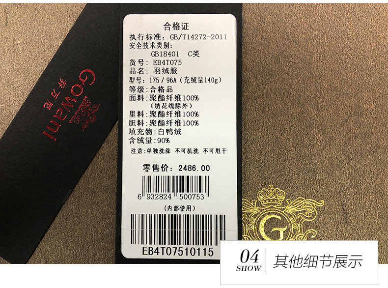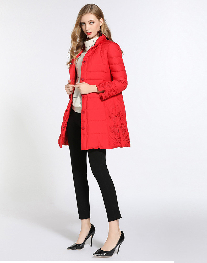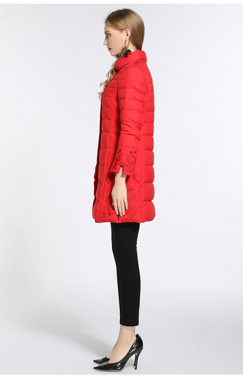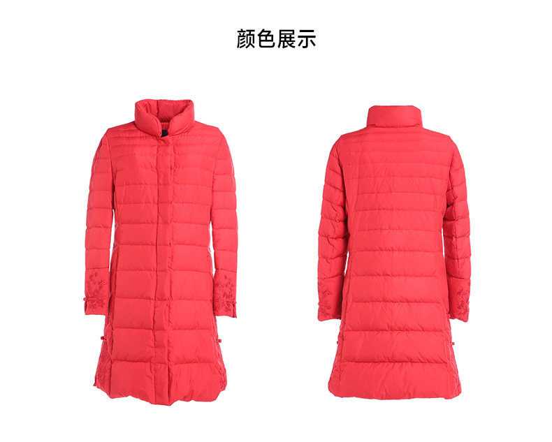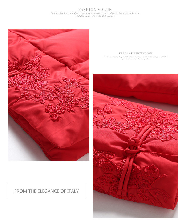 乔万尼羽绒服女新款红色修身中式复古绣花保暖小个子中长款EB4T075