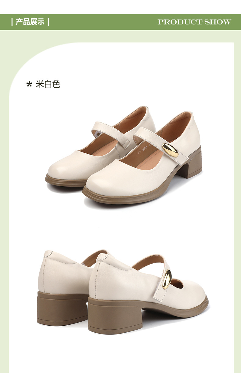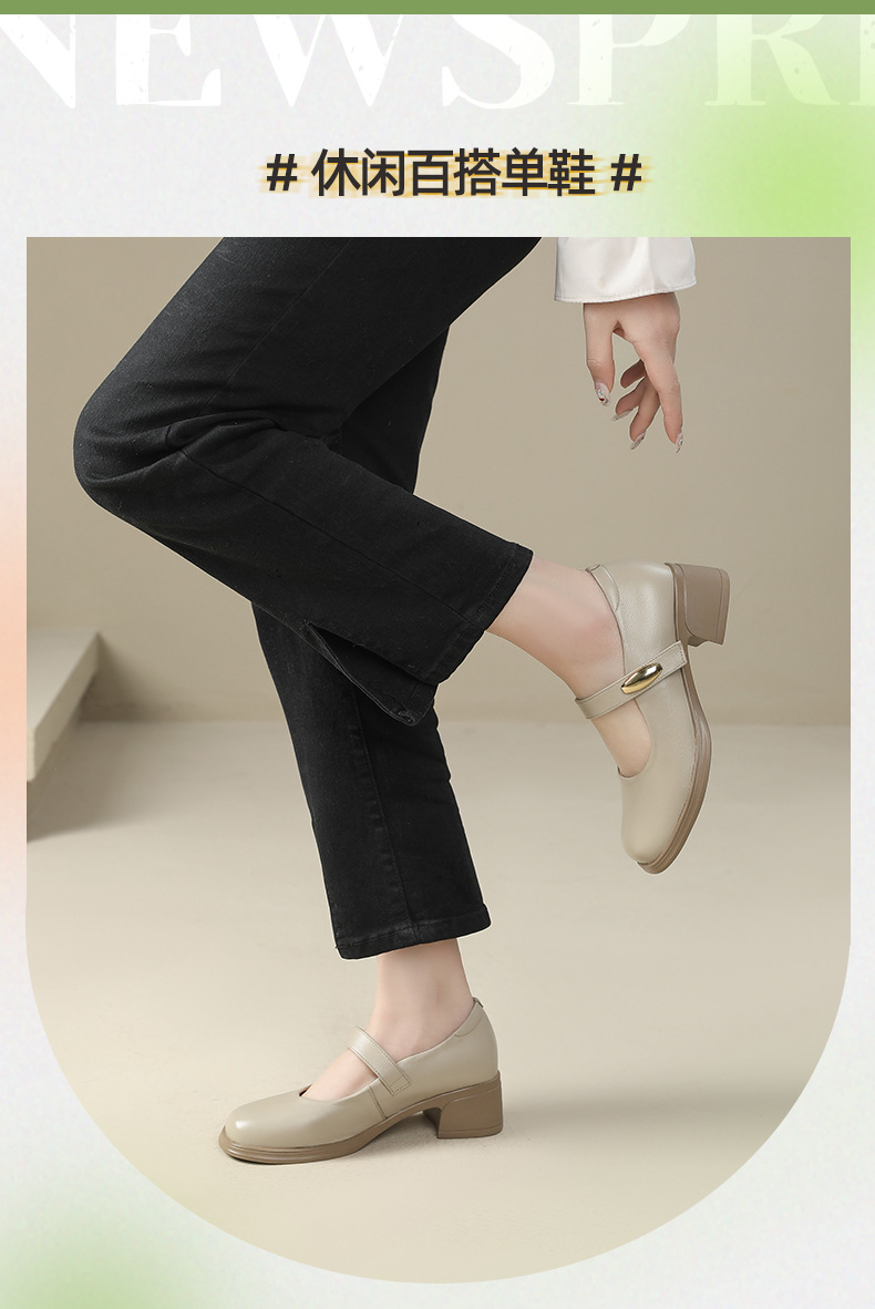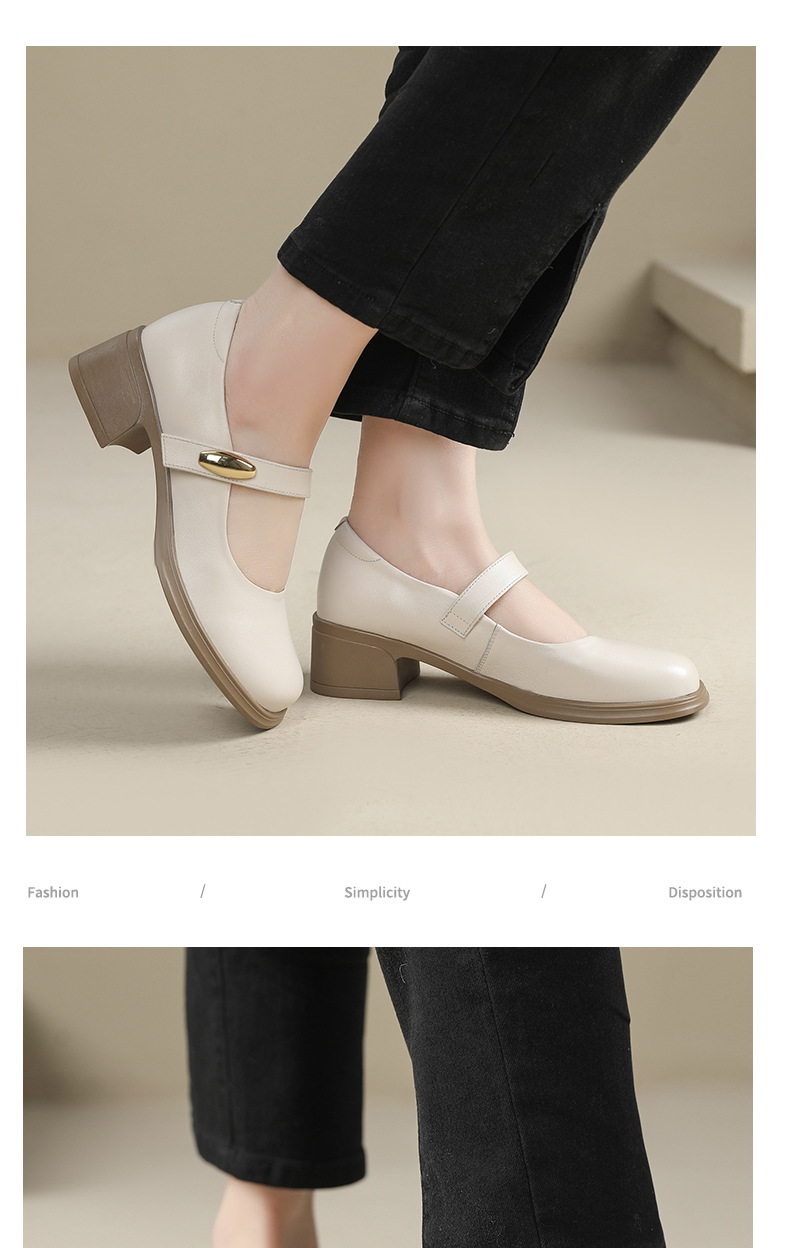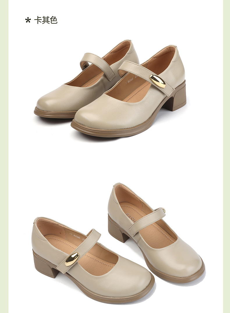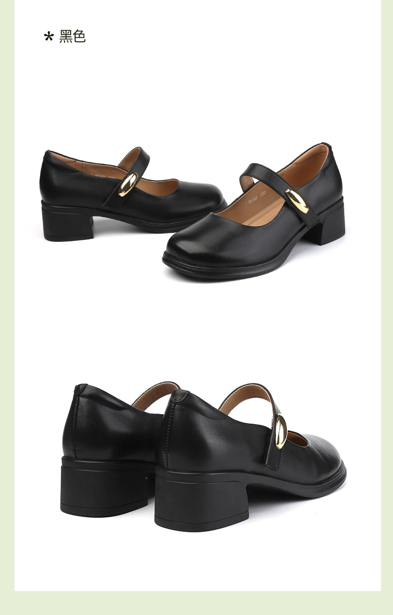 丁摩 春秋头层牛皮方头皮带扣中跟鞋女真皮粗跟软底复古玛丽珍单鞋5ZF-86560