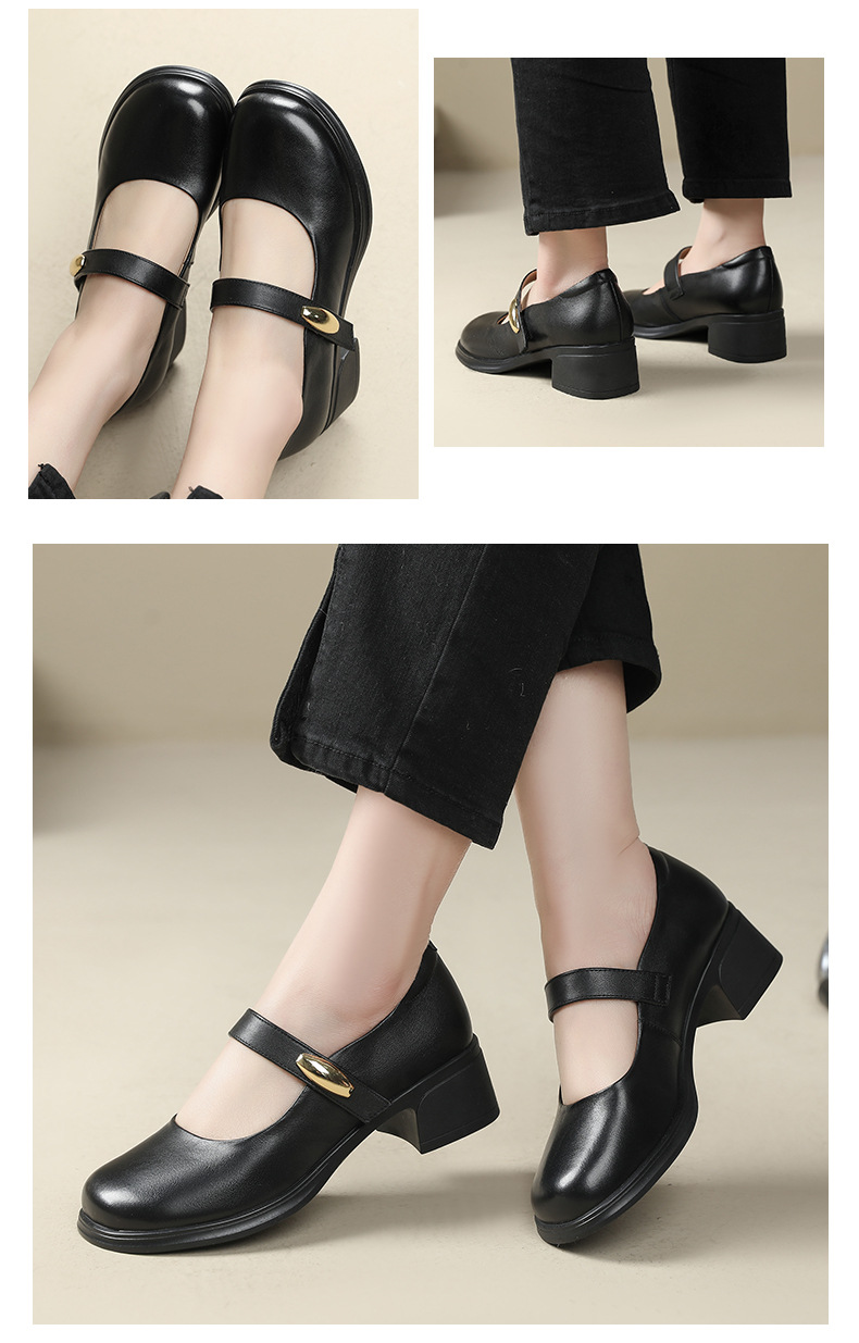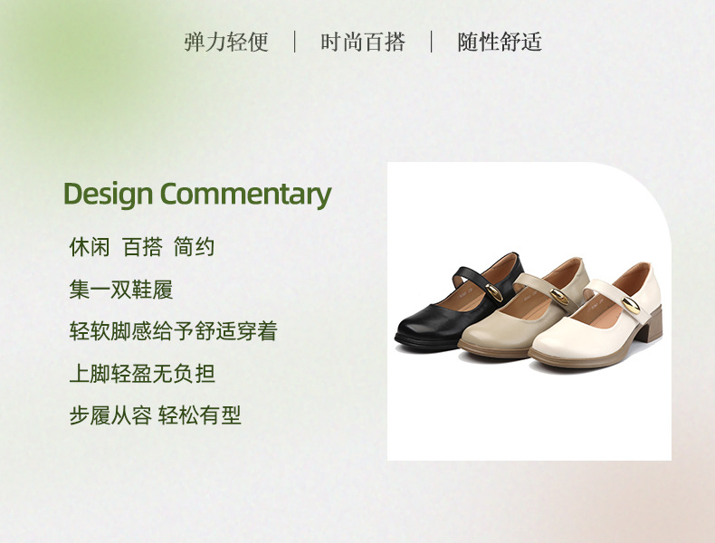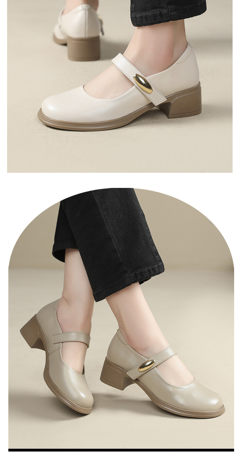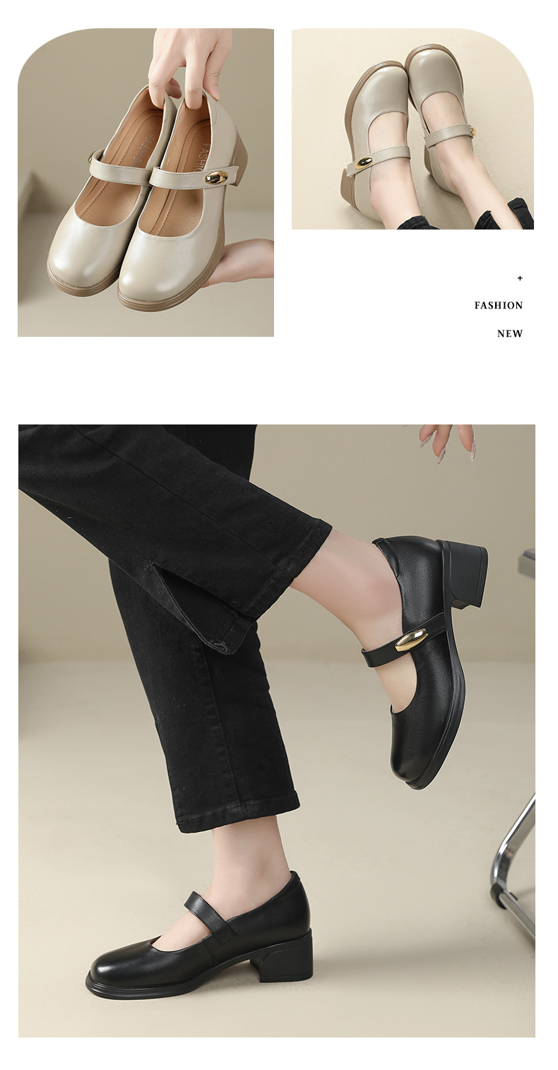 丁摩 春秋头层牛皮方头皮带扣中跟鞋女真皮粗跟软底复古玛丽珍单鞋5ZF-86560
