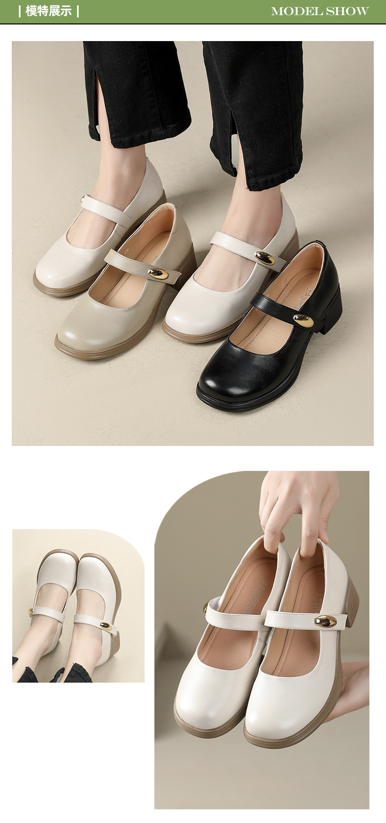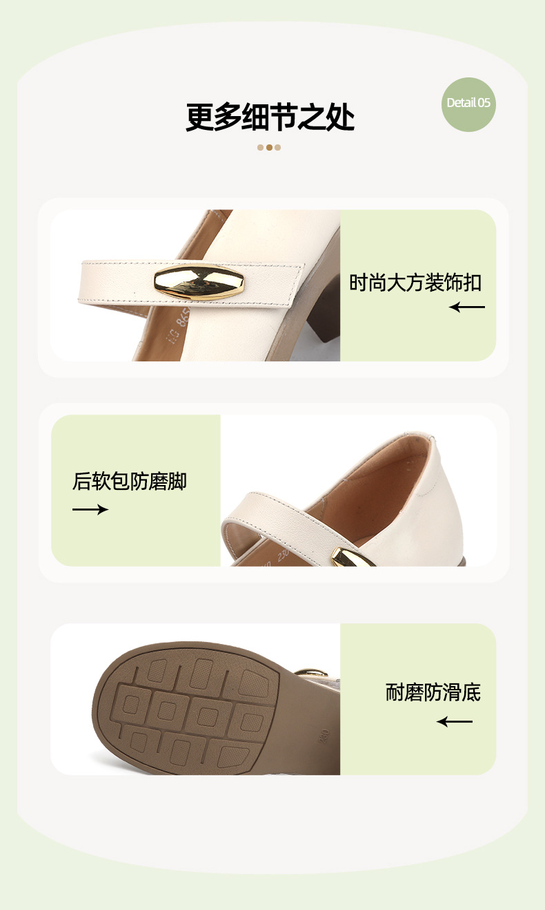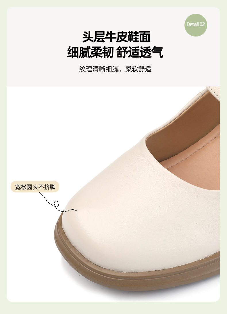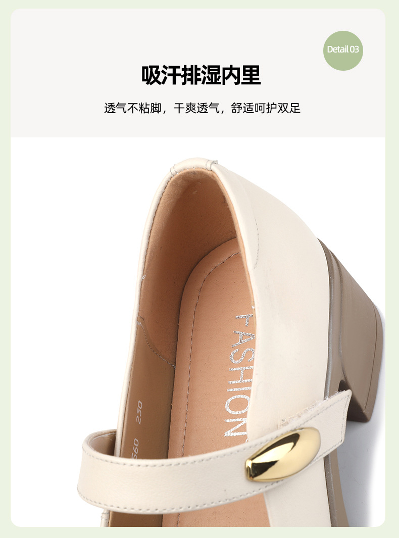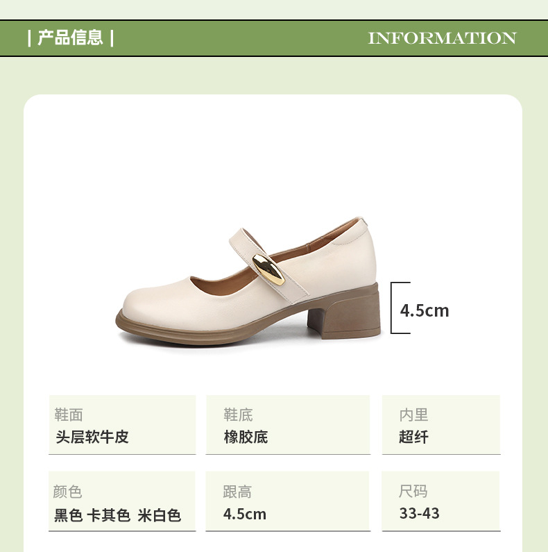 丁摩 春秋头层牛皮方头皮带扣中跟鞋女真皮粗跟软底复古玛丽珍单鞋5ZF-86560