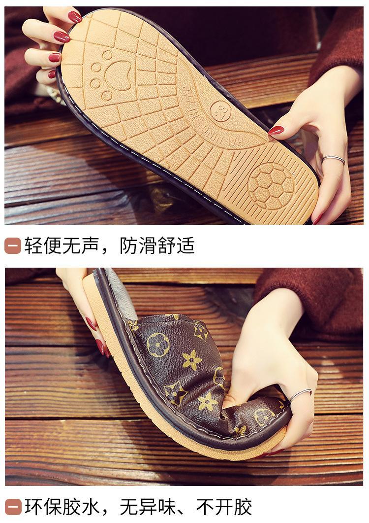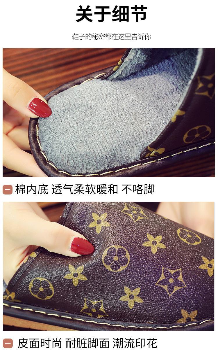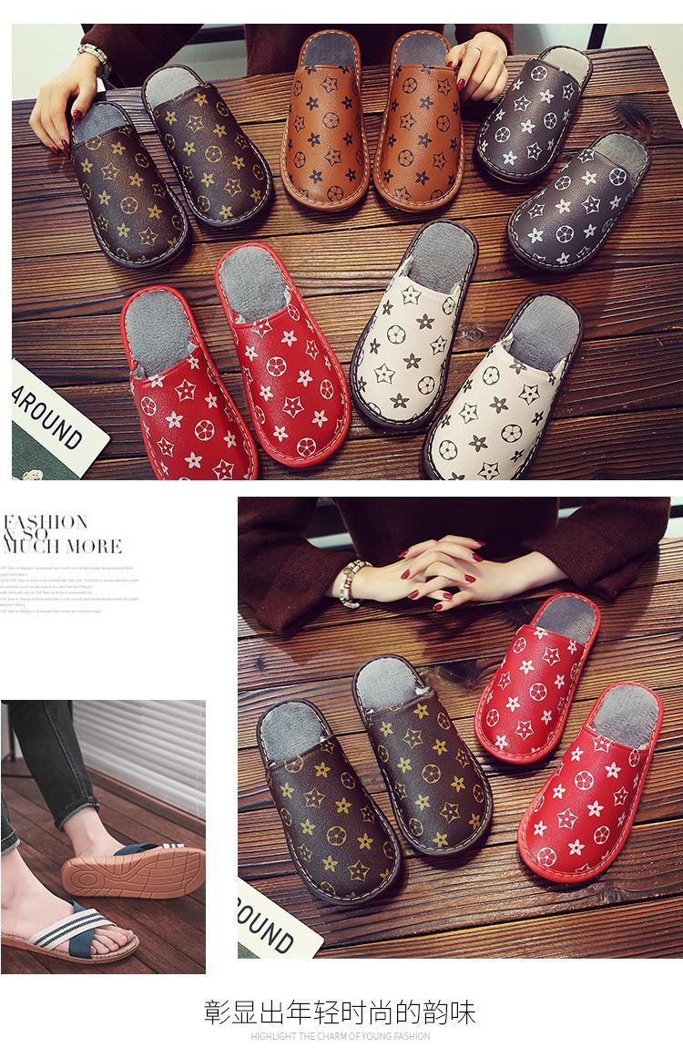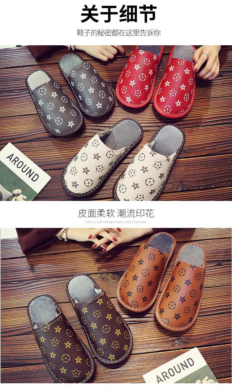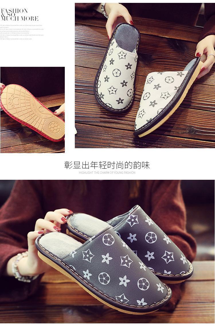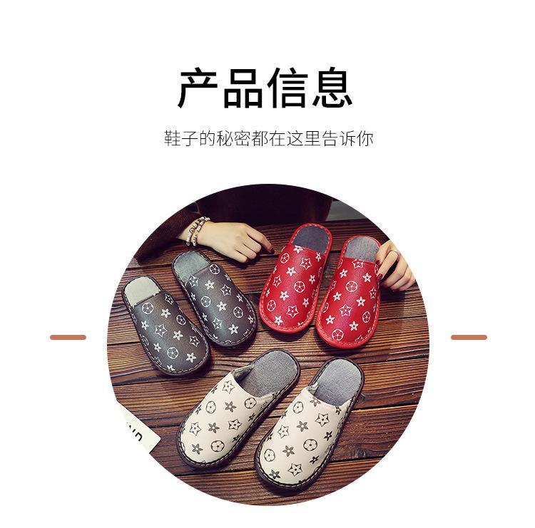 雀说 海宁皮面拖鞋冬季居家居男女地板拖鞋