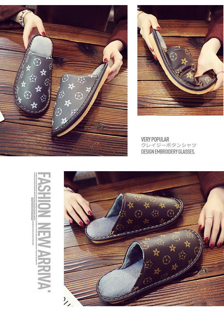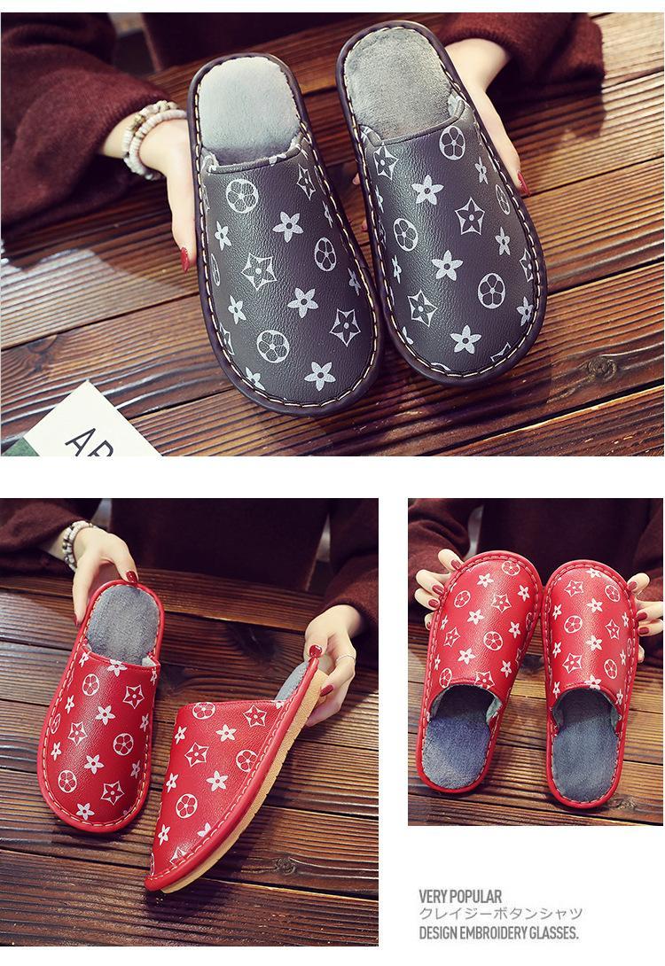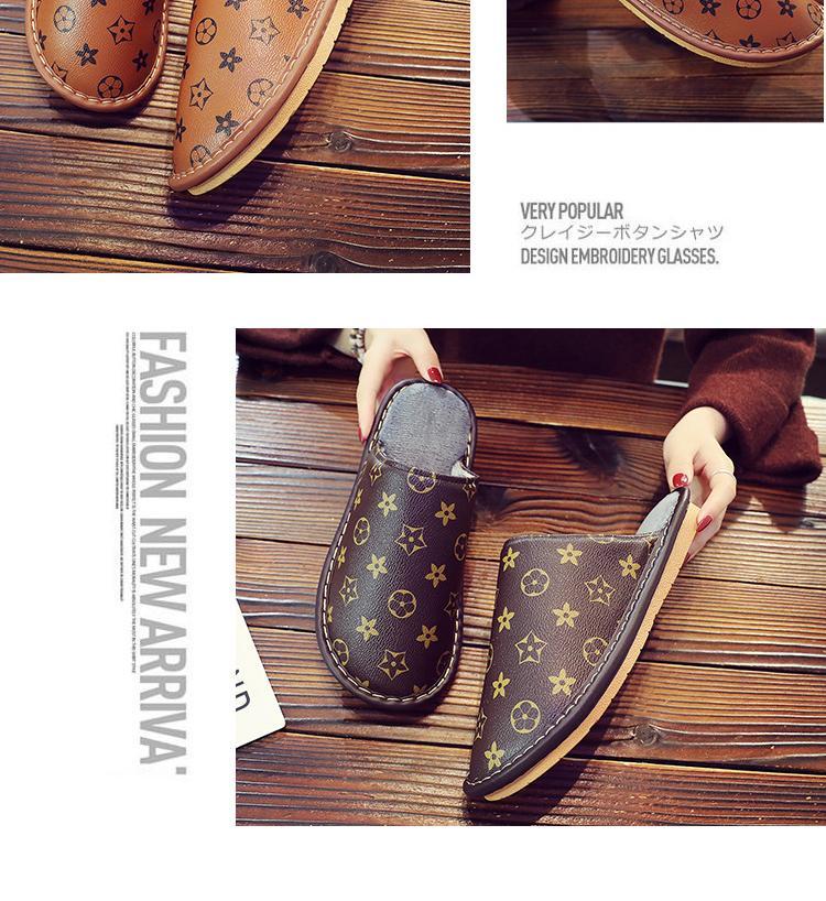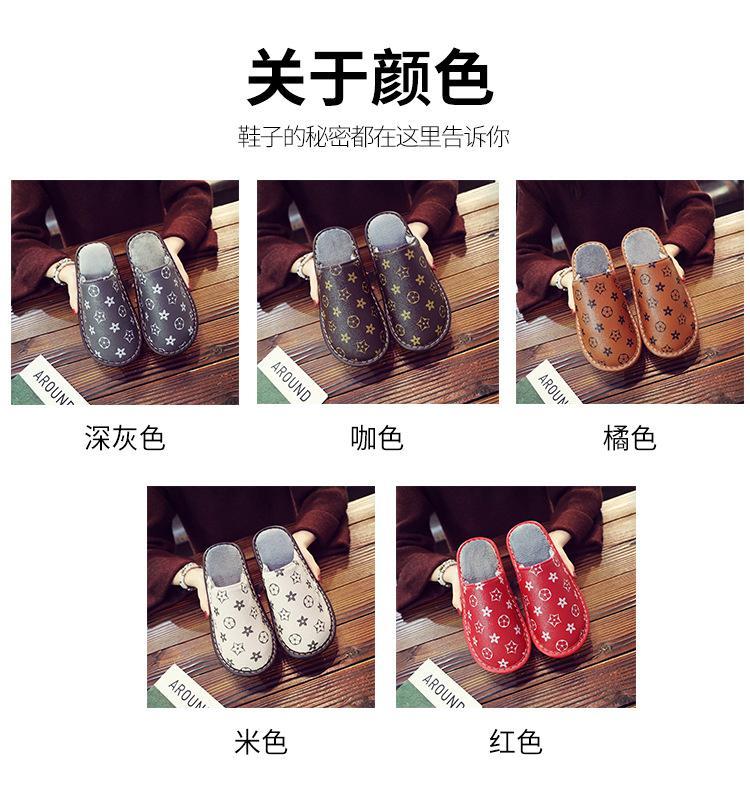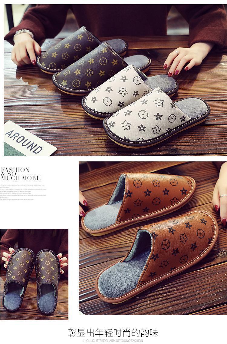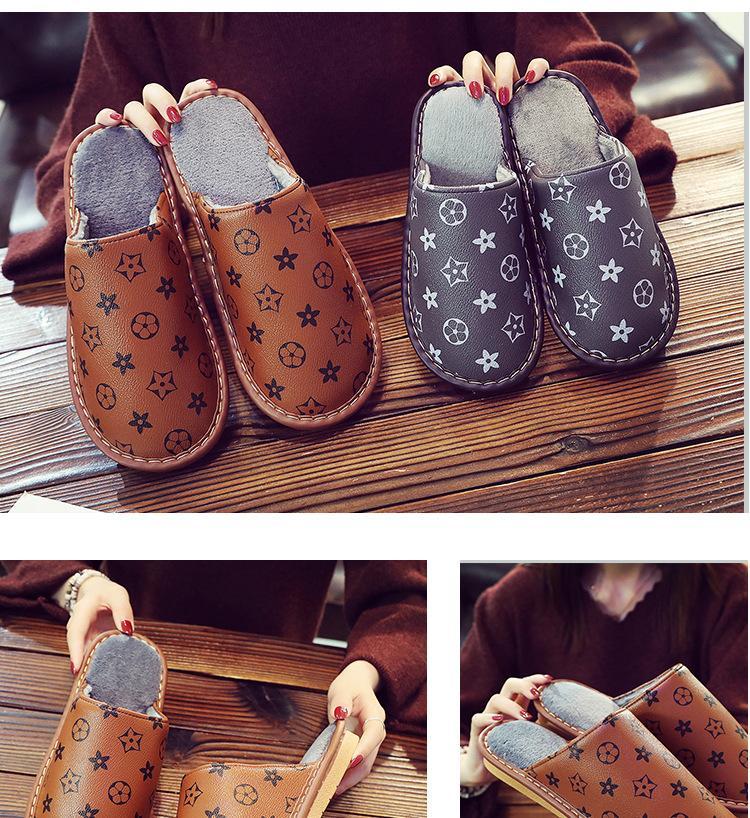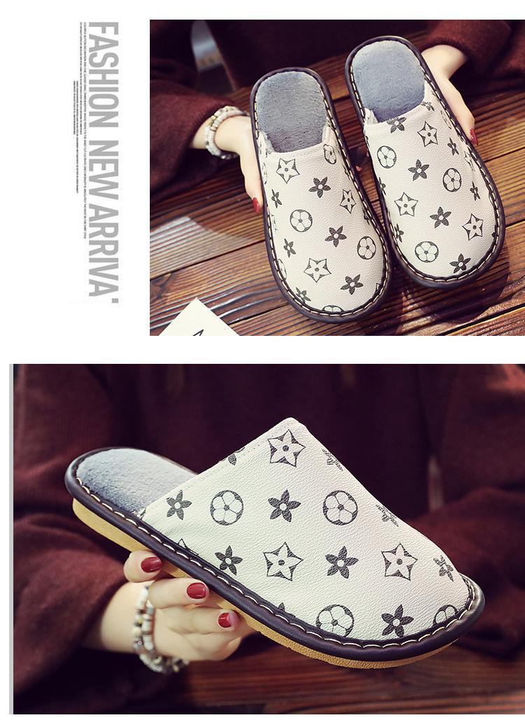 雀说 海宁皮面拖鞋冬季居家居男女地板拖鞋