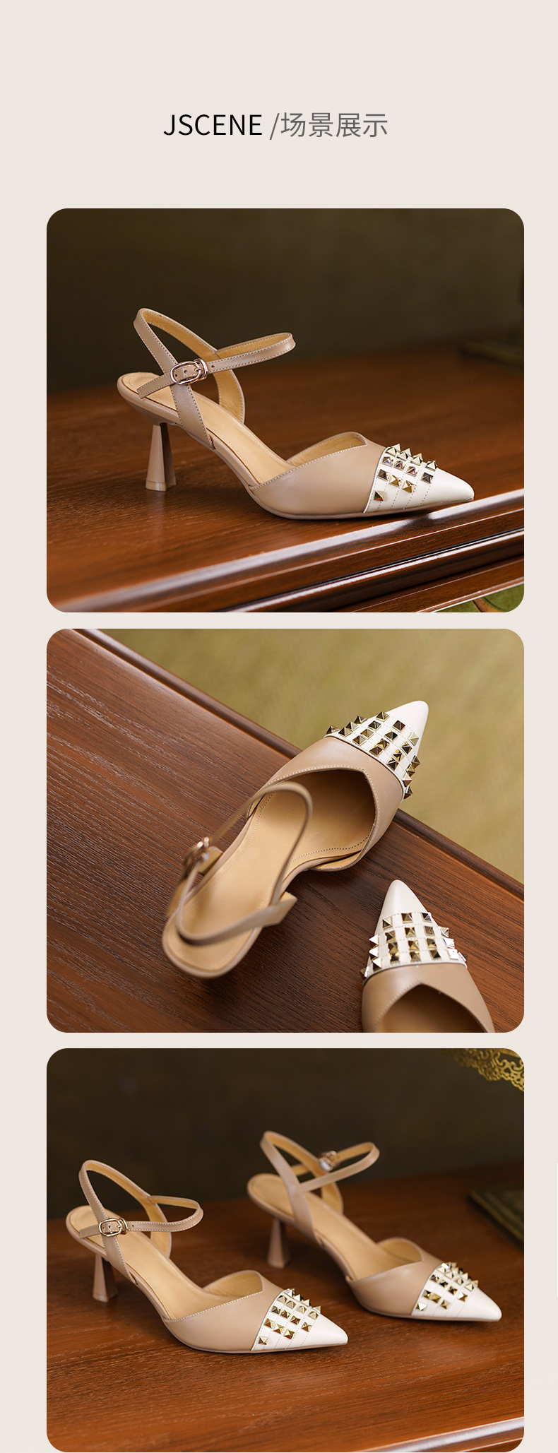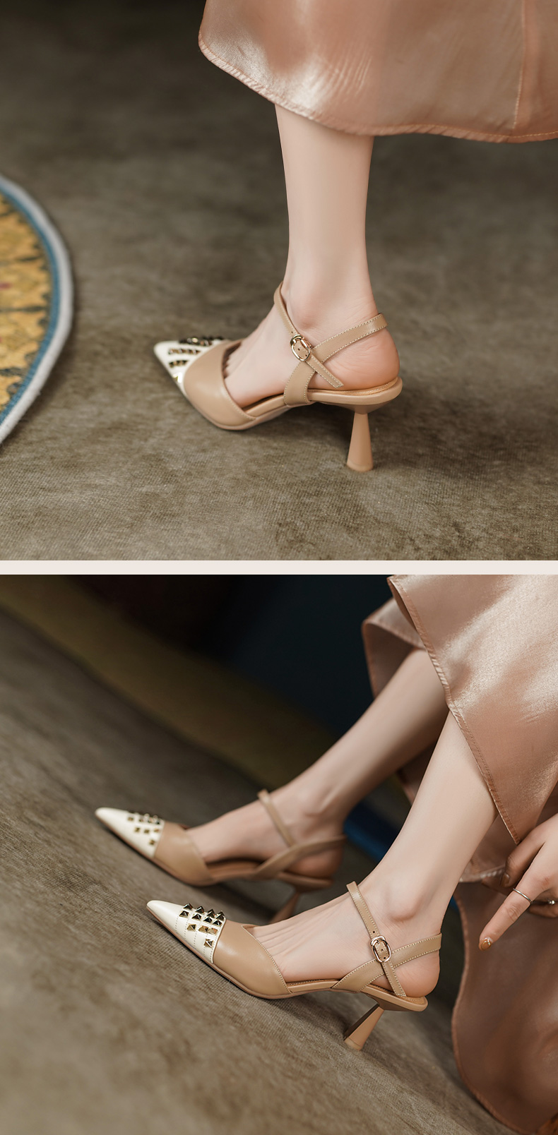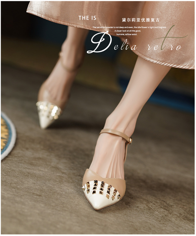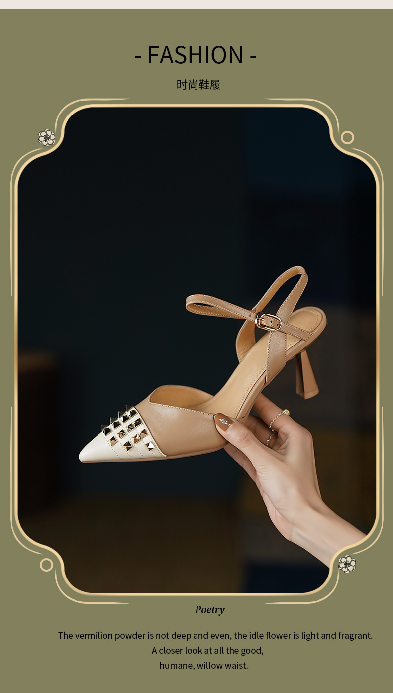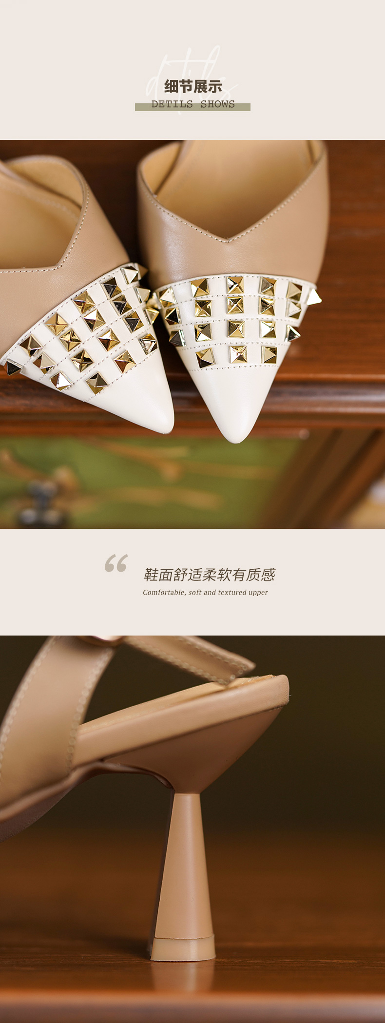优雅简约,里外全皮高质感铆钉复古包头凉鞋SLK-H319