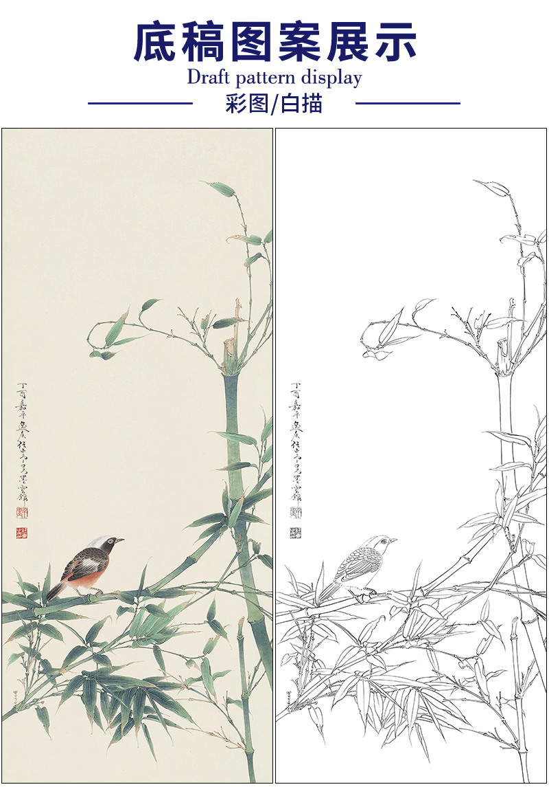 任重花鸟工笔画白描底稿《竹林小鸟》临摹勾线高清打印稿RD32
