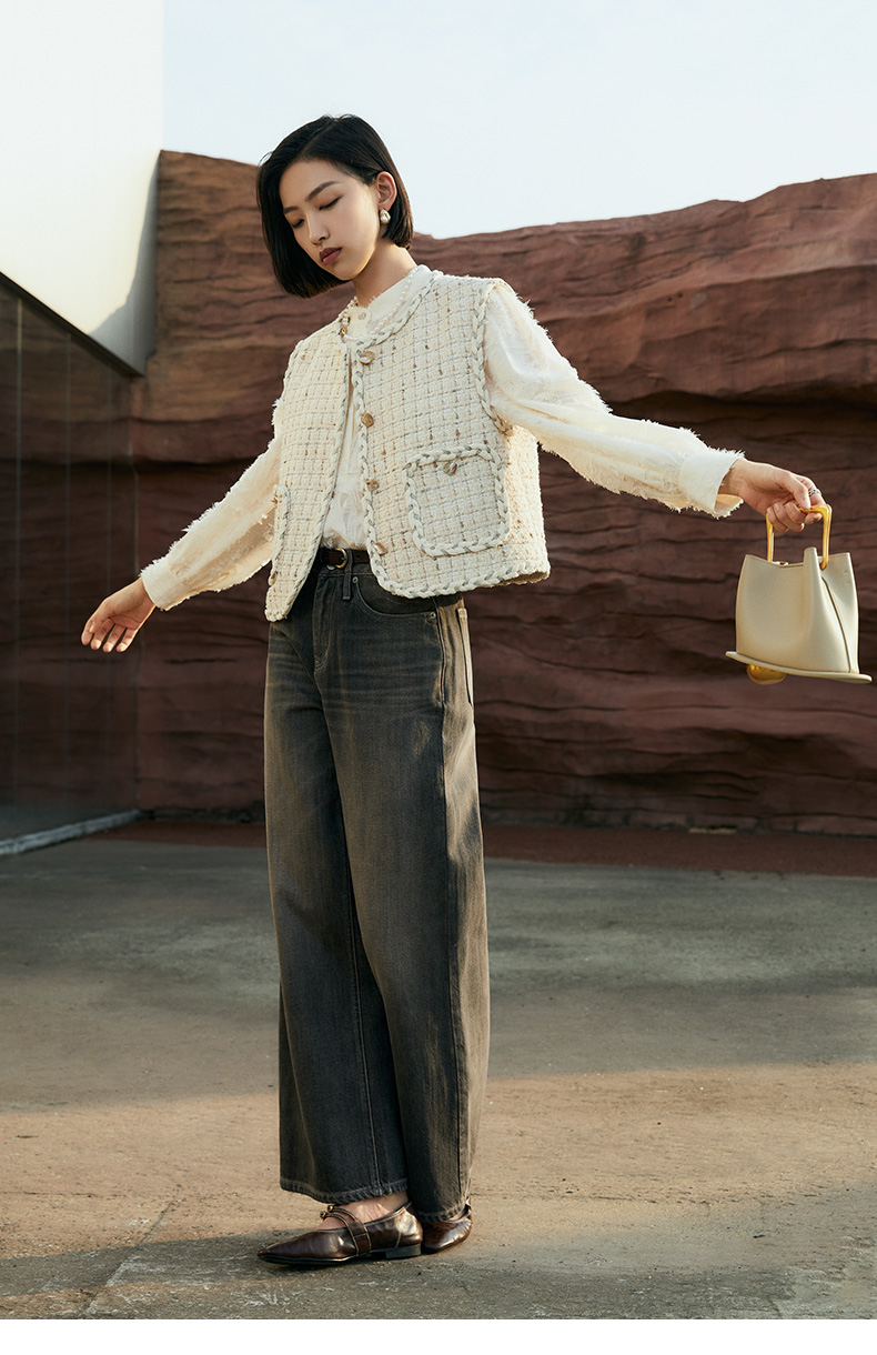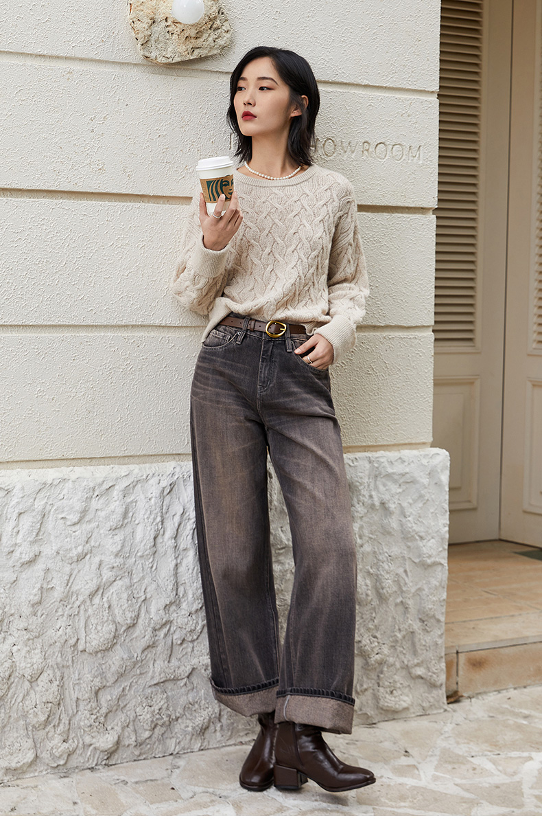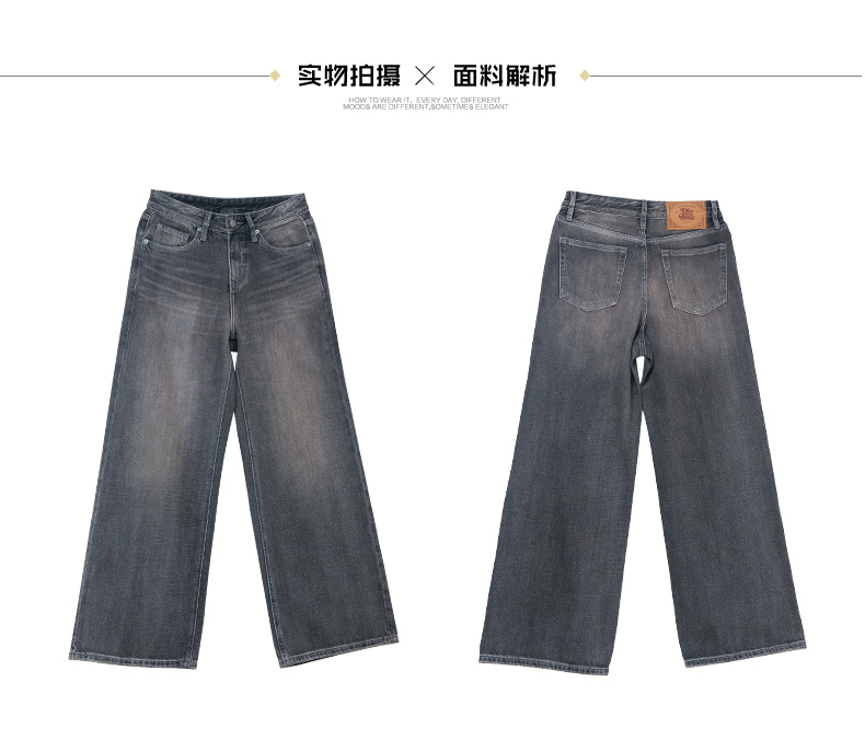 复古做旧灰色阔腿牛仔裤女秋季高腰显瘦宽松直筒垂感拖地长裤子