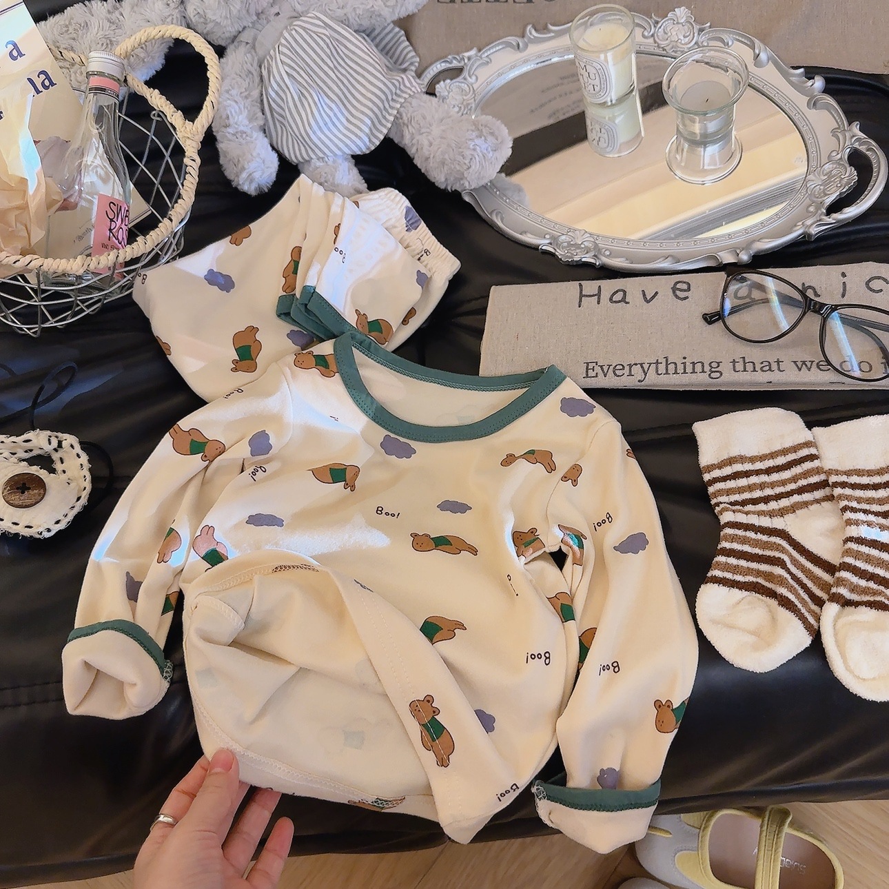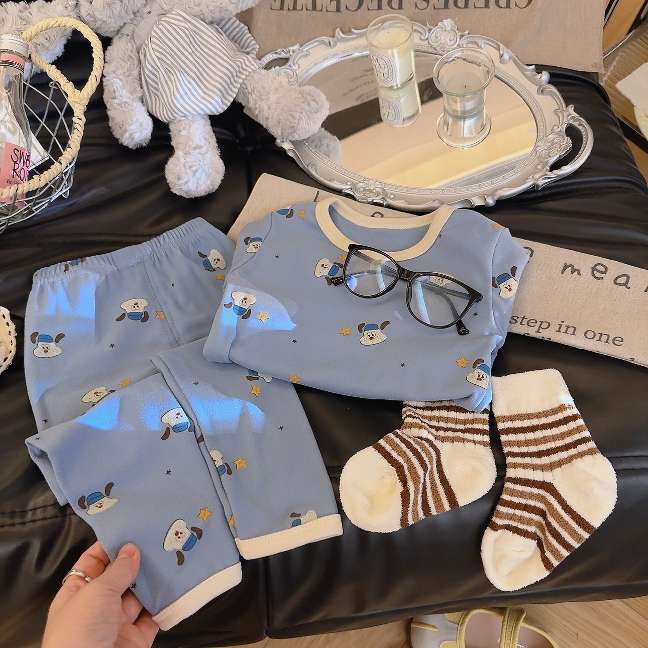 【柔软舒适!卡通图案】新款男女童宝宝秋衣秋裤儿童韩版休闲卡通德绒家居服睡衣套装。rb