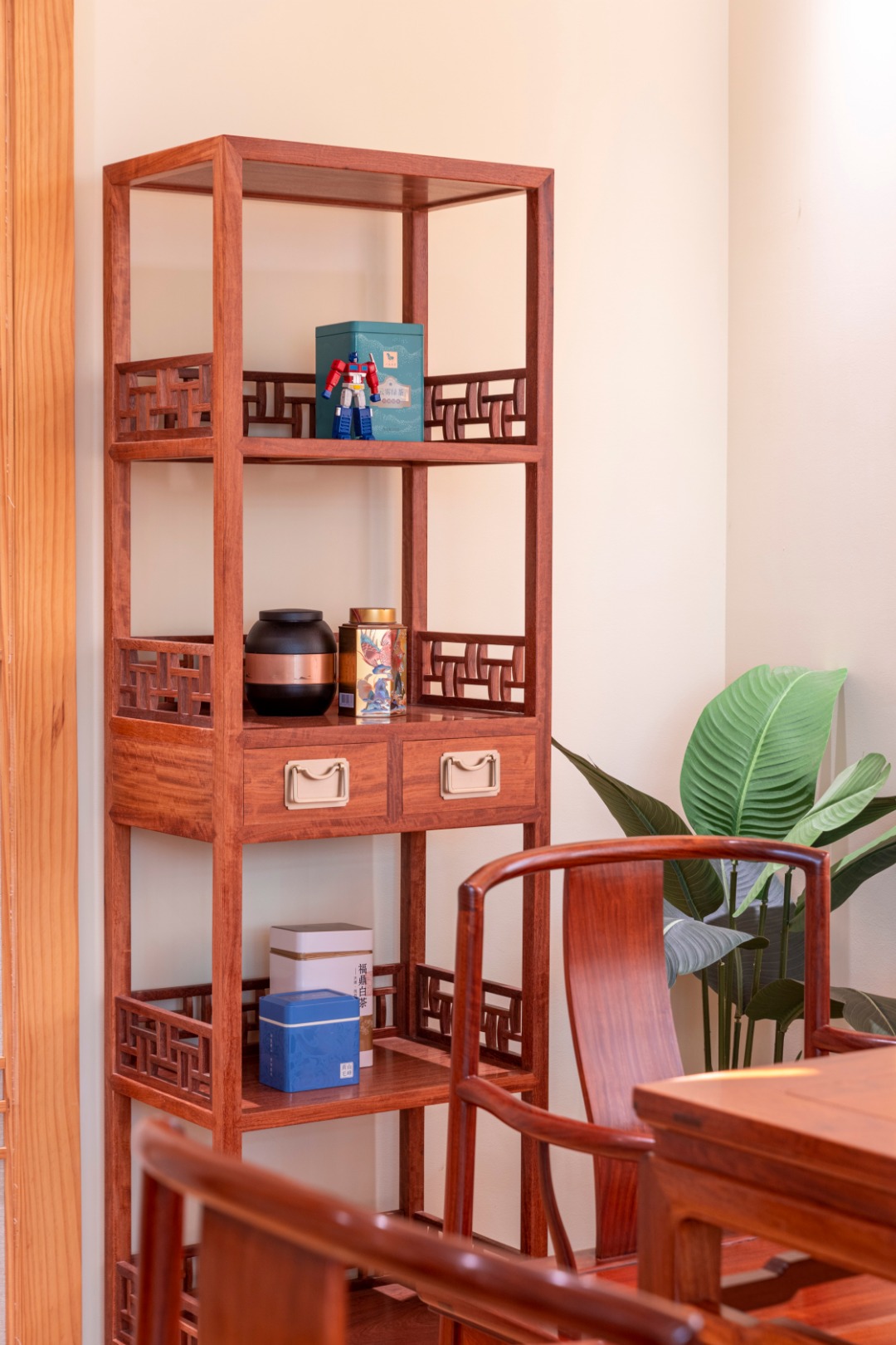 此架格可用于陈列书籍、物品,因其占地较小,用途又不止于此,无论搭配茶桌,放在房间拐角处置物,或用于成排的展示性陈列都十分的出彩和百搭。