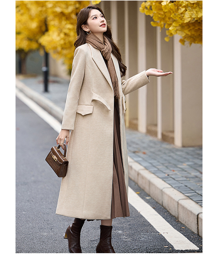 SNX3055通勤风呢子外套女2025冬季新款女装时尚大翻领修身显瘦毛呢大衣
